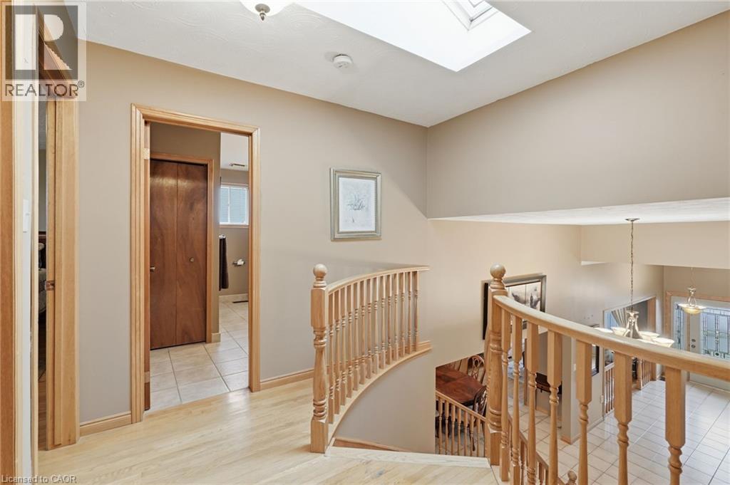 Rare Custom Estate on Double Lot Hamilton Mountain. First time offered, this all brick and stone home (1987) sits on a rare double lot in a top Hamilton Mountain neighbourhood. Highlights include an oversized double garage, driveway for 6 vehicles, and main-floor features like a bedroom, full bath, laundry, and cozy brick fireplace. The renovated kitchen (2017) boasts granite countertops and ample cabinetry. A stunning oak spiral staircase beneath a skylight leads to a spacious primary retreat with walk-in closet and ensuite. The partially finished basement with separate entrance offers in-law suite or rental potential, while the expansive outdoor space invites gardens, entertaining, or future customization. A unique opportunity to own a distinguished custom Hamilton Mountain home with character, space, and long-term value. (id:64974)
