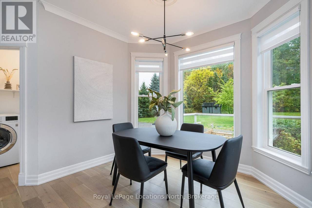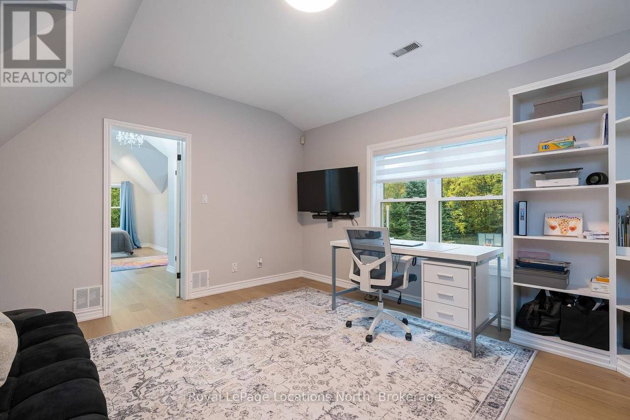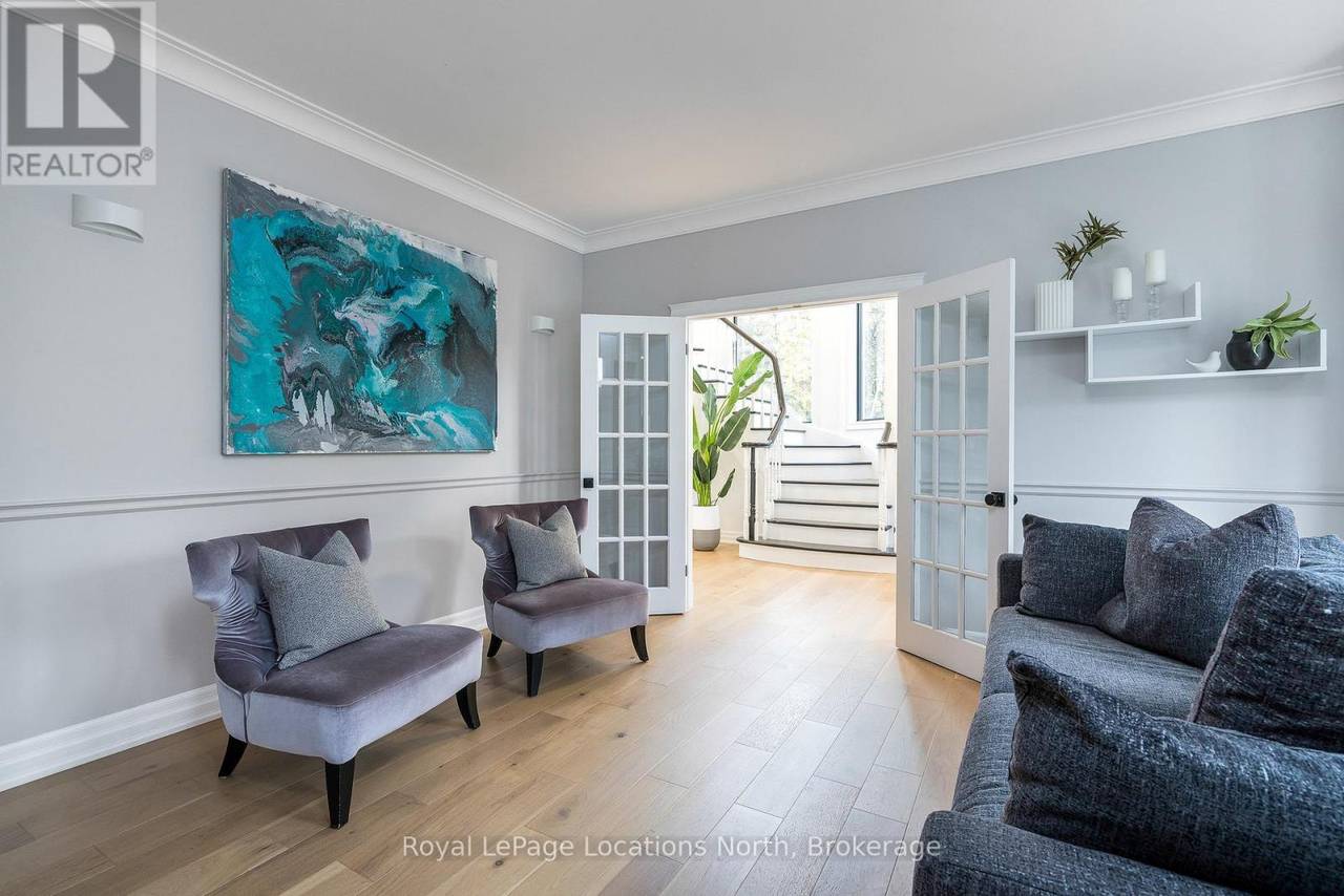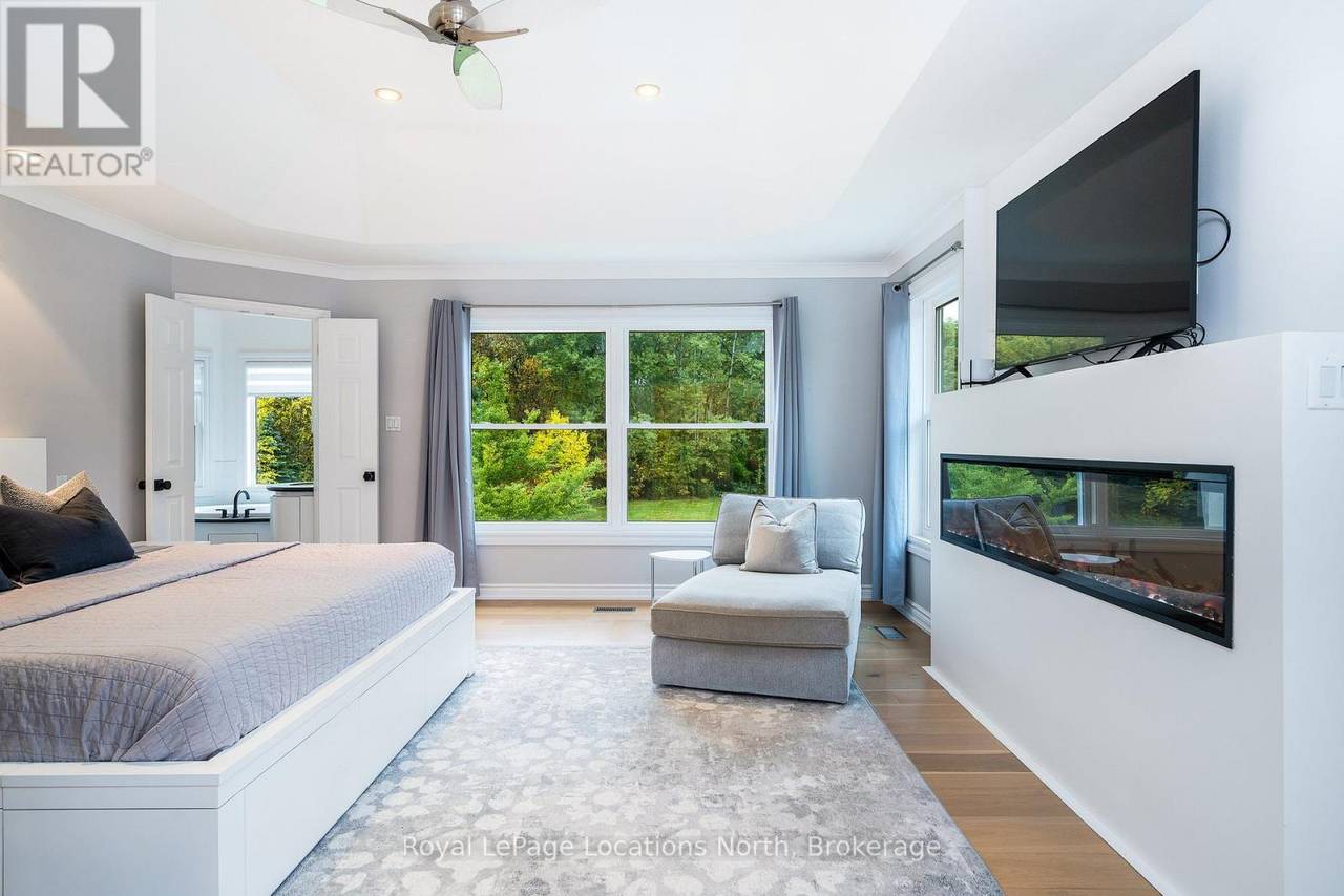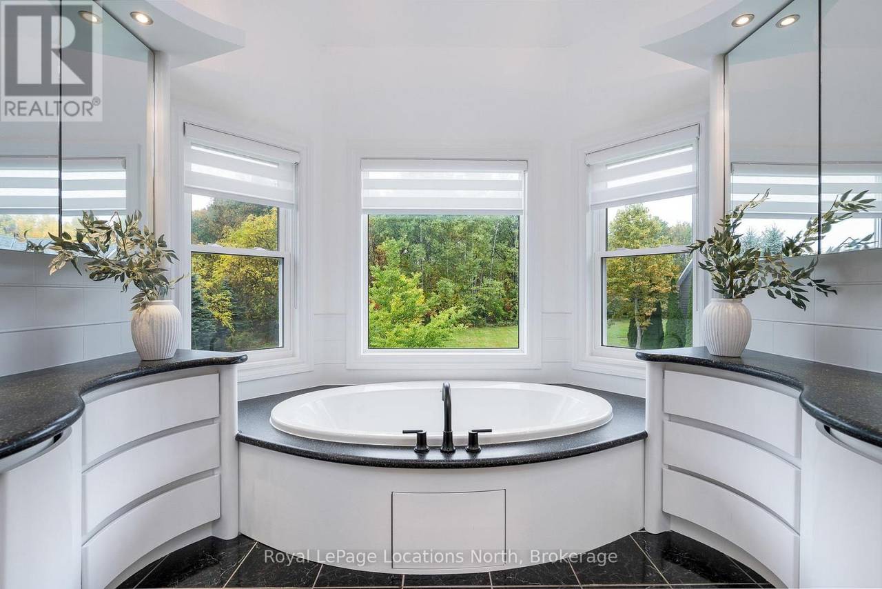 Welcome to an extraordinary 14.95-acre country estate that defines luxury living in the heart of Collingwood. Just minutes from downtown yet surrounded by the serenity of nature, this remarkable property offers a harmonious balance of elegance, privacy, and lifestyle - an idyllic retreat for those who value space and sophistication. A picturesque maple-lined driveway winds through the property, leading to a tranquil pond and fountain that set the tone for the residence beyond. The beautifully updated main home spans over 4,300 square feet, featuring 5 bedrooms and 6 bathrooms, thoughtfully reimagined with refined modern finishes. Three fireplaces, dual staircases, and ensuites in every bedroom speak to the home's quality and craftsmanship, while multiple walkouts open seamlessly to expansive terraces, patios, and decks - perfect for entertaining or quiet moments immersed in nature. Every element has been carefully curated, from new windows and floors to the roof, driveway, and professional landscaping, ensuring a timeless and inviting atmosphere. Enhancing the estate's appeal is the 2023-built guest residence, an approved Accessory Dwelling Unit (ADU) by Clearview Township. This 1,800-square-foot home features 2 bedrooms and 2 bathrooms, exuding the same level of luxury and style. Connected to a heated pool and generous deck, it offers endless possibilities - an elegant in-law suite, private guest quarters, or an income-generating retreat for seasonal visitors. The back 10 acres offer private trails that border scenic apple orchards and provide breathtaking views toward Osler Bluff. Mature maples and fruit trees frame the landscape, creating a true four-season sanctuary. Few properties offer such a rare combination of scale, privacy, and proximity to downtown Collingwood. This exceptional estate captures the essence of refined country living - where luxury, nature, and lifestyle meet in perfect harmony. (id:64974)