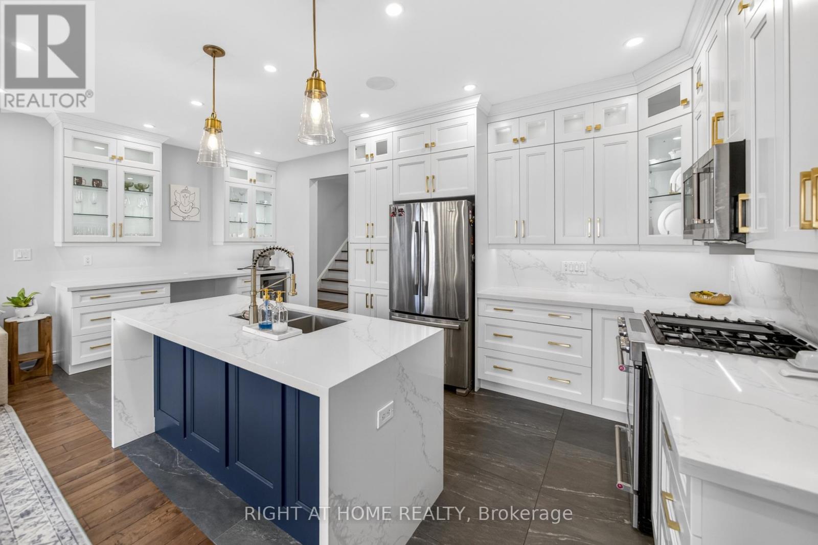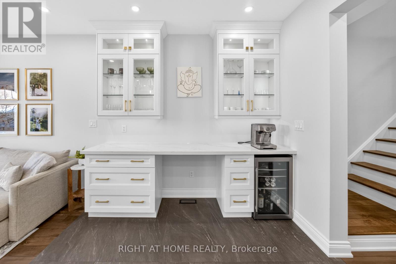FULLY UPGRADED - Stunning and One of a Kind Home with 4-bedrooms Semi in the heart of Milton's highly sought-after Coates neighbourhood. Tastefully decorated and meticulously maintained, this move-in-ready home offers a perfect blend of comfort, style, and functionality for modern family living. Enter through the grand double doors to a spacious foyer with custom built-in cabinetry in the front hall, a visually appealing storage solution for winter coats and shoes. The main level features hardwood flooring in dining and great room, creating a warm and cohesive flow. The spacious great room is anchored by a stunning contemporary fireplace, adding both style and ambiance to the living space. The upgraded, one-of-a-kind kitchen is truly a masterpiece, thoughtfully designed with premium finishes and elegant premium flooring, making it ideal for everyday living and entertaining. The 9' ceilings on the main level make the open-concept kitchen and great room seem even larger, and the separate dining room is perfect for hosting. You will love the kitchen with custom cabinetry to the ceiling with crown mouldings, an over-sized quartz centre island, coffee/wine bar and stainless steel appliances and w/o to the rear yard. Upstairs, you'll find four generously sized bedrooms with laminate flooring throughout, offering a durable and cohesive, carpet-free living environment. The fully finished basement extends the living space further and includes laminate flooring and a 2 piece fourth washroom, perfect for a recreation room, or home office with lots of storage. Ideally located steps from Tiger Jeet Singh Public School, and close to parks, playgrounds, walking trails, Milton Sports Centre, shopping plazas, restaurants, public transit, and Milton District Hospital. Enjoy convenient commuter access with a short drive to Milton GO Station and easy connectivity to Highways 401 & 407. (id:64974)