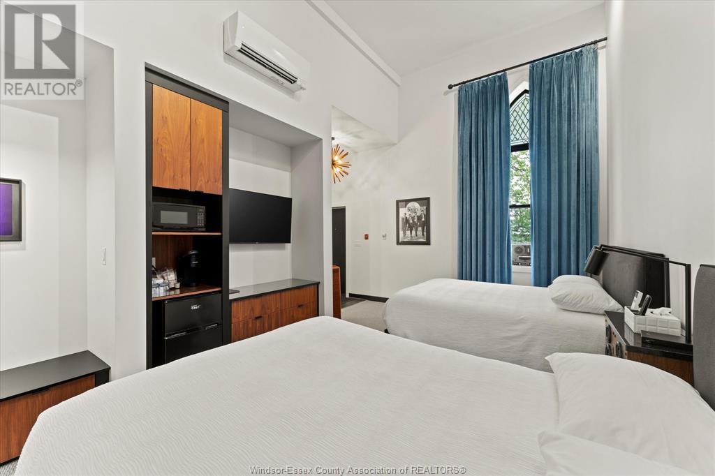 The iconic Little White Church in Amherstburg, located the end of Howard Ave and transformed by award winning builder Drew Coulson Design Build is a boutique hotel offering unique accommodations through Airbnb. The property features eight themed rooms, including the True North Suite, Game On Suite, Detroit Suite, Paris Suite, and Vinyl Suite. The Church offers a variety of suites, each with its own distinct theme, providing guests with a unique experience that suits their preferences. Situated in one of the prettiest and oldest communities in Southwest Ontario, and on Southwestern Ontario's Wine Route. Guests can enjoy a blend of historic architecture with modern amenities, offering a boutique hotel experience. (id:64974)