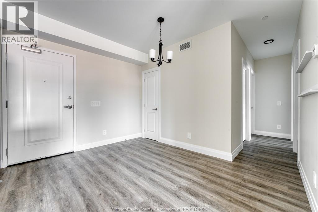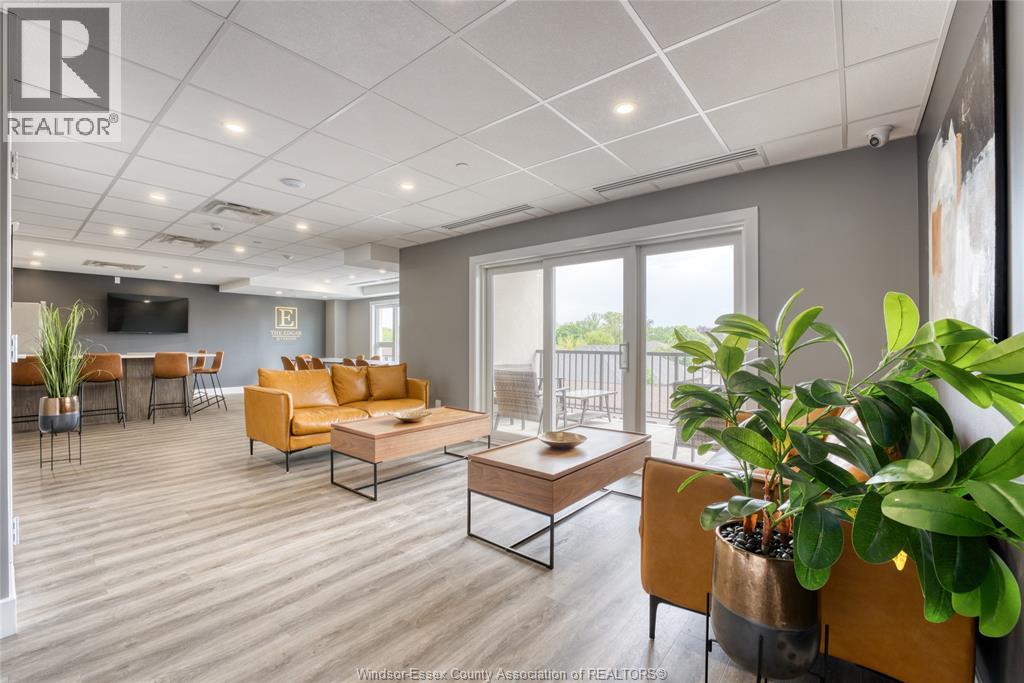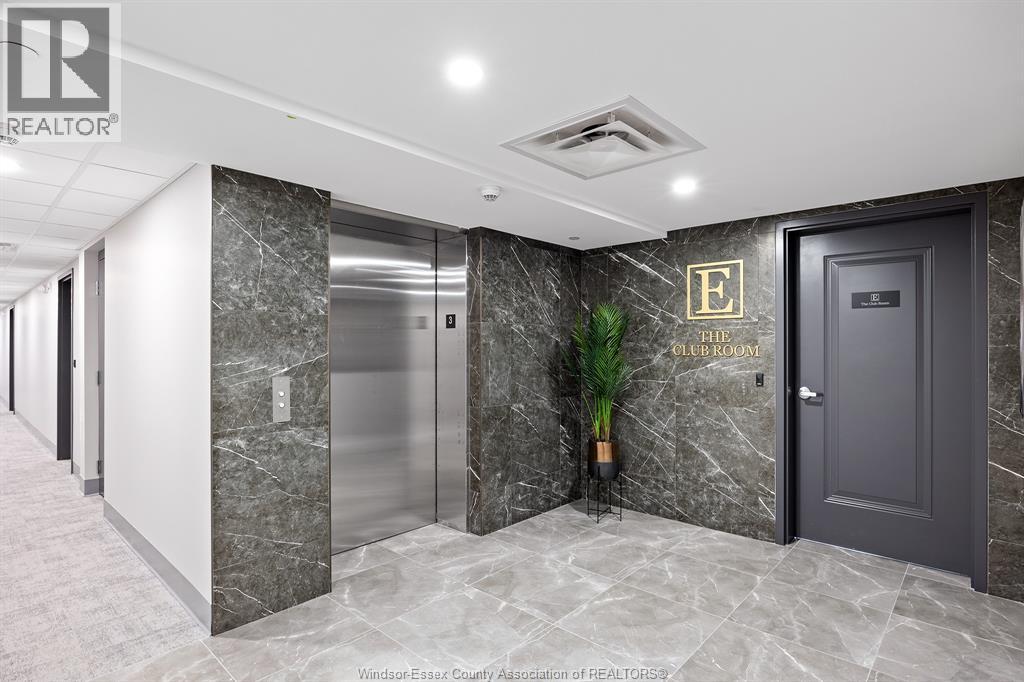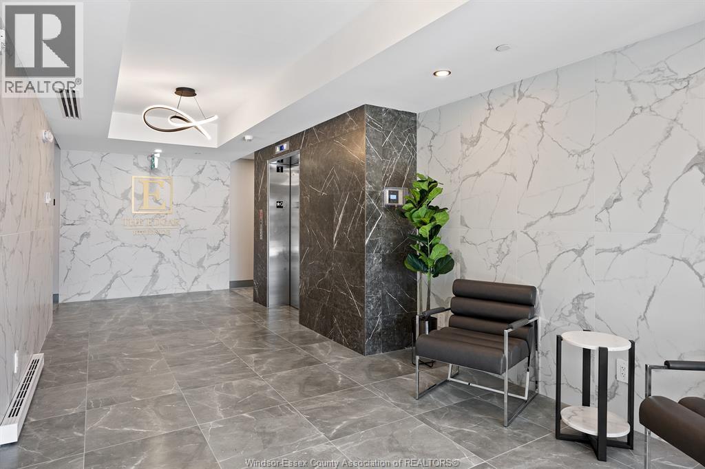 Welcome to Riverside's premier condominium, The Edgar by Brotto Development. This building will impress you with its gorgeous finishes and unparalleled amenities. This well appointed 2 bed 2 bath professional suite is designed with tasteful, modern details, including a statement wall with an electric fireplace in the living room and double extra wide patio doors. This spacious, well-maintained newer construction will leave you with no hassle, allowing you to lock and leave. You will also love the primary bedroom including a walk-through closet w/shelving and an ensuite bath. Featuring 2 spacious sleeping spaces with bright windows and 2 full baths, this space is ideal for working professionals and retirees. Outside you will notice a generous balcony will allow you to enjoy the urban life outside of the suite. This luxurious building also offers an Outdoor Courtyard with BBQ's, Fitness Centre, Yoga Studio, Club Lounge, and a Storage Locker. A beautifully crafted building and suite in Windsor's Riverside neighbourhood, truly a must see! (id:64974)