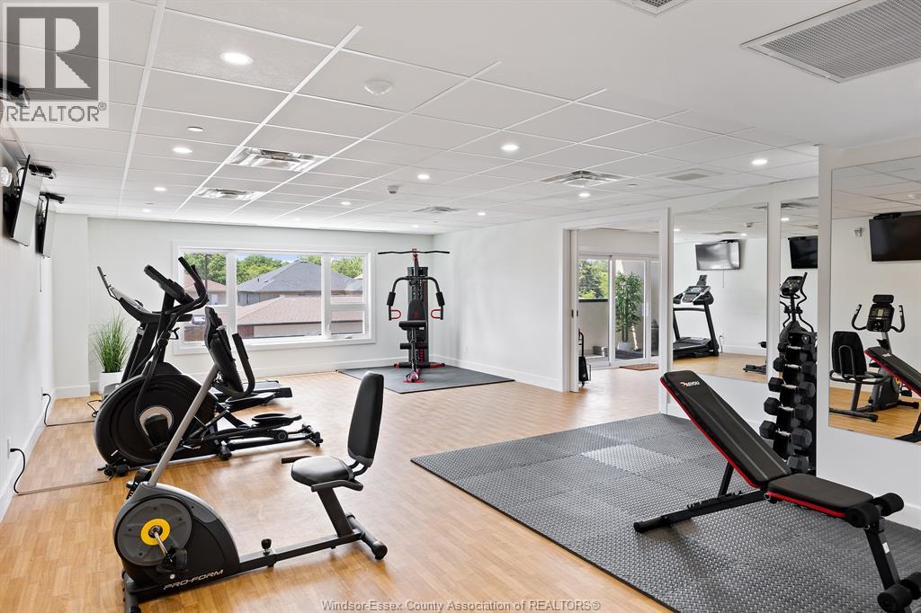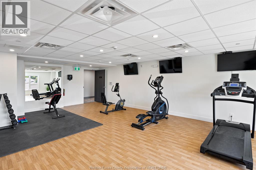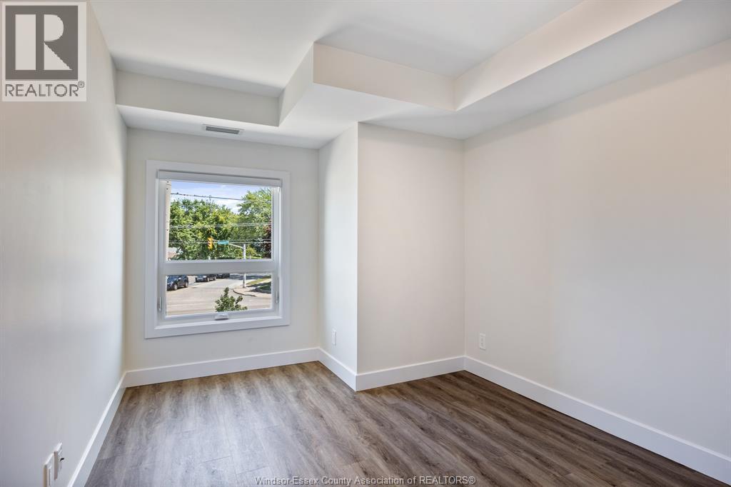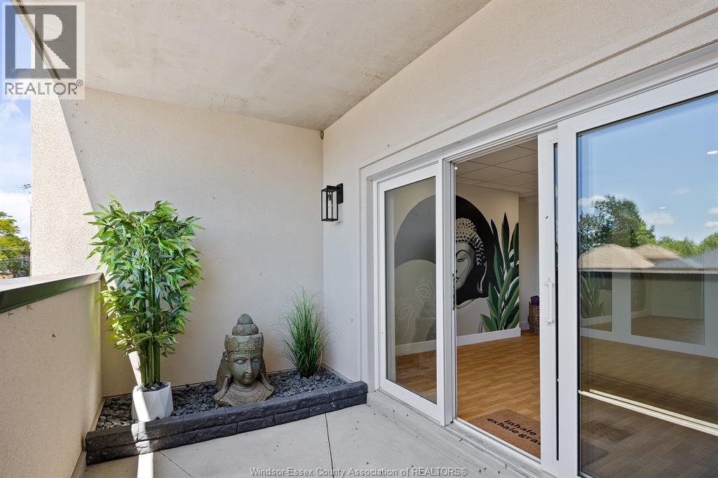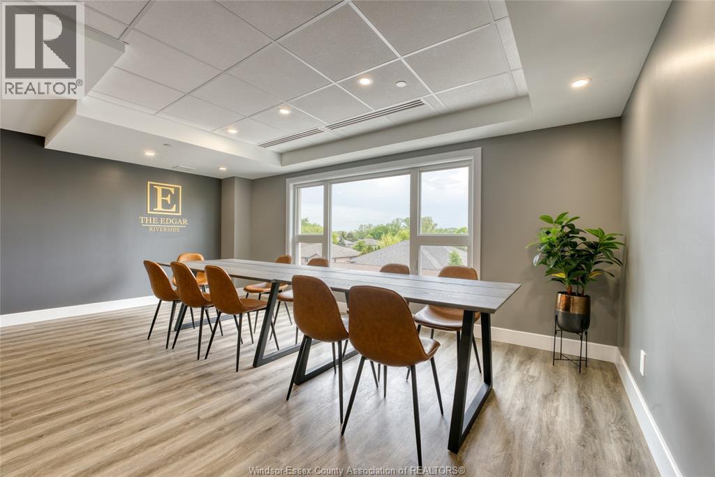 Welcome to Riverside's premier condominium, The Edgar by Brotto Development. This building will impress you with its gorgeous finishes and unparalleled amenities. This well appointed 2 bed 2 bath professional suite is designed with tasteful, modern details, including a statement wall with an electric fireplace in the living room and double extra wide patio doors. This spacious, well-maintained newer construction will leave you with no hassle, allowing you to lock and leave. You will also love the primary bedroom including a walk-through closet w/shelving and an ensuite bath. Featuring 2 spacious sleeping spaces with bright windows and 2 full baths, this space is ideal for working professionals and retirees. Outside you will notice a generous balcony will allow you to enjoy the urban life outside of the suite. This luxurious building also offers an Outdoor Courtyard with BBQ's, Fitness Centre, Yoga Studio, Club Lounge, and a Storage Locker. A beautifully crafted building and suite in Windsor's Riverside neighbourhood, truly a must see! (id:64974)