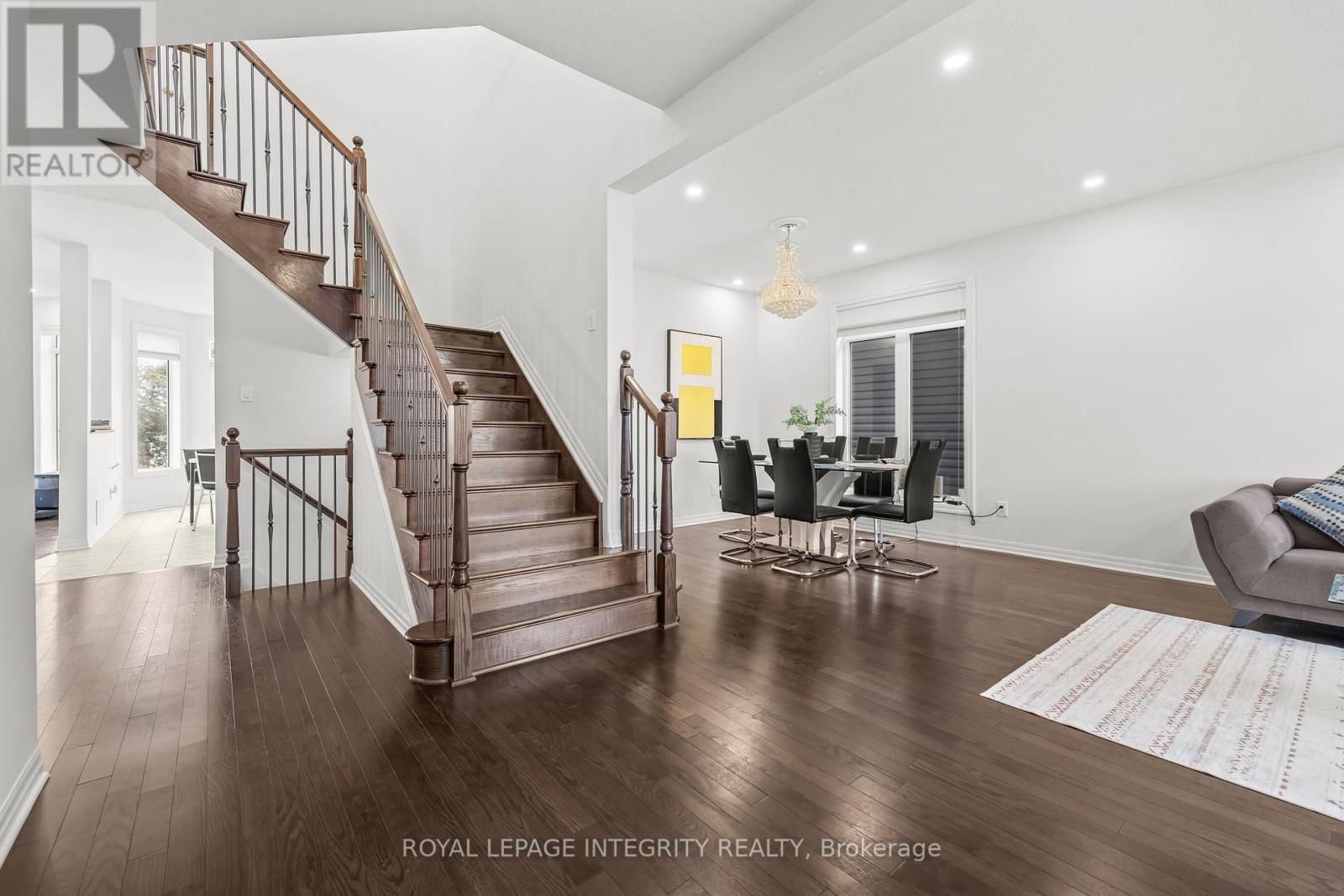 Welcome to this immaculate home in a sought-after family neighborhood, ideally located across from a beautiful park and backing onto mature trees and large-lot homes for added privacy. Pride of ownership is evident throughout. Featuring a traditional yet functional layout, this home offers a grand entrance, a combined living and dining room, and an open-concept kitchen and family room. The main floor den with French doors is perfect for a home office, close to the action, yet private when needed. The bright kitchen is a chef's dream, complete with high-end appliances including a gas stove, a functional island with storage, and abundant cabinetry. South-facing bay windows in the kitchen and family room flood the space with natural light, while pot lights throughout enhance the home's warm and modern feel. Elegant hardwood stairs lead you to the second level, where you will also enjoy the convenience of an upstairs laundry room. The spacious primary bedroom serves as a private retreat, featuring a luxurious 5-piece ensuite and double closets. All additional bedrooms are generously sized with beautiful views. Step outside to a fully fenced backyard, perfect for families and entertaining, complete with a storage shed for added convenience. The unfinished basement offers excellent potential, with two south-facing windows and a bathroom rough-in, ready for your personal touch. A perfect blend of space, light, and location, an ideal home for growing families! (id:64974)