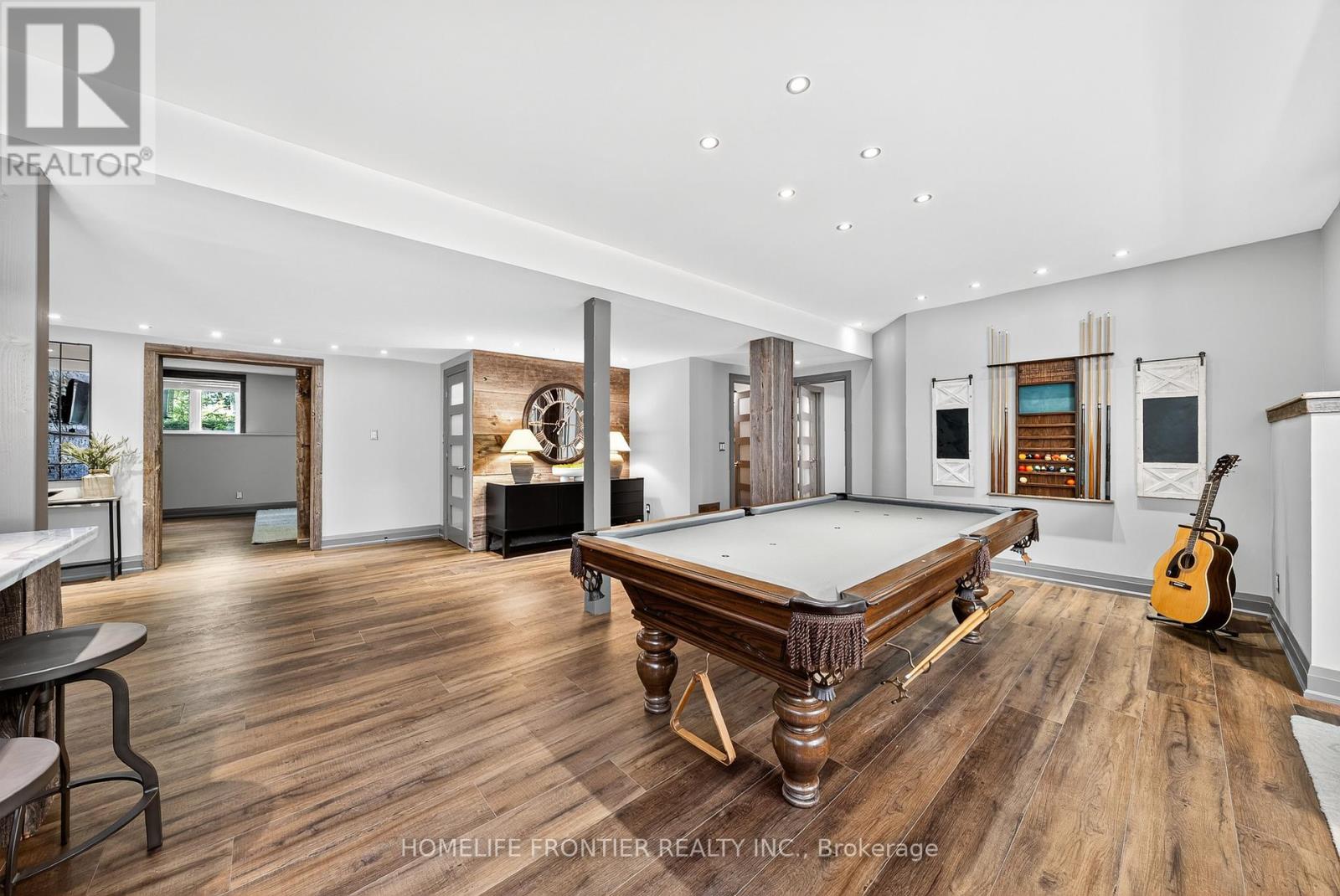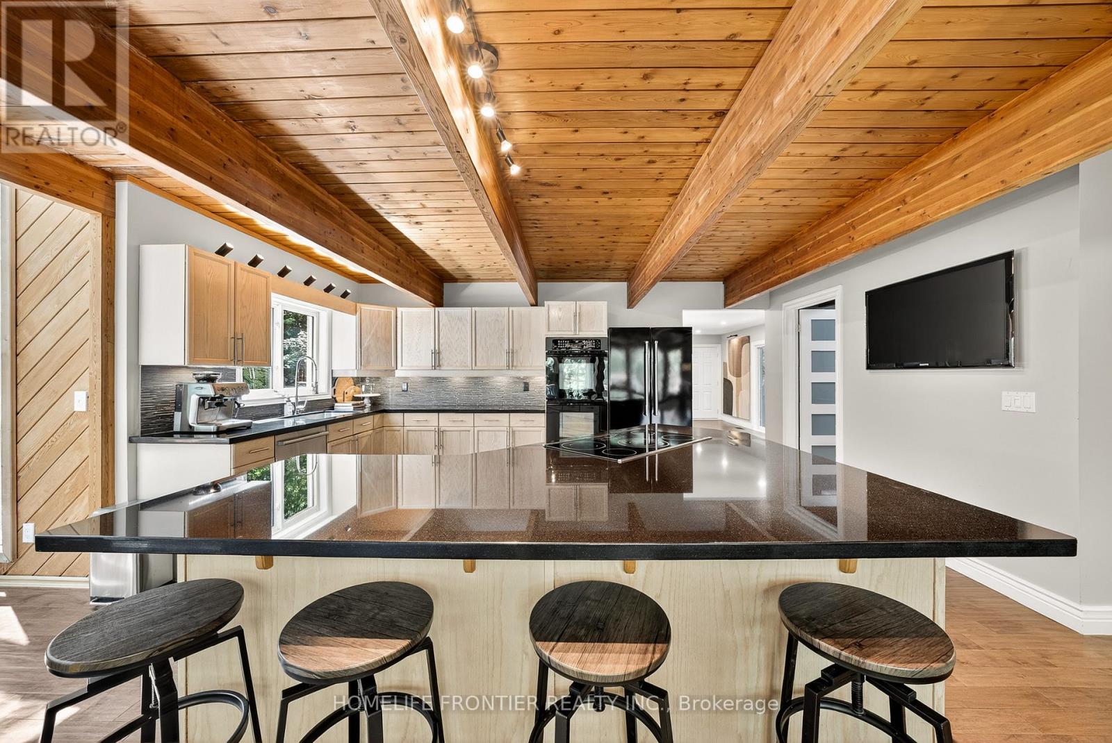 Uniquely Designed Dream Family Home: Luxury Meets Nature. Private estate on quiet dead-end street backing onto forest. This 3500* sqft home sits on 2.5 secluded acres with open concept design, soaring cathedral ceilings, floor-to-ceiling windows with ample natural light, and premium hardwood. Chef's kitchen features black quartz island and double ovens. The open-concept family room is great for entertaining guests and features a new HearthStone wood-burning stove. Master suite includes skylight views to watch the stars, walk-in closet, and heated floor ensuite. *3500 sqft of total finished space includes fully finished basement with separate entrance and full bathroom. It offers an entertainment area with marble bar, pool table, a large media room with barn door (doubles as extra BR) and projector, and 4th bedroom with walk-in closet. 2-car garage comes lots of tool cabinets, shelves, and epoxy floor. Outdoor paradise includes 3 decks, tranquil pond with artificial waterfall and fountain, year-round swim spa, a large wood-burning sauna, and 3 storage sheds. Complete privacy with forest backing. Minutes to Wasaga Beach, Snow Valley skiing, and Barrie amenities. Perfect luxury retreat combining privacy, nature, and convenience. Carson Dunlop home inspection report available upon request. Click on "More Information" link below to see 360 view of the house! (id:64974)