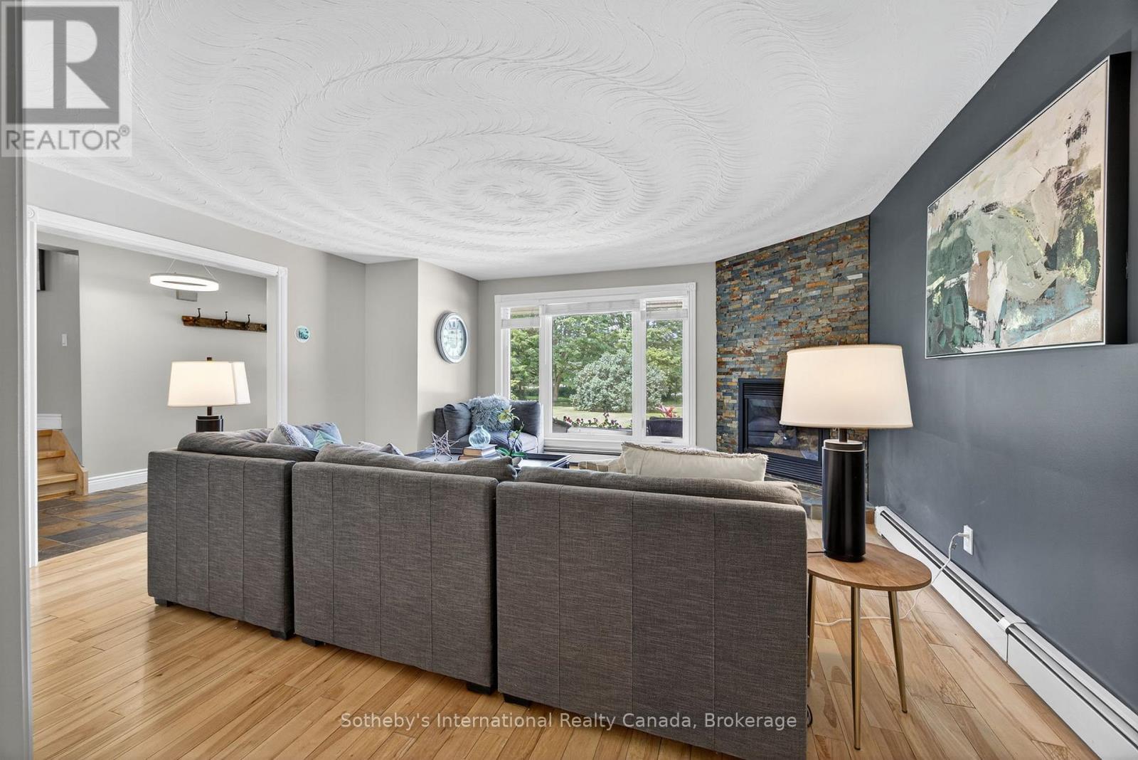 A must-see to truly appreciate the space this home offers! This warm and welcoming home in Creemore provides far more room and flexibility than first meets the eye. Set on a private 1-acre lot framed by mature trees, this impressive 5-level residence blends comfort, versatility, and small-town charm.Featuring 4 bedrooms, 3 bathrooms, and multiple living areas, the layout is ideal for growing or multi-generational families, with excellent potential for an in-law suite. The main floor welcomes you with a cozy gas fireplace and an updated eat-in kitchen complete with a built-in fridge/freezer, wall oven, gas stove, and generous dining space - perfect for gathering with family and friends. Large windows throughout fill every level with beautiful natural light, creating bright, inviting spaces. Upstairs, the primary suite feels like a private retreat - an expansive 800 sq. ft. sanctuary with built-ins, an ensuite, laundry, a private deck, and plumbing in place for a future coffee bar. Three additional bedrooms share a full bathroom, offering comfort and convenience. The bright lower-level family room features a walkout to the backyard and a striking double-sided stone fireplace (currently non-operational but ready for restoration). Another level offers a rec room, bedroom or office, a 2-piece bath, and additional laundry - providing exceptional flexibility for guests, hobbies, or work-from-home needs. Outside, unwind in your peaceful backyard oasis surrounded by mature trees - perfect for entertaining, stargazing, or giving kids and pets room to roam. The heated, oversized double garage with workshop space and 220-volt service is ideal for projects, storage, or recreational toys (with space for up to 3 vehicles). Located just a short stroll from the shops, cafés, and restaurants of Creemore, this property offers the perfect blend of space, privacy, and community. (id:64974)