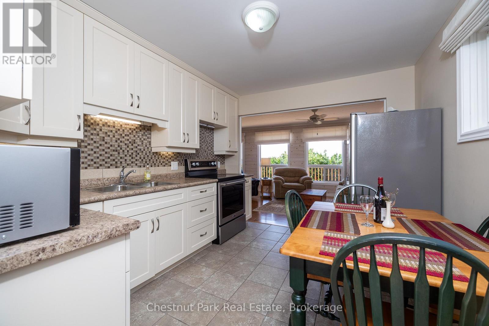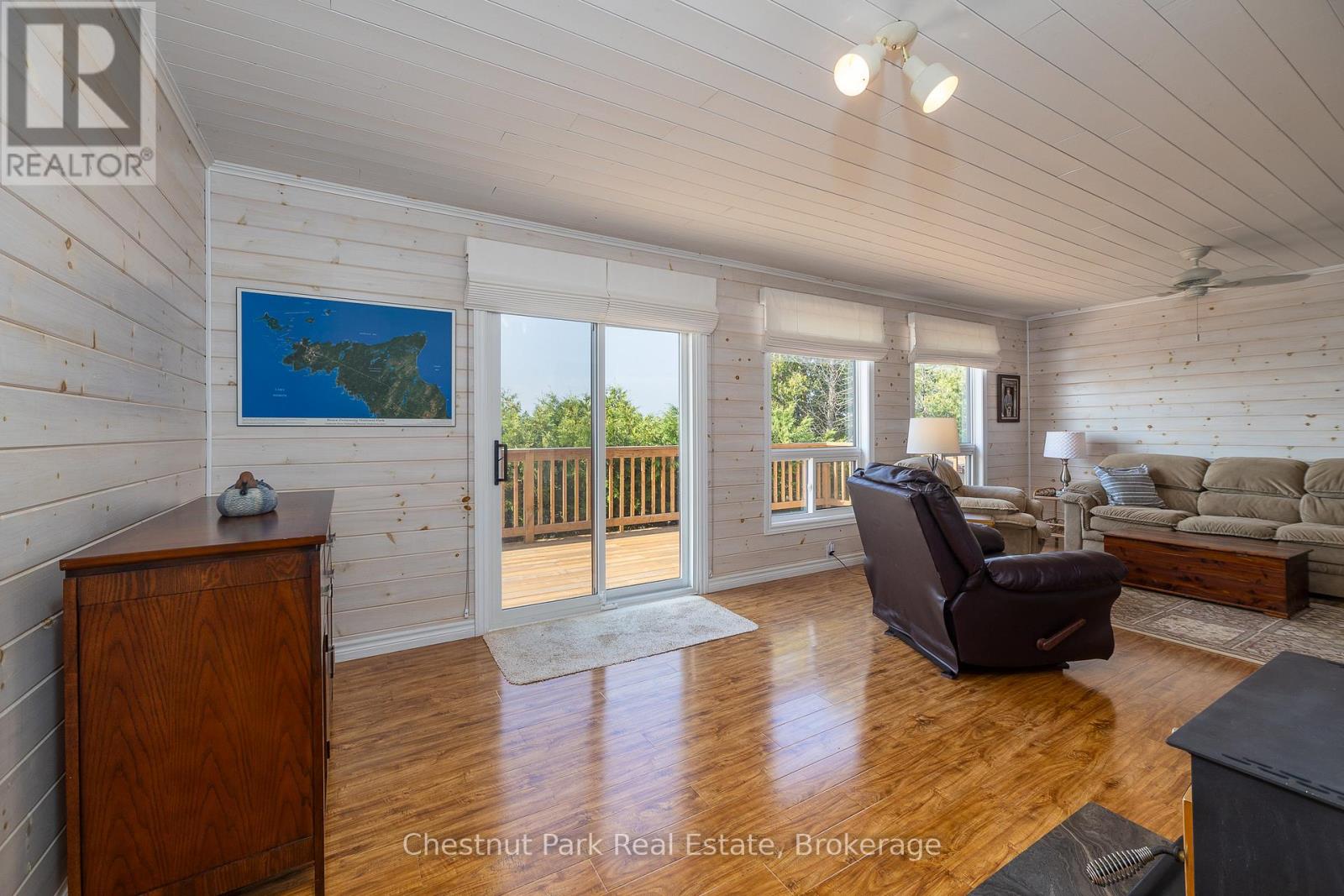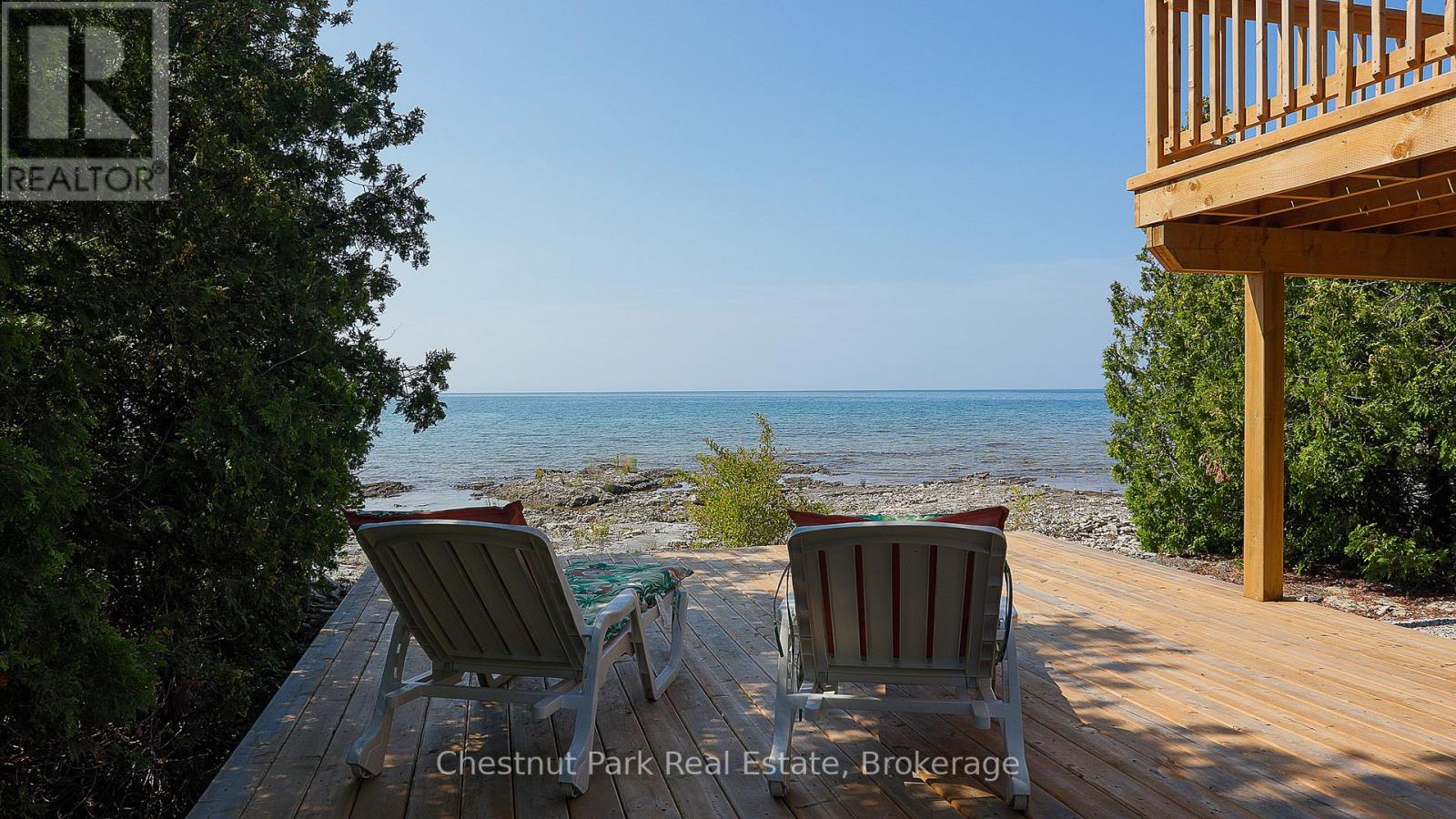 Enjoy over 320 feet of spectacular Lake Huron shoreline with sought-after southern exposure at this private 4 season waterfront retreat. Tucked away in a peaceful natural setting, the property has been extensively updated inside and out, creating a refined yet relaxed, maintenance-free escape where the focus is on waterfront living and the surrounding natural beauty. The home offers four bedrooms and two beautifully finished bathrooms, providing comfortable space for family and guests. The spacious primary bedroom opens directly to the elevated wraparound deck, where expansive lake views set the tone for quiet mornings and unforgettable sunsets. A bright, thoughtfully designed kitchen with dining area and newer appliances flows seamlessly into the inviting living space, where a wood-burning stove adds warmth and atmosphere on cooler evenings. The fully finished lower level expands the living area with two additional bedrooms and a modern three-piece bathroom with laundry. Large lakeside windows capture breathtaking water views, while the expansive wraparound deck provides an ideal space to relax, entertain, and take in the ever-changing shoreline scenery. Easy access to the water invites swimming and kayaking, while nearby trails, sandy beaches, and the many attractions of the Bruce Peninsula offer endless opportunities to explore the surrounding landscape. A 24' x 36' insulated garage/shop and an 8' x 12' bunkie provide excellent additional space for guests, hobbies, or storage. Recent upgrades completed by local trades professionals allow this fully furnished, turn-key waterfront retreat to be enjoyed immediately. (id:64974)
