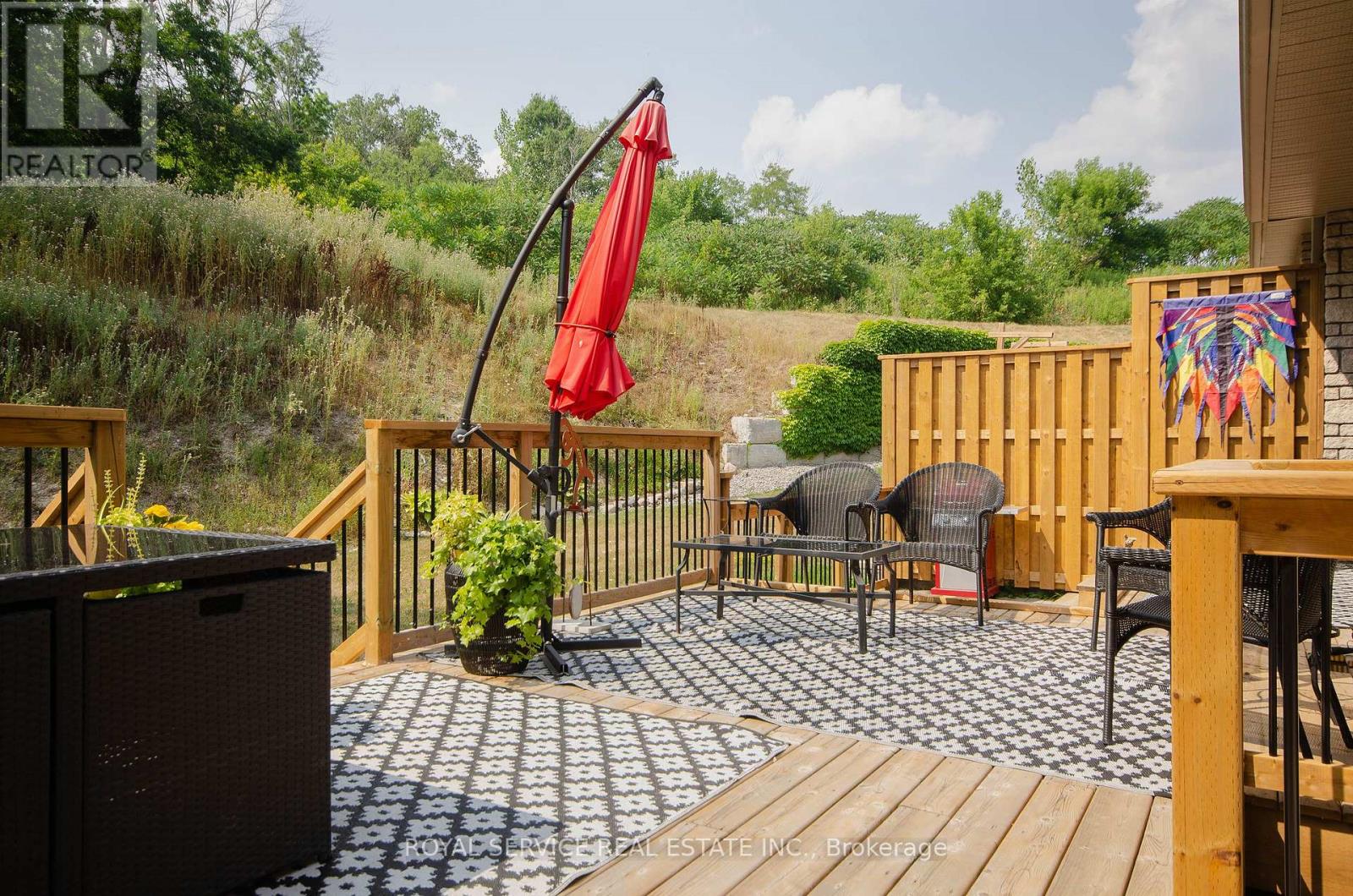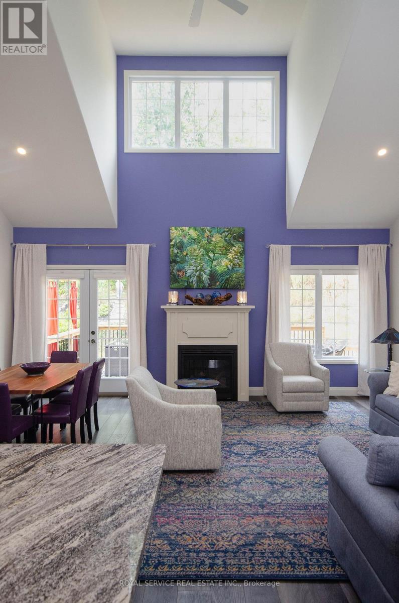 Orchard Hill's largest model, at 1340 sq ft., this 5 yr old Empire is an absolutely stunning townhouse, beautifully situated on a fabulous lot with views over the rolling hills from the front porch. An open concept plan, the cathedral ceiling adds to the feeling of open space with the big bright loft overlooking the great room which has a gas fireplace and large windows overlooking the private treed space at the back. There are multiple upgrades in the kitchen including a breakfast island, granite counter tops, upgraded cupboards, sink and lighting and stainless steel appliances. The professionally finished basement adds extra living space with a 3rd bedroom and a 3rd bath. Walk-out to an enlarged deck spanning the entire width of the house with privacy and 2 separate seating areas. The many updates include lots of pot lights, upgraded luxury vinyl plank flooring, upgraded carpeting where laid, upgraded kitchen and bathrooms, the finished basement, the larger deck. Compared to the most recent base price for this model, the more than $100,000 spent on upgrades, appliances and basement finishing, this home will not disappoint. (id:64974)