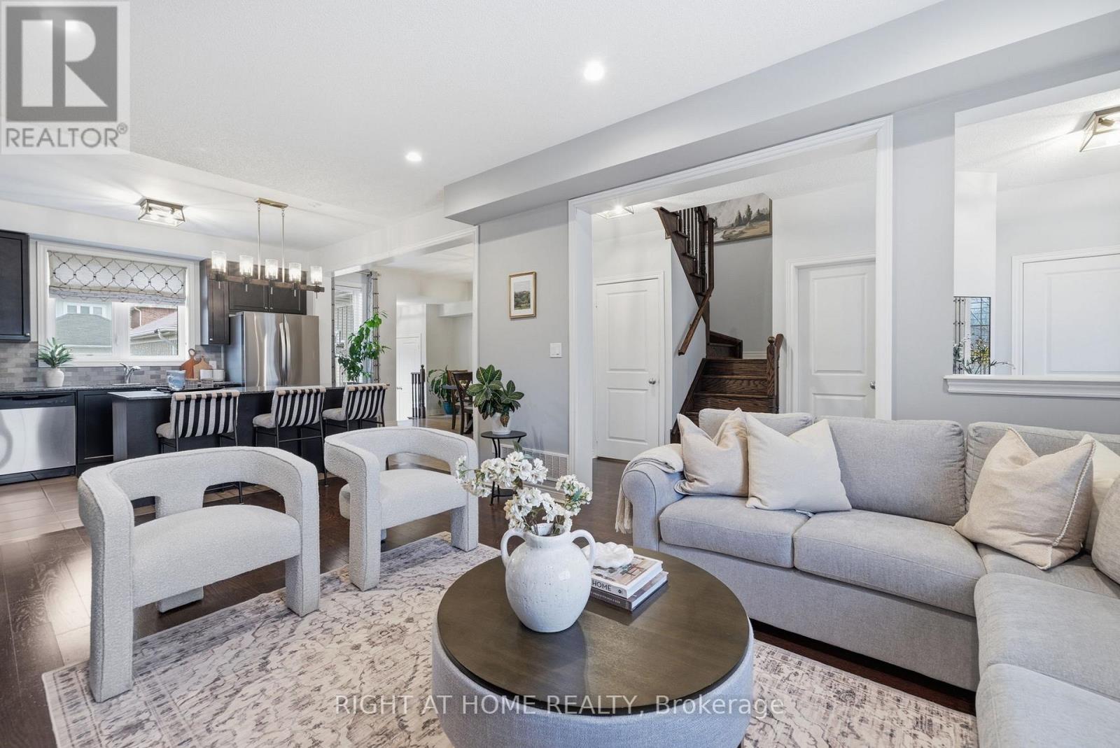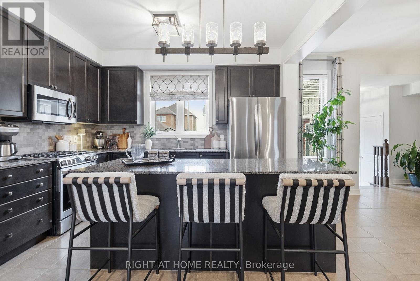 Welcome to this impressive 3-bedroom home situated in a highly desirable, family-oriented neighbourhood. The open-concept layout seamlessly connects the kitchen, dining, and living areas, providing a spacious environment ideal for gatherings and shared activities. The kitchen is equipped with elegant granite countertops and sleek stainless steel appliances, suited for both daily use and entertaining guests. The main floor offers impressive 9-foot ceilings, enhancing openness and natural light throughout the space. A practical mudroom/laundry area on the main level, with direct access to the garage and backyard, contributes to everyday organization and convenience .The fully finished basement provides additional flexible space that may be utilized as a family room with a seperate office, or gym, and includes a rough-in for a future wet bar or kitchenette. The property features a generous primary bedroom with an ensuite, complemented by three further bathrooms located throughout the home, ensuring comfort and functionality for modern lifestyles. Strategically positioned within a family-friendly community, the home is within walking distance to local parks, near schools, community centres, and essential amenities. Its proximity to local and major transit routes, including Highways 401 and 407, facilitates easy commuting. Future plans for the Bowmanville GO Train station will further enhance public transit accessibility, offering convenient connections across the region! (id:64974)