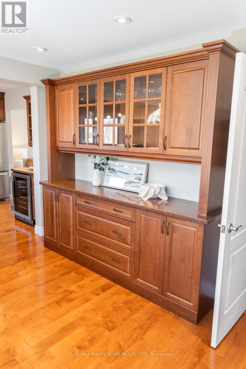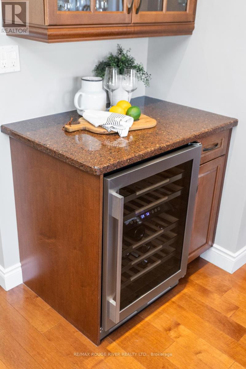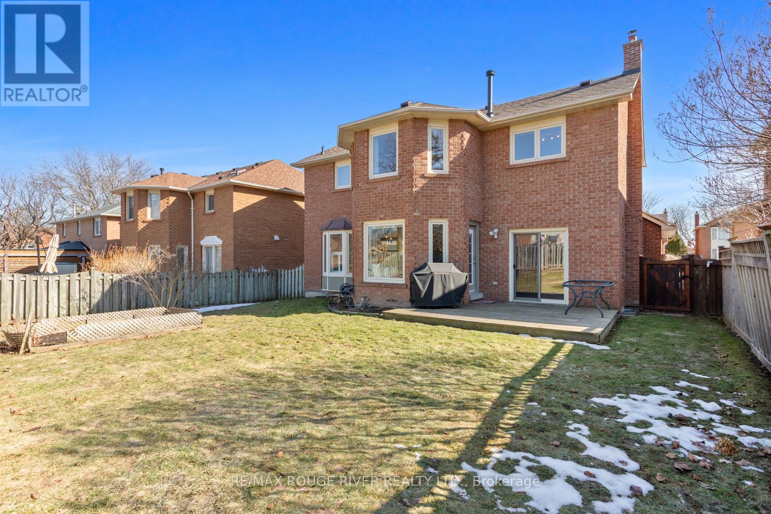 This executive home is nestled on a quiet, tree-lined street in Whitby's highly desirable Pringle Creek community - a wonderful place for families to call home. Meticulously maintained and truly move-in ready, this bright and spacious home features a thoughtfully designed layout ideal for both everyday living and entertaining. The main floor showcases high-quality renovations, including an expanded and stunning eat-in kitchen with SileStone countertops, stainless steel appliances, dual-zone wine fridge, and abundant storage. Beautiful maple hardwood flooring flows seamlessly through the living room and kitchen, complemented by pot lights and an updated main floor bathroom. A walk-out from the kitchen leads to a deck overlooking the private backyard, complete with beautiful perennial gardens and no neighbours directly behind. The cozy family room features built-in cabinetry, a gas fireplace, and a second walk-out to the deck - perfect for relaxing or hosting guests. The main floor also offers a convenient laundry room with direct access to both the garage and side yard. Upstairs you will find four generously sized bedrooms, including an impressive primary retreat with a walk-in closet and a beautifully renovated spa-inspired five-piece ensuite featuring an air-jet tub, separate glass-enclosed shower and heated floors. The second-floor main bathroom has also been renovated, and newer broadloom has been installed throughout the upper level. The partially finished basement offers a spacious recreation room along with additional office or workout space, providing great flexibility for growing families. The front and backyard are equipped with an inground sprinkler system (2024). Major updates include shingles (2018) and a heat pump providing both heating and air conditioning (2022). Ideally located in a sought-after neighbourhood just minutes from top-rated schools, parks, shopping, public transit, and convenient access to Highways 401, 412, and 407. (id:64974)