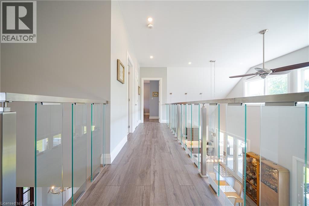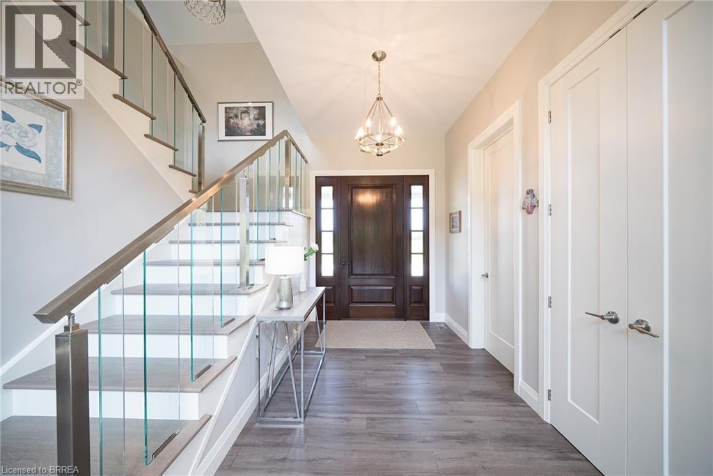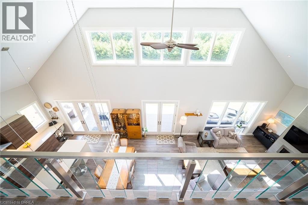 Welcome to your dream home in the heart of Norfolk County! Nestled on a picturesque 4.66-acre property, this custom-built masterpiece blends thoughtful design, modern luxury, and rural tranquility—just minutes from Norfolk’s beaches, trails, wineries, & local charm. A long driveway leads to this stunning Cape Cod-style home w/a large front porch. Step inside through a 41x96 solid mahogany door & be greeted by custom stainless steel & cut glass stair railings w/comfort-rise steps. The main level has 10' ceilings, 8' doors, European laminate flooring, & oversized Andersen windows & doors that flood the space w/natural light. A fireplace beneath a soaring 21' ceiling anchors the great room. The chef’s kitchen is a showstopper w/quartz countertops, European-style cabinetry w/pullouts & drawer-in-drawer systems, a double-door bar fridge, hands-free Moen faucet, & 5-burner propane range w/WiFi-connected hood. A massive island & custom pantry wall add both function & style. The main-flr primary suite has private access to the deck, hot tub, & above-ground pool, plus a fireplace, floor-to-ceiling windows, & huge walk-in closet w/chandelier & custom organizers. The spa-like ensuite includes heated floors, freestanding tub, 4’x6’ glass shower w/bench, double vanity, Riobel chrome fixtures, & quartz finishes. Also on the main flr is a versatile room for bedroom, office, gym, or playroom, a 2-piece powder room, & laundry room w/custom closets & ample workspace, accessible from both foyer & back hallway. Upstairs, a flexible loft overlooks the great room & could become a 4th bedroom. A full bath w/double sinks, quartz counters, & rainfall shower, plus a large front-facing bedroom, complete the level. Bonus: a detached shop w/insulated steel drive-through doors (10x14 and 10x10), 16’ ceilings, 60-amp panel, RV receptacle, Andersen windows, & fibreglass shingles. This 5-Star Plus Energy Rated home offers unmatched quality, peace, & privacy. A true Norfolk County gem. (id:64974)