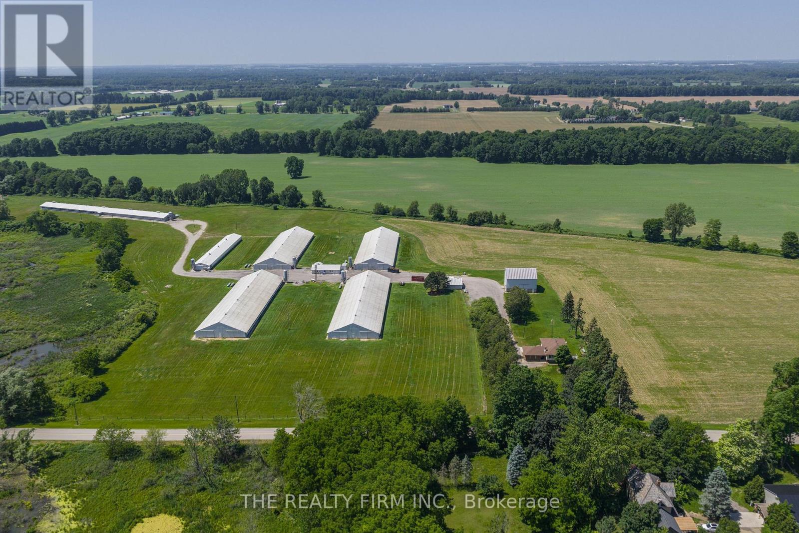 150-Acre Opportunity. Prime agricultural parcel ideally located close to Strathroy, Mount Brydges and London with nearby major highway access. Featuring 100+/- acres of productive, high-yield sandy loam soil previously used for soybean and pea rotation, with the remaining 50+/- acres comprised of bush, ravine, an assortment of buildings and residential 6-bedroom residential home. This farm was formerly a successful turkey operation and is well equipped to return to poultry or transition to other intensive agricultural use. On-site are 7 barns (6 with concrete floors, steel roofs, separate breaker panels and 1 older wood barn with soaring ceilings - perfect for equipment or dry storage). Two outbuildings formerly used as office administration and staff change facilities with showers adding flexibility for workforce accommodation. Main residence is a 7 bedroom, 2 full bathroom raised ranch with an attached garage - ideal for owner-occupied, rental housing, or staff quarters. Property serviced by well water and septic systems. The land features natural drainage with random tiling in low spots - no systemic tile needed thanks to the superior soil quality. This is a rare turnkey setup for poultry reactivation or scalable cash crop expansion, with strong infrastructure, valuable soil, and optimal location. Zoned AG1 with room to grow. Please note: a restrictive covenant must be registered on closing preventing swine operations. Contact listing agent for more information. (id:64974)