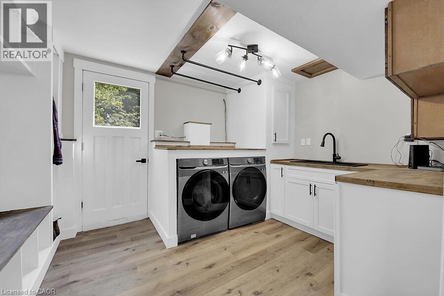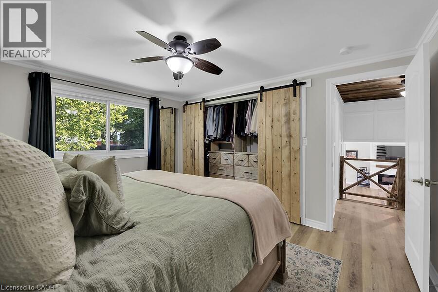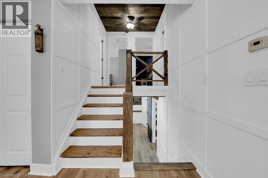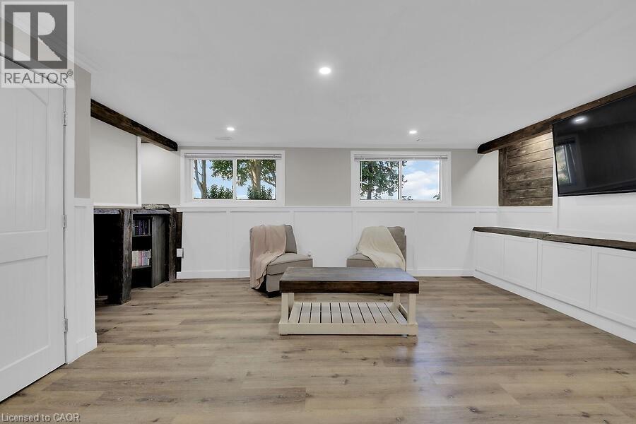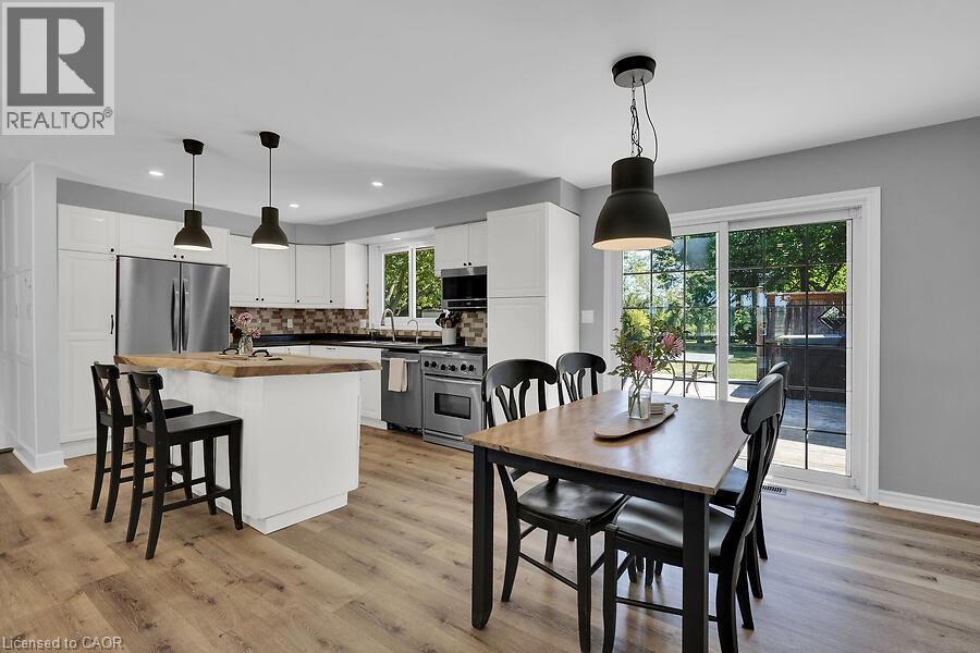 Welcome to this beautifully renovated 3-bedroom, 3-level side split home, ideally situated on a spacious corner lot. Combining modern elegance with rustic charm, this property offers the perfect blend of style, space, and functionality—ideal for families or anyone seeking a versatile home. Inside, luxury vinyl flooring flows throughout, creating a cohesive and durable foundation on every level. The heart of the home is a bright, open kitchen featuring a central island, sleek stainless-steel appliances, backsplash. Adjacent, the dining area opens via sliding doors to the backyard deck, seamlessly connecting indoor and outdoor living. The spacious living room is bathed in natural light from a large bay window and features a cozy electric fireplace, while pot lights throughout the main level enhance the inviting atmosphere, Inside entry from garage. A rustic staircase with panelled walls leads to three comfortable bedrooms. The primary suite has been newly renovated and boasts a wall-to-wall closet with barnboard doors, merging rustic charm with modern design, and a newly renovated 5-piece bathroom. The fully redone basement is a true highlight, offering a large recreation room perfect for family gatherings, hobbies, or entertainment. A dedicated office area provides an ideal space for remote work or study, and the laundry/mud room includes a convenient walk-up basement with a separate entrance—perfect for storage, added functionality, or private guest/in-law access. Step outside to your private country retreat. The backyard features a charming gazebo, a hot tub, a versatile workshop for projects and hobbies, and a thriving garden area ready for your green thumb. The driveway accommodates 10+ vehicles, large workshop 18.5 X 8.5 feet which you will appreciate. Recent updates include luxury vinyl flooring, renovated basement, primary bedroom, freshly painted interiors (2024), bath renovation (2025), built-in microwave, washer & dryer, and water heater owned (2023). (id:64974)