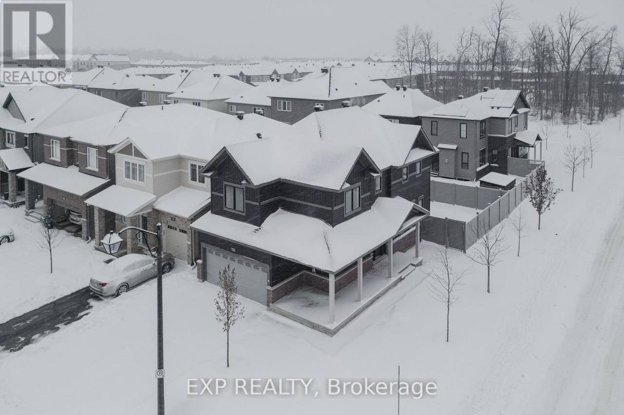 This beautifully maintained 3-bedroom, 2.5-bath Minto Talbot model offers the perfect blend of luxury and functionality on a sought-after premium corner lot in Half Moon Bay. The sun-filled main level features 9-ft ceilings, elegant hardwood flooring, and a spacious open-concept layout.The upgraded kitchen includes quartz countertops, stainless steel appliances, and stylish cabinetry ideal for modern living and entertaining. Upstairs, the spacious primary suite boasts a walk-in closet and spa-inspired ensuite with double sinks and a glass shower. Two additional bedrooms, a full bath, and second-floor laundry complete the upper level. Enjoy a private backyard and unbeatable location just minutes from top schools, parks, transit, and Barrhaven Town Centre. (id:64974)