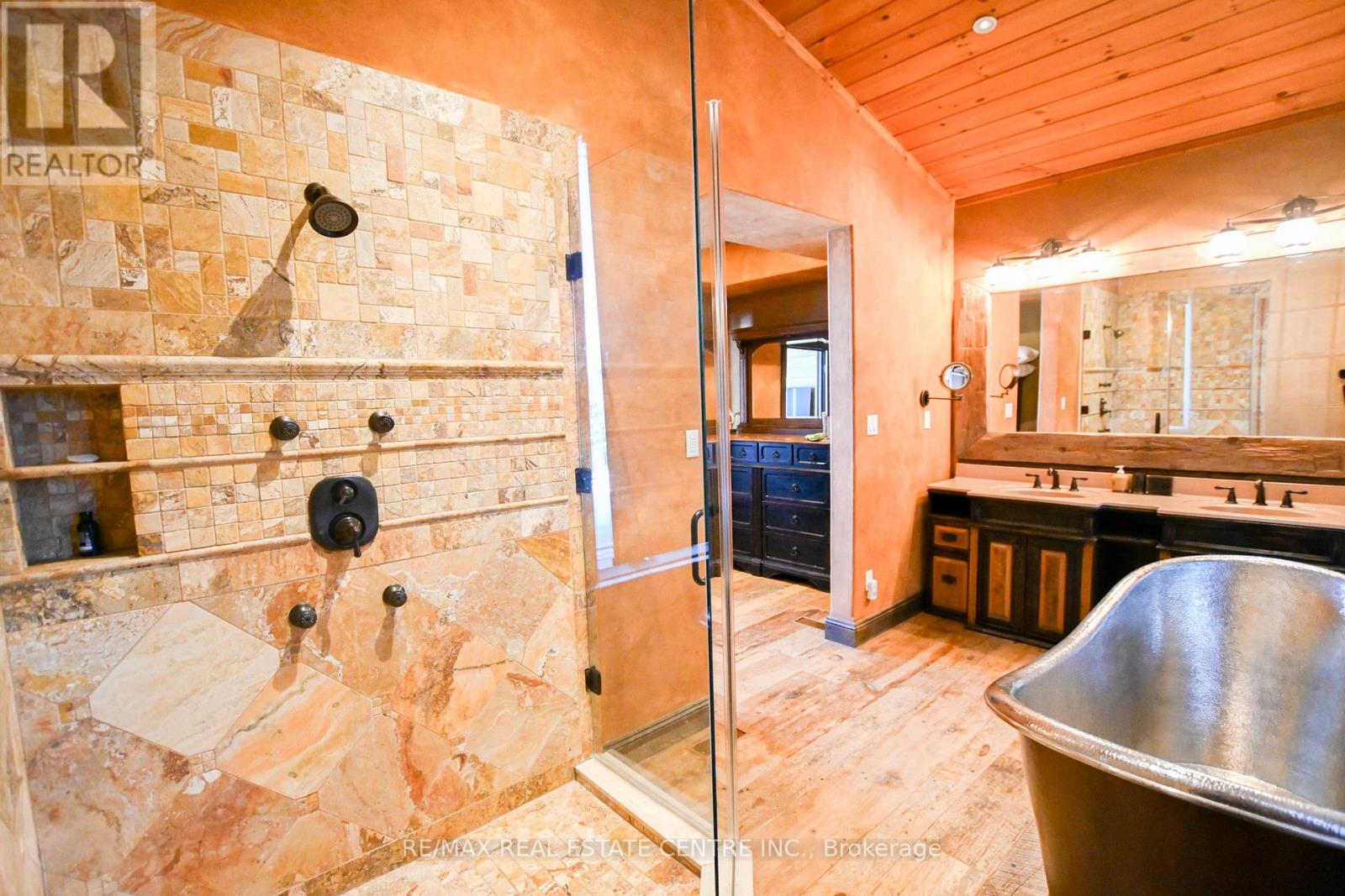 Wake up to breathtaking, panoramic views of Lake Huron on 1.43 acres - where the sound of the water, the surrounding nature, and the serenity of Tobermory come together in one extraordinary property. This 5-bedroom, 4-bathroom home blends peaceful living with affordable luxury, offering a retreat that feels worlds away, while still being fully turn-key and move-in ready. Three of the bedrooms feature walkouts to the wrap-around deck overlooking the water and private dock. The primary suite is a true sanctuary, complete with a two-way fireplace, walkout to the deck and hot tub, a spacious walk-in closet, and a spa-inspired en-suite showcasing a striking battered silver soaker tub. The main level living room mirrors this sense of grandeur with cathedral ceilings, a dramatic wall of windows, and the second side of the two-way fireplace. The hardwood-finished kitchen flows seamlessly to the deck and BBQ area, making indoor-outdoor living effortless. The lower level adds even more versatility with an additional bedroom, entertainment space, and a walkout leading directly to the dock and garden. Outside, multiple parking areas and a detached 2-car garage provide convenience, all surrounded by nature and the calming soundtrack of the shoreline. This is more than a home - it's a lifestyle defined by peace, views, and the beauty of Lake Huron. (id:64974)