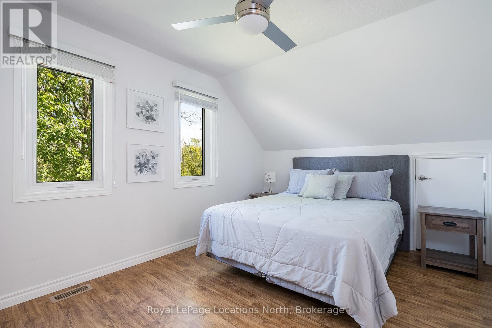 This is a rare opportunity at the base of Blue Mountain...a freehold chalet located inside Mountain Road at the north end-placing you just steps from the ski hill. The current owner enjoys true ski-in/ski-out convenience, heading directly from the front door to the slopes. Offering five bedrooms across three levels, with a bathroom on each floor, this contemporary chalet is thoughtfully designed to accommodate family gatherings and weekend guests with ease. Built in 2015, the home delivers modern construction, energy efficiency, and low-maintenance comfort-far removed from the typical drafty ski cabin. Although the municipal address is Grey Road 19, the property fronts onto Lucille Wheeler Crescent and boasts approximately 180 feet of frontage. This generous lot configuration may offer severance potential for those considering an investment opportunity (subject to approvals). Being offered fully turnkey, including furniture and accessories, this property is ready for immediate enjoyment this ski season. Arrange your private showing today. (id:64974)