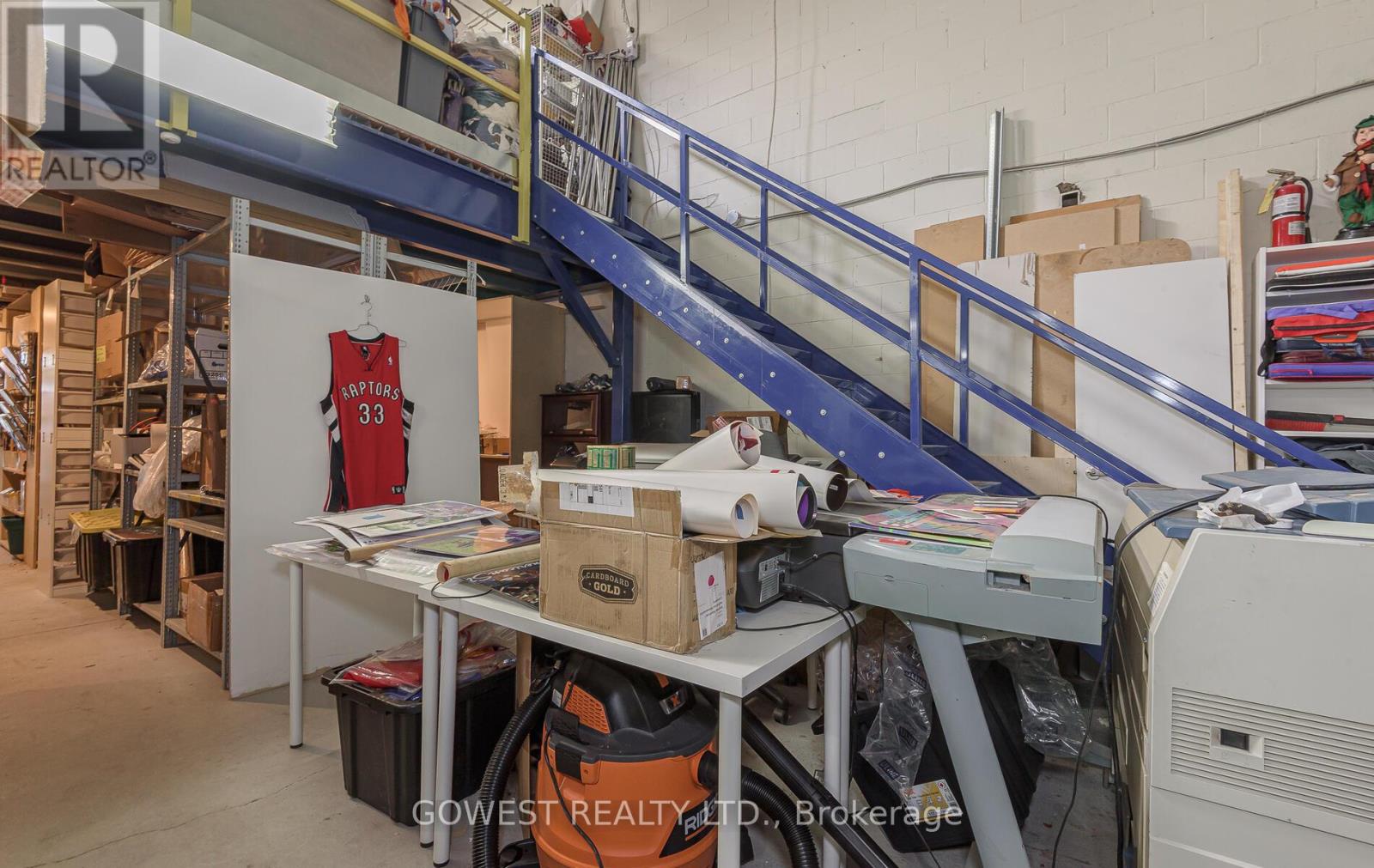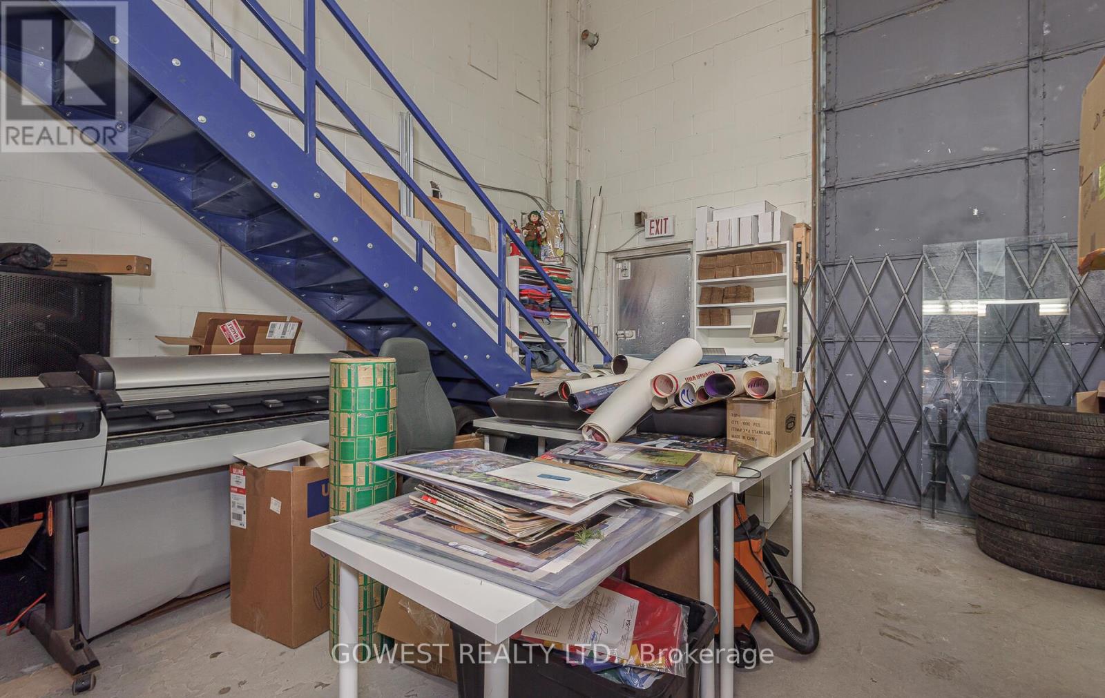 Excellent Opportunity To Own A Versatile Manufacturing/Warehouse Space With Office Areas And Automotive Zoning! Ideal for automotive repair and a variety of other business uses. This functional space features 20-ft ceilings, a 14-ft loading door at the rear, and a ground floor area of approximately 2,025 sq. ft. (22.5 ft x 90 ft), plus an additional fixed second-floor area of approximately 460 sq. ft. A steel mezzanine offers valuable additional storage space. The property includes central heating and air conditioning in the main warehouse area, while the front office and upper level have separate split heating/cooling units (installed in 2021). Additional features include 3 parking spaces, 2 skylights, and 3 washrooms (2 two-piece washrooms and 1 three-piece washroom). Gas, garbage, and internet are extra. Located in a high-demand area, this is an excellent opportunity for a wide range of business operations. (id:64974)