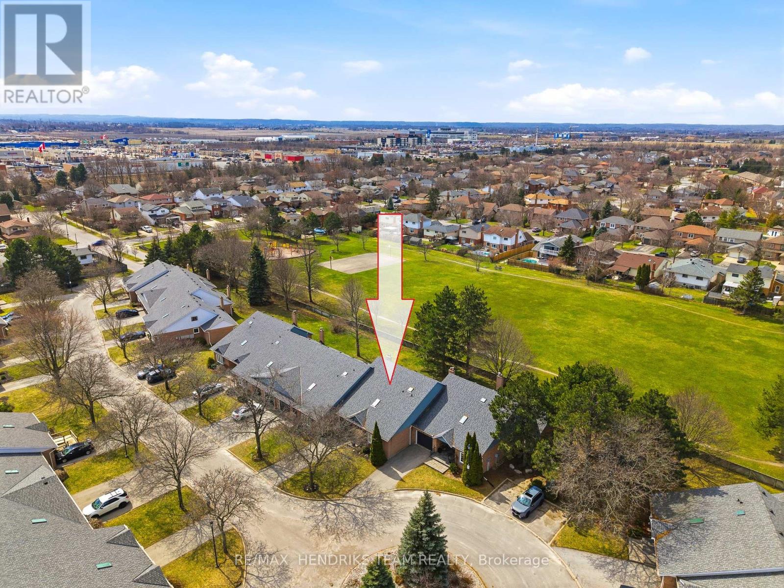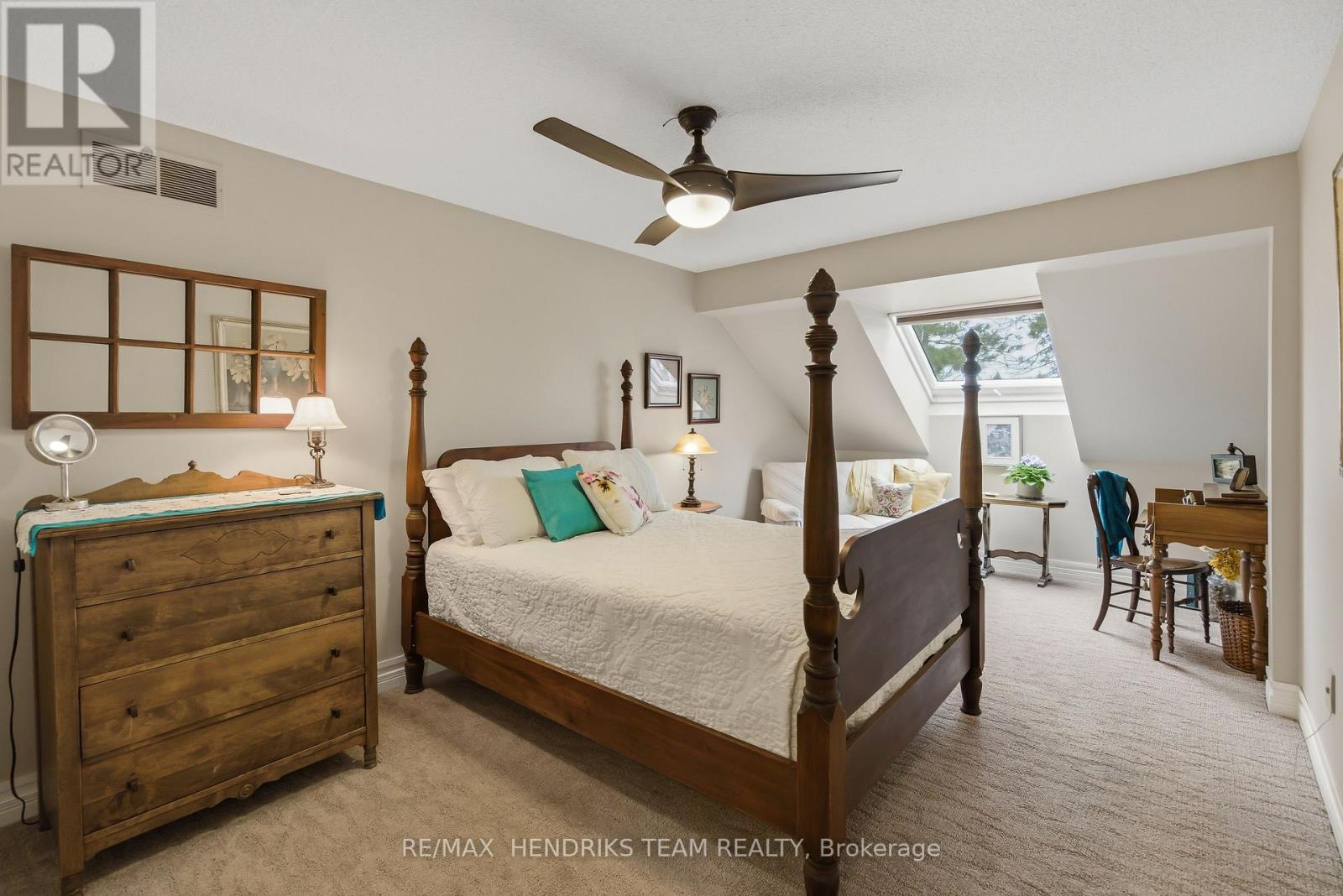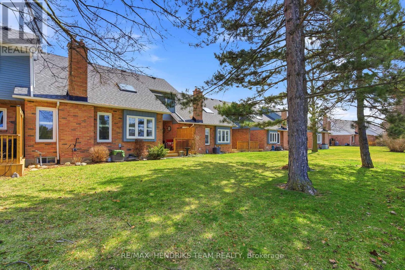Tucked into the highly sought-after Martindale Heights community, this beautifully renovated bungaloft townhome backs directly onto Mountainview Park offering privacy and a natural backdrop. Deceiving from the front, this home delivers over 1800 sq ft above grade with a layout designed for true main-floor living. A welcoming front hall leads to an oversized main-floor primary bedroom. Alternatively, for those who prefer additional living space this room has also been utilized as a large main floor sitting room in the past. The adjacent bathroom is fully renovated with a custom vanity featuring quartz countertops, undermount sink, tiled flooring with matching baseboards and glass walk-in shower. The kitchen is finished with an abundance of cabinetry, quartz countertops and stainless steel appliances opening to a private rear deck. A main-floor laundry room with direct garage access adds everyday convenience. The open living and dining area features cathedral ceilings, gas fireplace with custom tile surround and views that overlook the park through California shutters. Upstairs, two oversized bedrooms offer generous closet space and share a well-appointed four-piece bathroom. The partially finished lower level includes a home office, two-piece bath and additional space for storage or workshop use. Designed with flexibility in mind, this home allows for complete main-floor living or use of the entire home. The rear yard offers a peaceful setting with mature trees and no rear neighbours. The monthly convenience fee covers snow removal, lawn care, front garden landscaping (If desired), TV, internet and exterior maintenance, including but not limited to the roof, windows and doors providing true low-maintenance living. A rare offering in one of St. Catharines' most desirable communities. (id:64974)