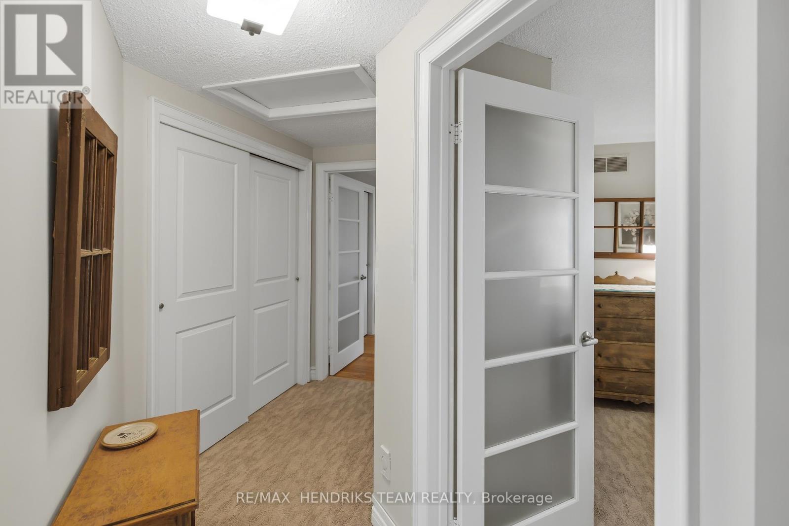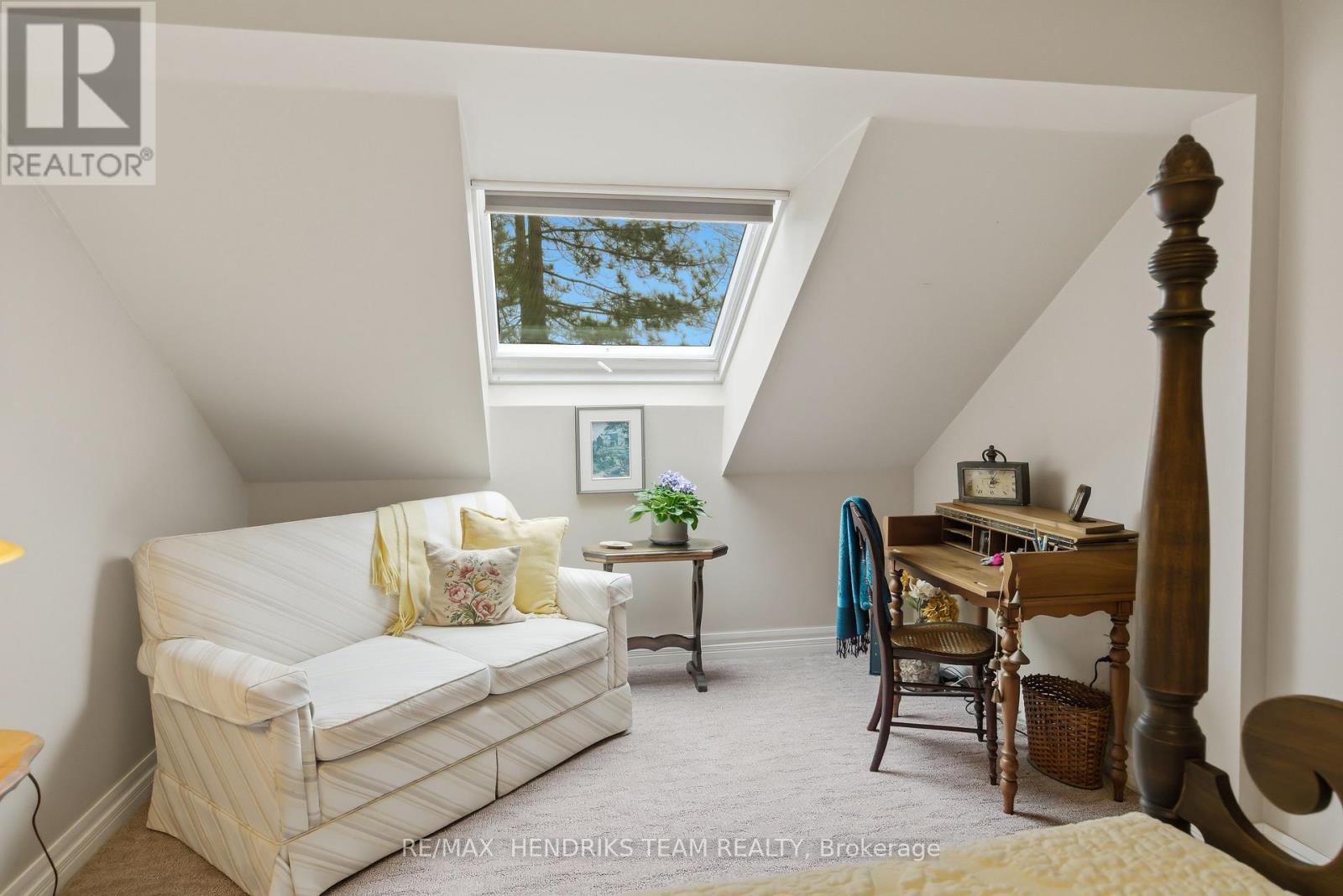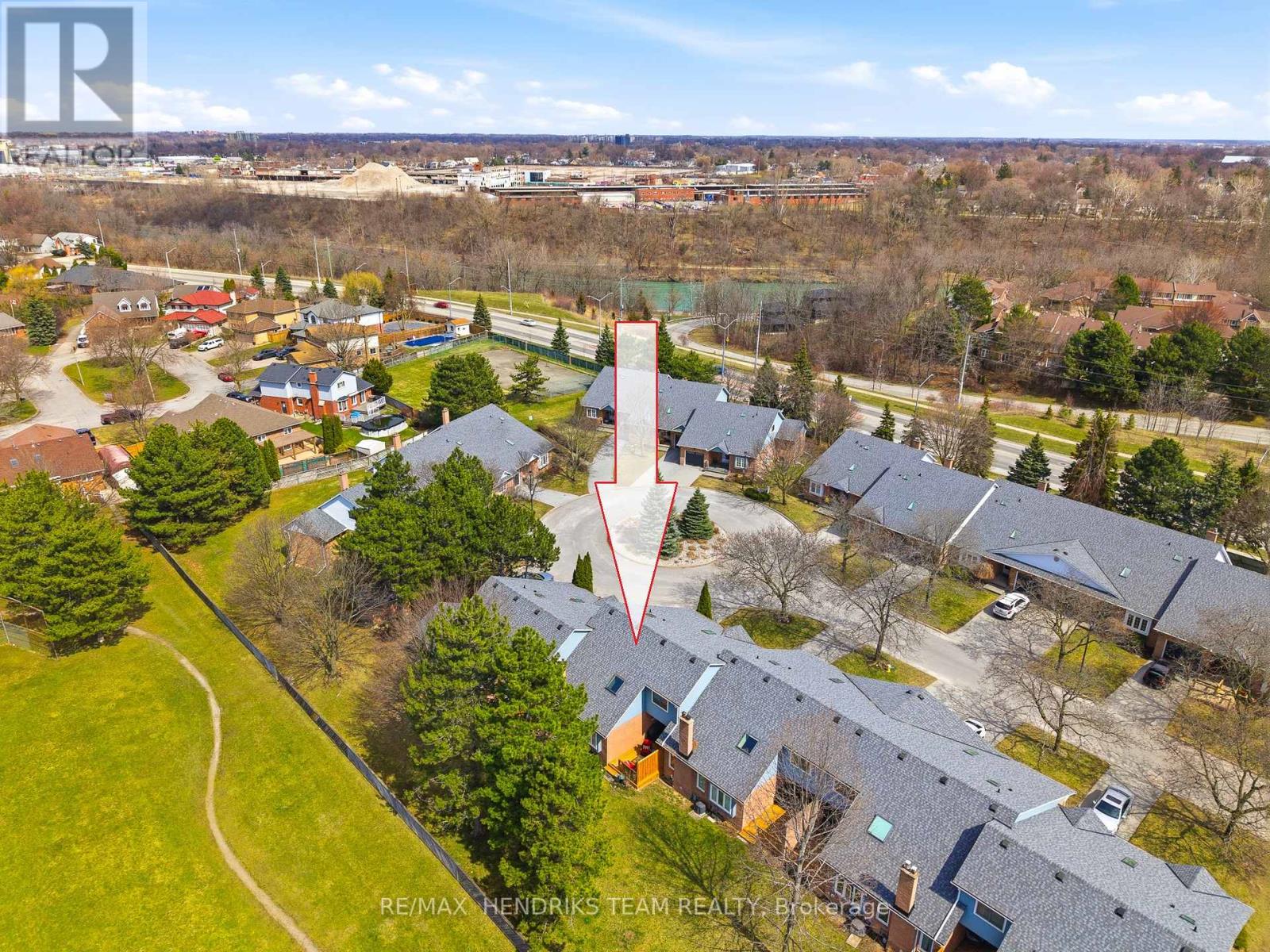 Tucked into the highly sought-after Martindale Heights community, this beautifully renovated bungaloft townhome backs directly onto Mountainview Park offering privacy and a natural backdrop. Deceiving from the front, this home delivers over 1800 sq ft above grade with a layout designed for true main-floor living. A welcoming front hall leads to an oversized main-floor primary bedroom. Alternatively, for those who prefer additional living space this room has also been utilized as a large main floor sitting room in the past. The adjacent bathroom is fully renovated with a custom vanity featuring quartz countertops, undermount sink, tiled flooring with matching baseboards and glass walk-in shower. The kitchen is finished with an abundance of cabinetry, quartz countertops and stainless steel appliances opening to a private rear deck. A main-floor laundry room with direct garage access adds everyday convenience. The open living and dining area features cathedral ceilings, gas fireplace with custom tile surround and views that overlook the park through California shutters. Upstairs, two oversized bedrooms offer generous closet space and share a well-appointed four-piece bathroom. The partially finished lower level includes a home office, two-piece bath and additional space for storage or workshop use. Designed with flexibility in mind, this home allows for complete main-floor living or use of the entire home. The rear yard offers a peaceful setting with mature trees and no rear neighbours. The monthly convenience fee covers snow removal, lawn care, front garden landscaping (If desired), TV, internet and exterior maintenance, including but not limited to the roof, windows and doors providing true low-maintenance living. A rare offering in one of St. Catharines' most desirable communities. (id:64974)