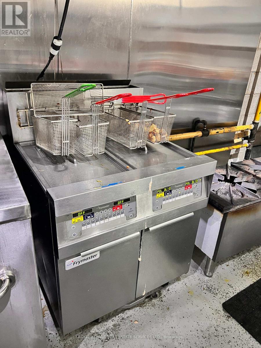 Turnkey Takeout opportunity on prime location, close to Rutherford and Steeles. Fully renovated customized Indian Style Cuisine take out restaurant. New HVAC system installed by seller and customized brand new kitchen with 16 feet Rangehood. All equipment's: 6 burner stove; automatic fryer, tandoor, walk-in-cooler, double door freezer; dough making machine etc. Water heater is owned. Base rent: $24.00per sqft plus TMI. Current rent is $3800 including hst and lease is expiring May 2028 and further 5 + 5 can be renewed. (id:64974)