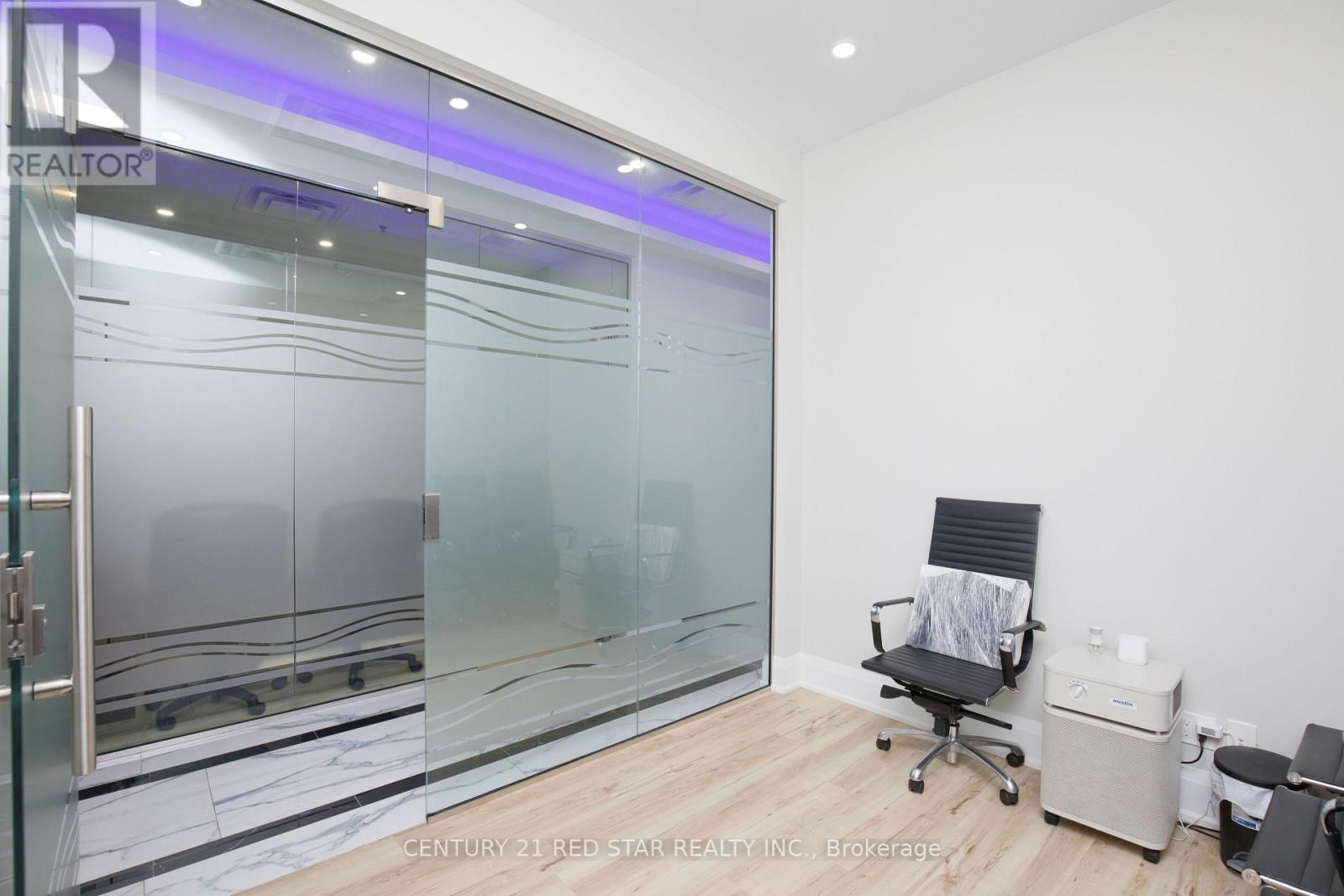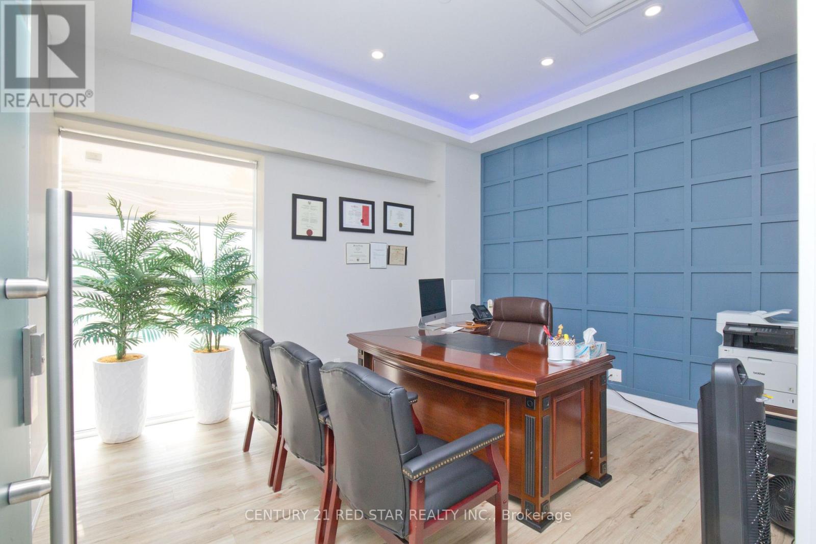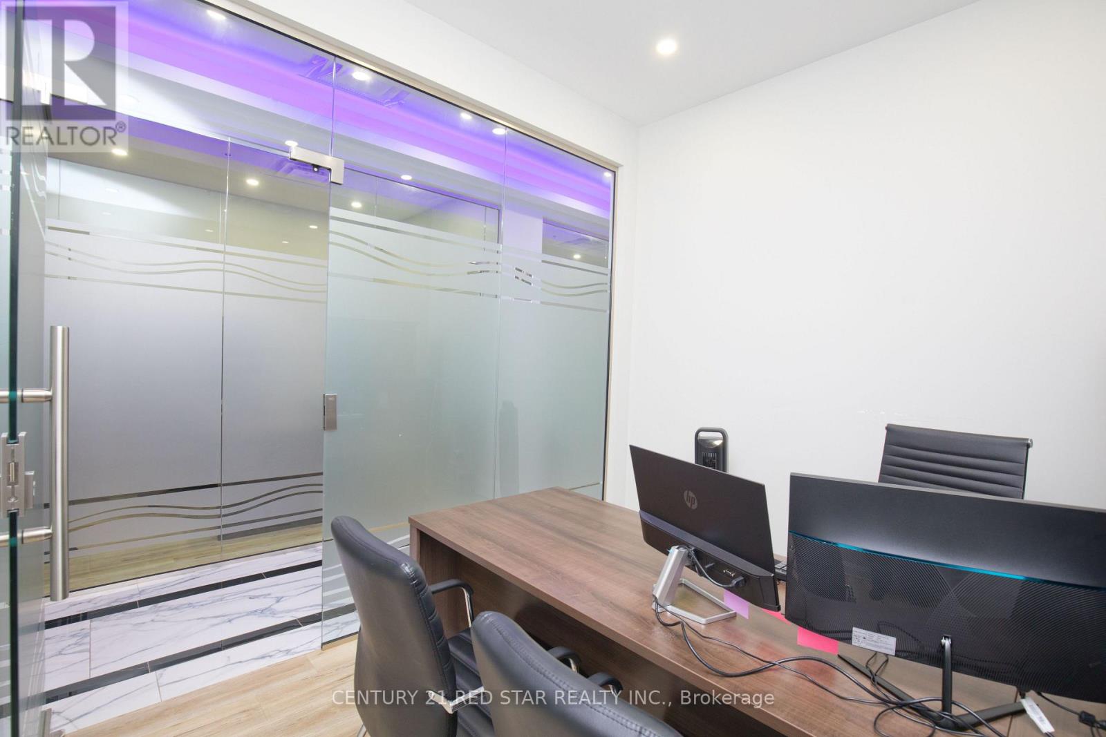 We are pleased to offer an exceptional office space for sale in one of Mississauga's most sought-after locations, conveniently situated near major highways and essential amenities. This beautifully designed office premises provides a modern and functional workspace ideal for businesses seeking both style and practicality. The interior features elegant, contemporary furnishings providing ample space for organization. Each office is equipped with locks, ensuring secure access, adding to its appeal, the main floor boasts a kitchen, offering convenience for staff and visitors. The boardroom and private offices are outfitted with thoughtfully crafted decor, creating an inviting yet professional environment. This office space is perfectly suited for businesses looking to elevate their workplace experience with high-quality features and a prime location. Well constructed 12 office with Kitchen and 2 washroom on main floor and 1 office and washroom on mezzanine floor. Nice reception with open ceiling and all office with glass doors and hard wood floors, hallway with ceramic tile. (id:64974)