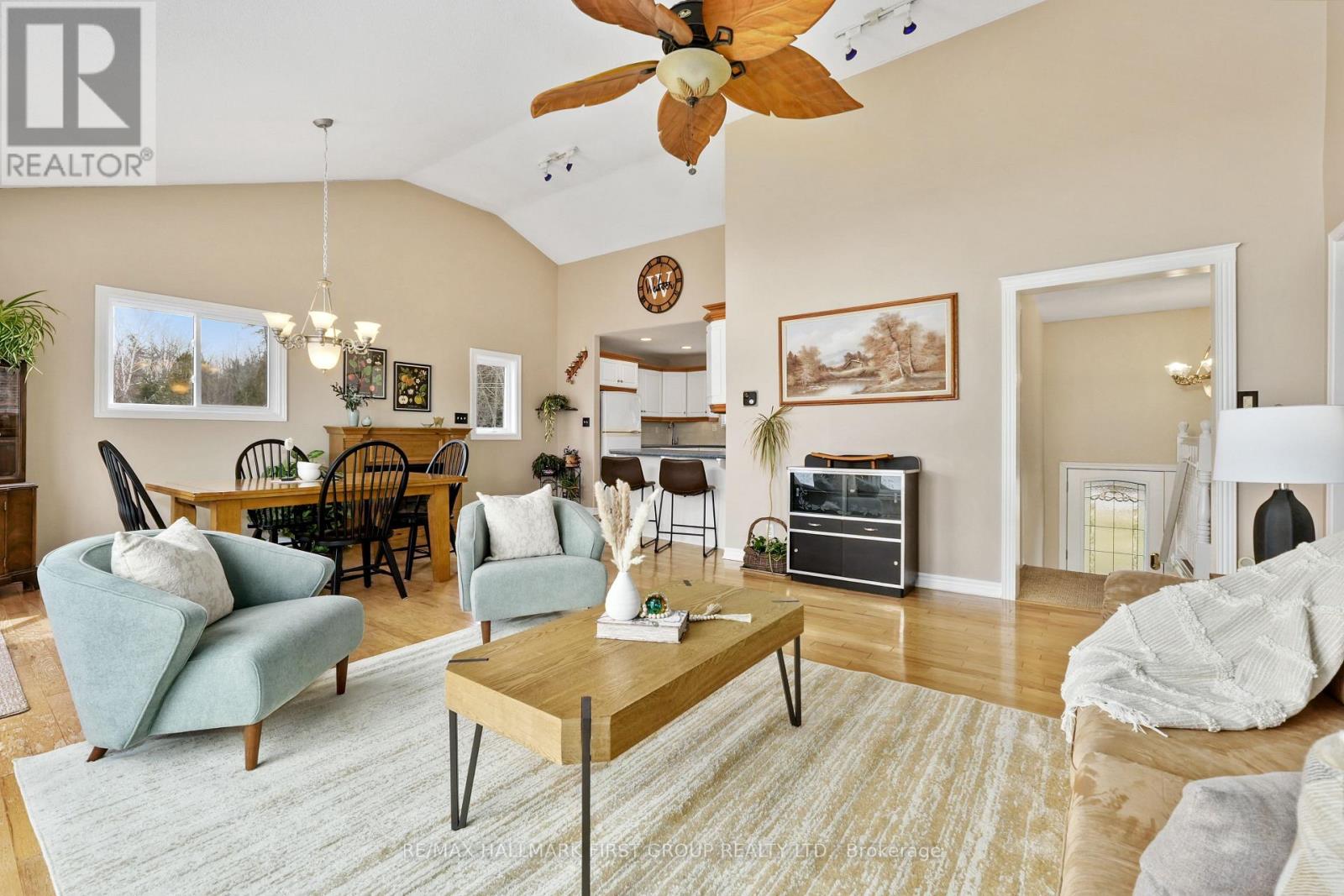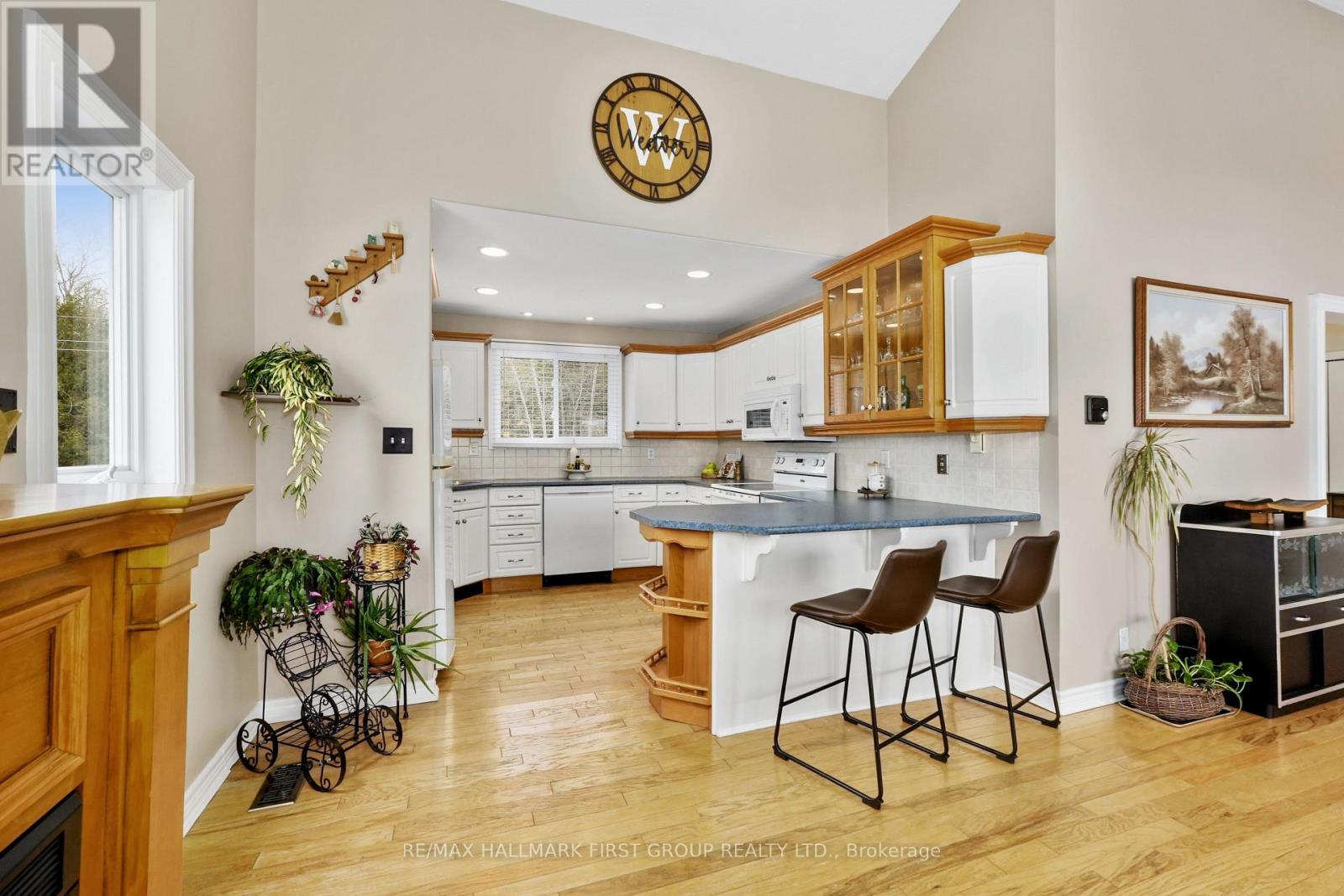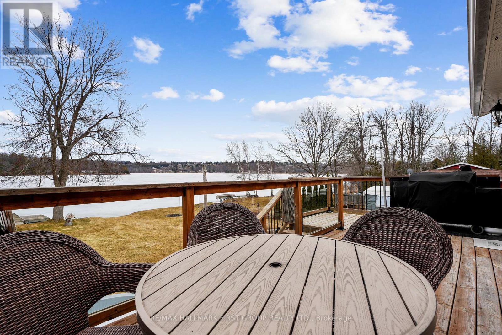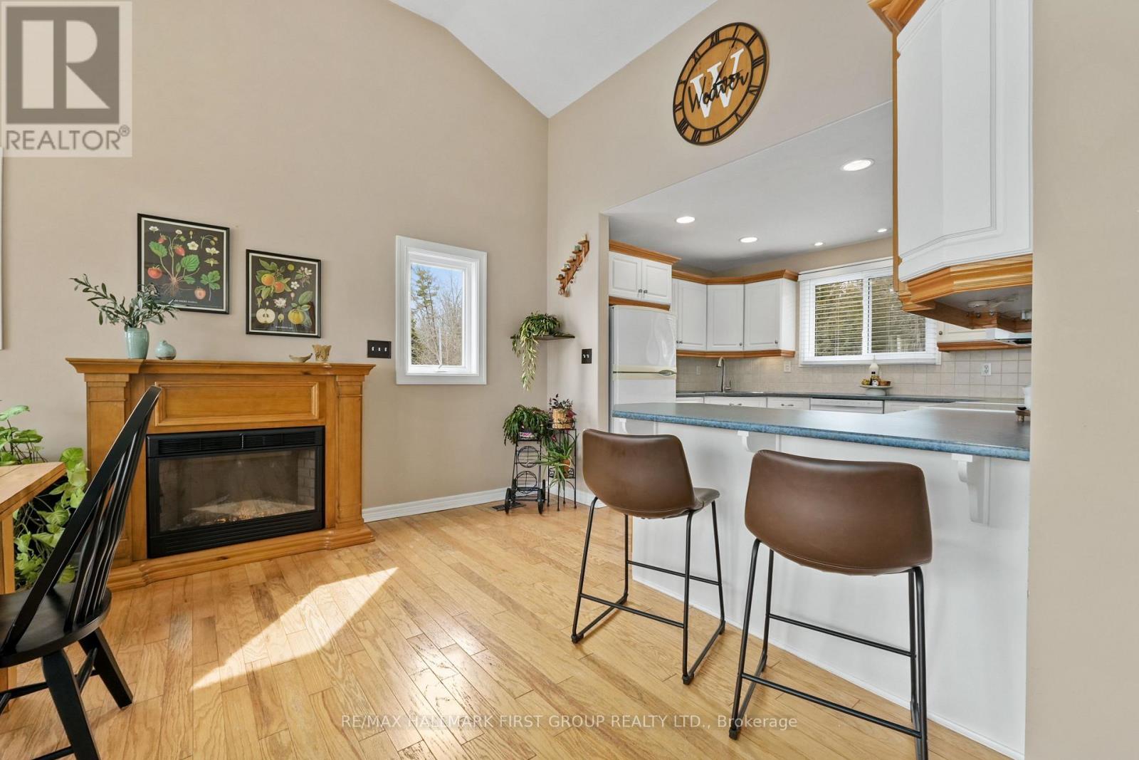 Set along the shores of Rice Lake, this waterfront property offers a thoughtful blend of comfort, functionality, and effortless connection to the outdoors, complete with an attached two-bay garage and boathouse. The main level is designed for easy living and gathering, with an open principal space highlighted by vaulted ceilings and expansive windows that frame unobstructed water views. A walkout from the dining area extends the living space outdoors, creating a natural flow for entertaining and everyday enjoyment by the lake. The kitchen is both practical and inviting, featuring ample counter and cabinet space, matching appliances, recessed lighting. A prep peninsula with breakfast bar and character rich open shelving adds warmth and personality to the space. Three well-appointed bedrooms are located on the main level, including a primary retreat with a walk-in closet. A full bathroom features a separate tub and glass shower enclosure, complemented by a convenient main-floor laundry and powder room. The lower level adds versatility with a cozy rec room anchored by a stove-style fireplace, a bright guest bedroom, a full bathroom, and a sauna for added relaxation. A separate entrance leads to the garage, which has been thoughtfully adapted to provide additional living space ideal for a games room or entertaining area. Outdoors, an elevated deck captures sweeping lake views and sets the scene for al fresco dining and sunset evenings, while a lower deck and generous green space invite time spent outdoors. Mature trees line the property's edges, enhancing privacy. The pristine shoreline is equipped for full enjoyment of lake life with a boathouse, marine rail, dock, and fire pit, creating a setting that is ready to be enjoyed in every season, with easy access to nearby trails for year-round recreation. (id:64974)