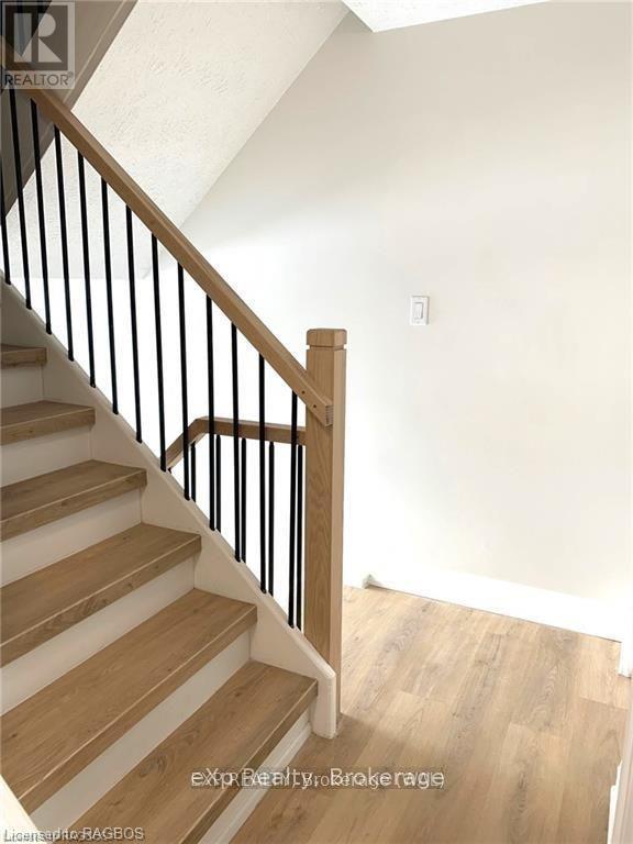 Imagine arriving home after a hard day to your comfy, spacious executive townhome nestled in the heart of the neighborhood. This newly renovated carpet free, two bedroom unit has a bright kitchen that includes appliances, 2 bathrooms, large livingroom, lower level that offers an over-size single garage and a separate sizeable laundry/storage room to keep things organized! Upstairs, entertain or relax in the generous livingroom and dine in the eat-in kitchen with family and friends. At day's end, retreat to one of two large, restful bedrooms. Best of all, everything you need is just a short stroll away school, downtown, the river and so much more. And don't forget, Bruce Power is a short drive away (id:64974)