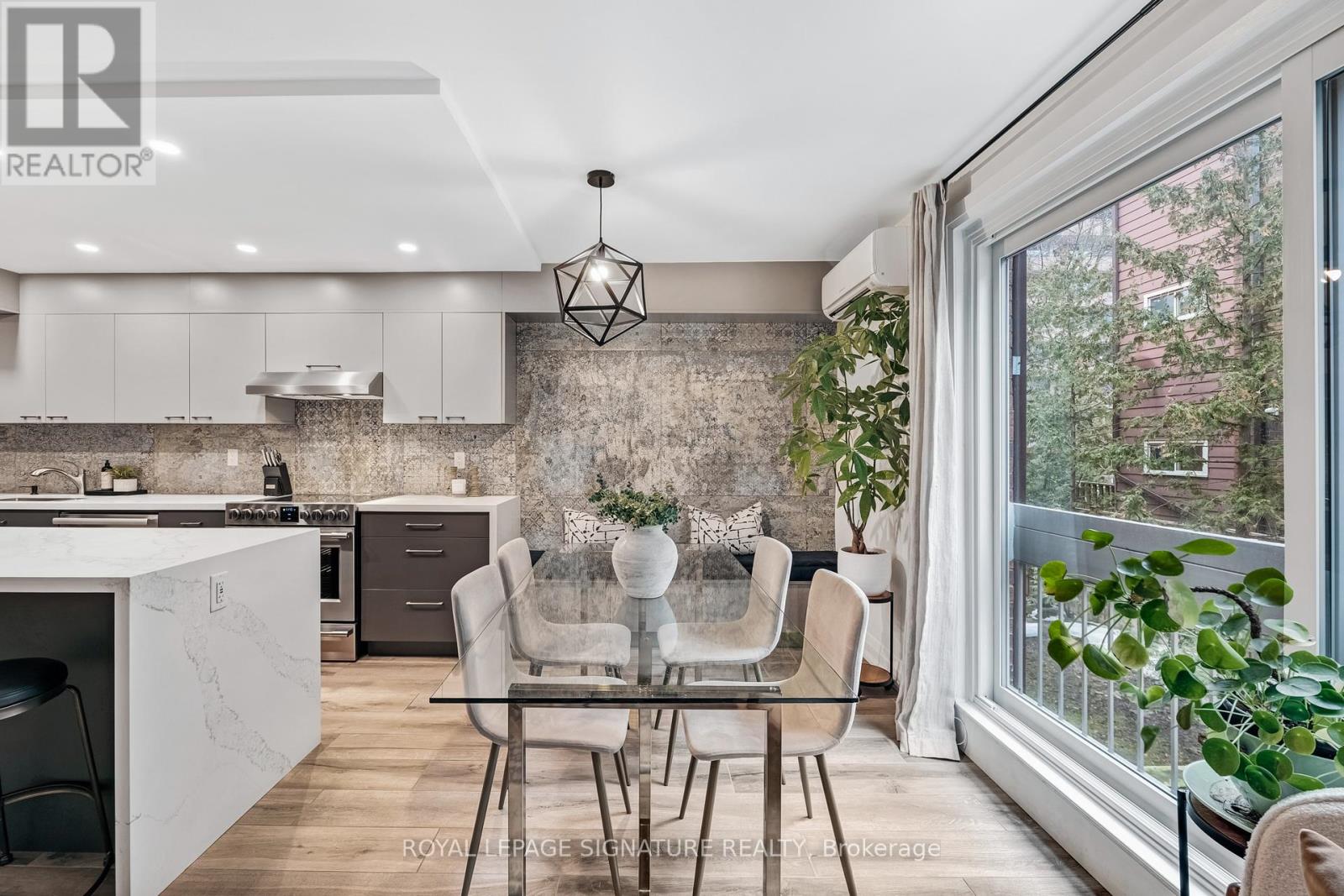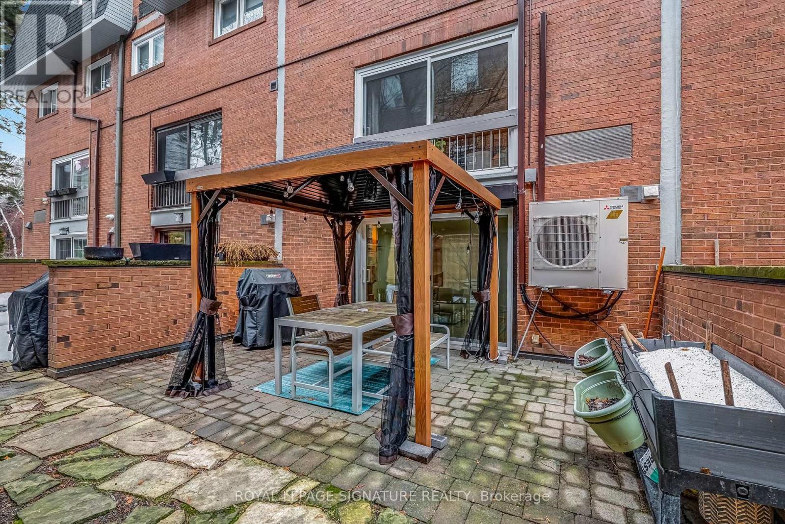 Some homes fit into the city. Others become part of its story. Welcome to the Annex. Tucked behind an understated brick façade, this beautifully renovated townhouse unfolds across four thoughtfully designed levels and more than 1,800 sq ft of living space. With 3 bedrooms and 3 washrooms, the layout strikes that rare balance: generous enough to grow into, yet effortless to live in every day. The main floor was designed for gathering. A modern kitchen with generous island and built-in banquette anchors the open-concept living and dining areas, while sliding doors invite in fresh air and leafy views. Upstairs, the top level becomes a private retreat. The spacious primary suite features a beautifully renovated ensuite, while a dedicated skylit office offers a bright work-from-home space. Two additional bedrooms and a second renovated washroom provide flexibility for family or guests. Downstairs, a cinematic family room with fireplace, projector and blackout screen creates a true movie-night experience. Walk out to an exclusive patio with screened-in gazebo - a private outdoor retreat made for summer barbecues and evening cocktails. Only ten homes share this secure boutique enclave, known for its warm community. Underground parking and a large storage locker make daily life wonderfully uncomplicated. Set on a quiet one-way street - noticeably calmer than nearby Bedford or St. George - yet steps to the subway, U of T, parks, groceries, restaurants, galleries and Yorkville's boutiques. In short: city living, written exactly the way it should be. (id:64974)