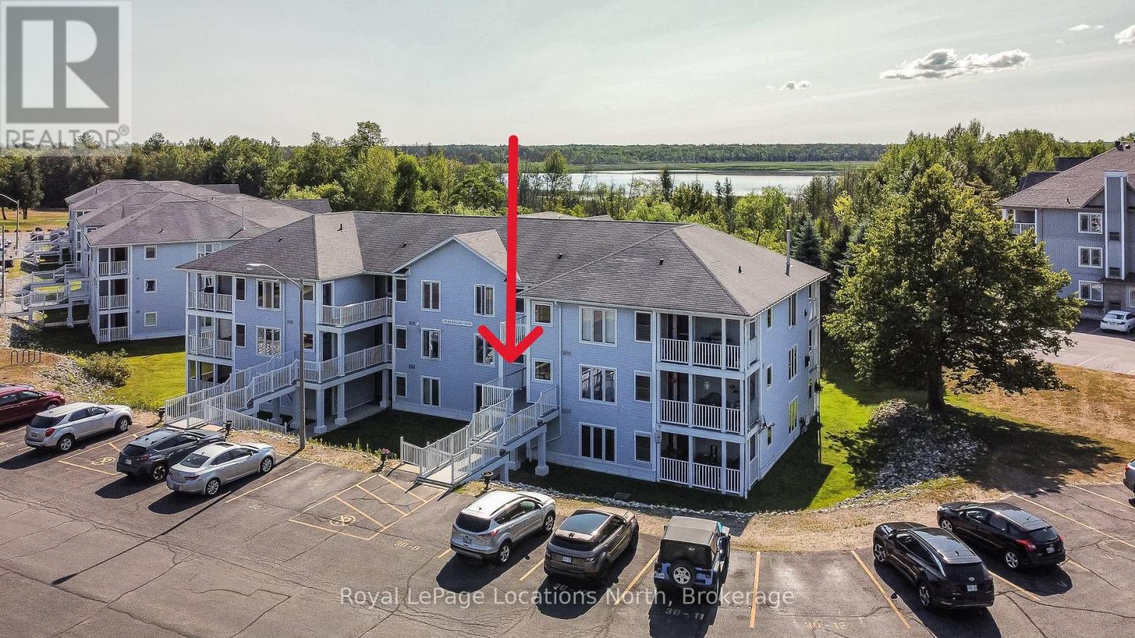 Amazing opportunity to own a large, open-concept condominium in the VERY popular Marlwood Golf Course Community of Wasaga Beach. At just shy of 1,200 sq. ft., this 2-bedroom, 2-bath condo offers a lot of space. You'll love the open-concept design of the kitchen (with breakfast bar) that overlooks both the dining area and the living room (with corner gas fireplace). This particular design also has a huge (13' x 21') covered and screened-in deck/balcony (accessed from the living room sliding glass doors), which also overlooks the private, mature-treed rear yard. There is also a set of stairs at the back of the building if you wish to easily walk your pet and/or wiggle your toes in the luscious, grassed area out back too. Laminate flooring adorns all rooms (except the kitchen, bathrooms, laundry & foyer), and other amenities of this condo include its own in-suite laundry with a new stackable washer/dryer, central vac, economical gas heat & central air-conditioning. This 2nd-floor "interior unit" has a condo above, below, and on each side of it, so it is also one of the most economically efficient (for heating and cooling) locations in the building. And speaking of great locations, this condo also has easy access to its front door thanks to the gently sloping ramp/stairs with only 5 gradual steps from the parking lot to the condo, so no long flight of stairs to navigate. Your designated parking spot is directly out front, with ample guest parking and a conveniently located mailbox nearby. The condo fees are $659.42/month & property taxes are $153/month. Located just a short drive from the sandy shores of the world's longest freshwater beach, this condo offers easy access to the Marlwood Golf Course and nearby walking & biking trails. You're also minutes from east-end Wasaga Beach amenities, including shopping, dining, the Stonebridge/Walmart commercial area, the new arena, and the library, making this quiet, well-connected location truly unbeatable. (id:64974)