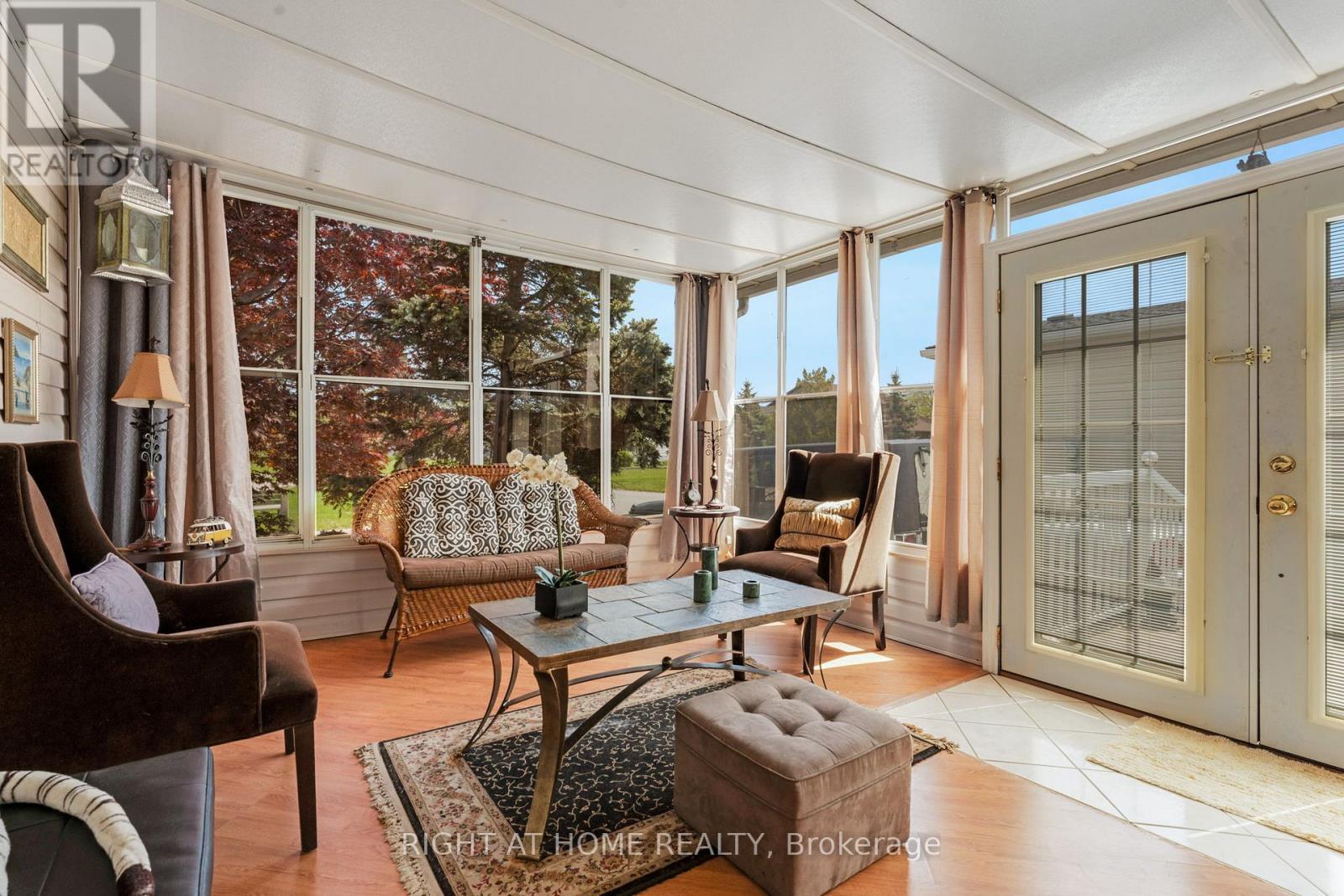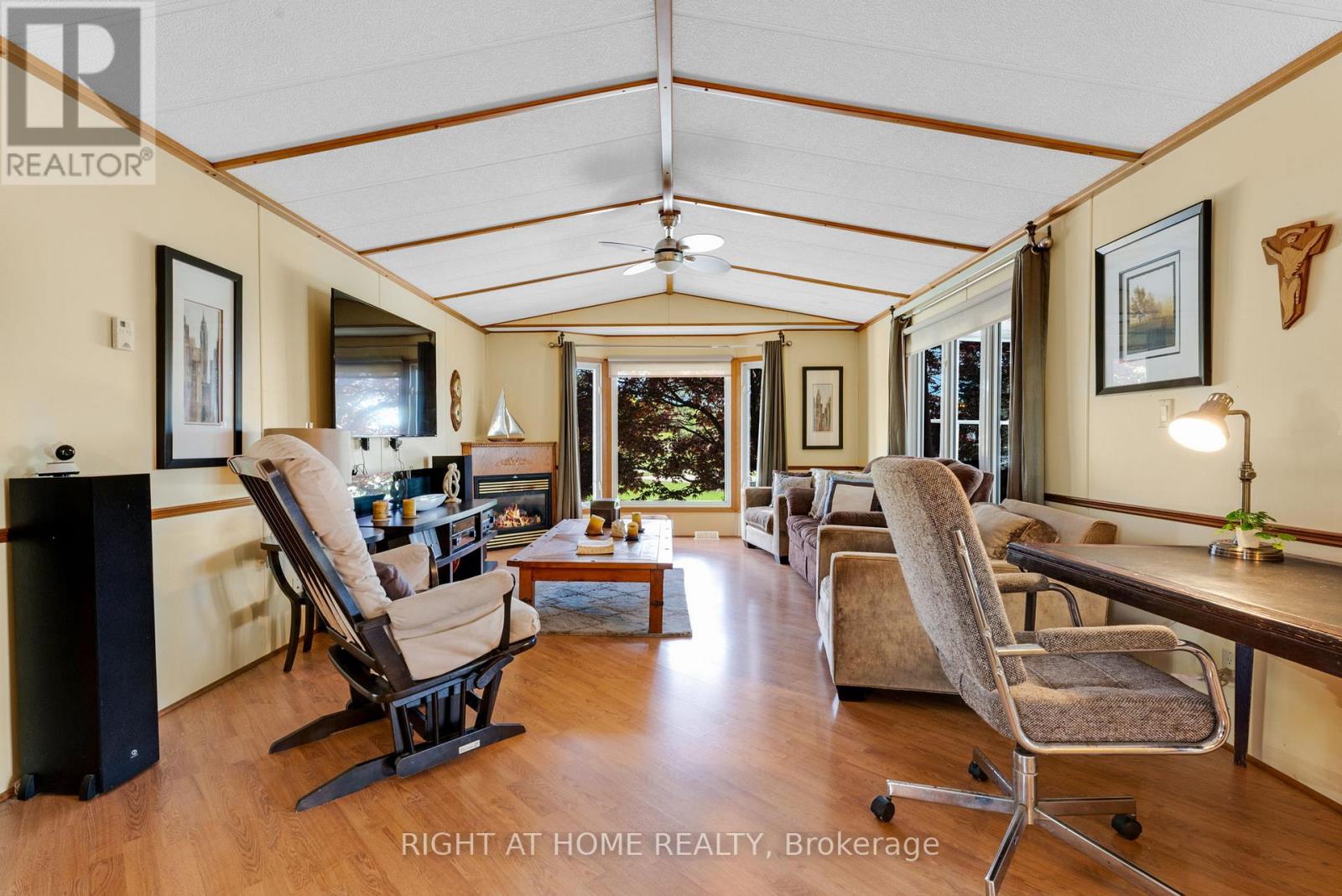 Fall in love with this bright, open-concept and beautifully maintained 1,220 sq ft bungalow located in the sought-after Black Creek Adult Community in scenic Stevensville. Designed for comfort and easy entertaining, the home also offers a spacious 180 sq ft sunroom and a partially covered 17' x 11' deck/terrace overlooking a manicured side yard - perfect for morning coffee or gatherings with family and friends.Inside, a formal dining room provides an inviting hosting space, while the light-filled kitchen and family room feature soaring cathedral ceilings and a cozy gas fireplace that adds warmth and charm. The conveniently placed laundry area sits just off the kitchen for everyday functionality.The hallway leads to generous storage and utility space, a versatile den, a bright office/bedroom with walk-out to the deck, a spacious primary bedroom, and a large 5-piece bathroom complete with a relaxing jetted tub.A double paving stone driveway offers two private parking spaces, and a powered 10' x 10' shed provides extra room for tools, hobbies, or seasonal storage.Enjoy an active and social lifestyle only steps away with access to the community centre, indoor and outdoor pools, indoor whirlpool spa, tennis courts, shuffleboard, saunas, library, gym equipment, golf and walking trails. Activities include yoga, aerobics, line dancing, tai-chi and more.Conveniently located just a short drive to Niagara Falls, Crystal Beach, Niagara Safari and nature parks. Experience enjoyable, peaceful & carefree living! book your private showing today! Estimated Monthly fee of $789.37 that covers Land-Lease and Taxes. (id:64974)