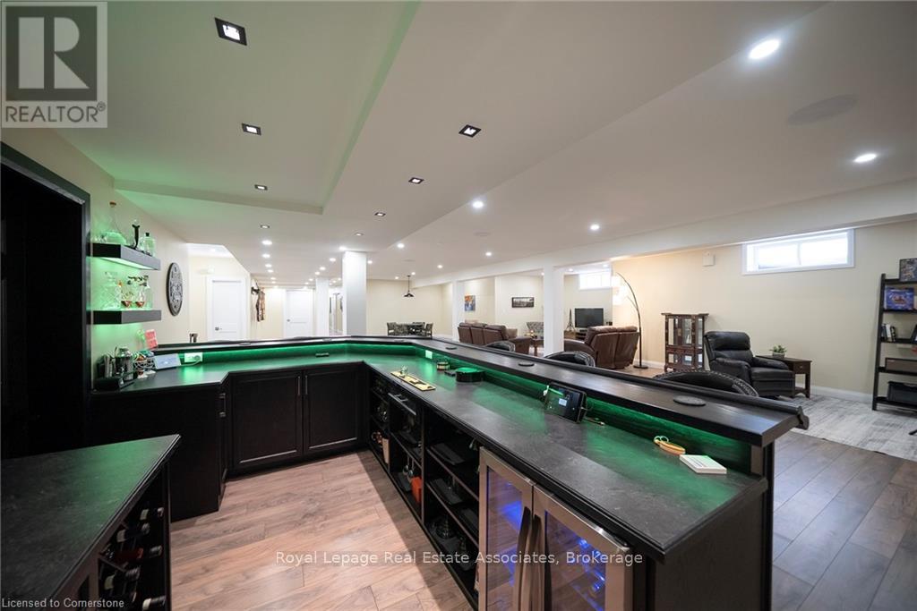 Experience refined country living in this exceptional custom built bungalow, privately set on 1 acre and embraced by 10 acres of protected green space. Offering over 7,000 sq. ft. of beautifully finished living space, this property blends timeless design with modern comfort in a setting that feels worlds away-yet remains conveniently close to everything. A grand custom entry opens to a dramatic foyer with soaring 16 ft cathedral ceilings, setting the tone for the elegance throughout. This spectacular great room features a striking two-sided stone fireplace and flows seamlessly into a chef-inspired kitchen complete with premium appliances, extensive cabinetry, and a spacious walk-in pantry (currently styled as a cozy coffee station). Whether hosting formal gatherings or enjoying relaxed family evenings, the layout is designed to impress without sacrificing warmth. A formal dining room, bright breakfast area, and sun-filled sitting room create multiple spaces to entertain or unwind. The main floor offers 4 generously sized bedrooms, including a serene primary retreat designed for spa-like relaxation. A thoughtfully designed laundry and mudroom adds everyday convenience with elevated style. The fully finished lower level delivers over 3,000 sq. ft. of additional living space, featuring a custom wet bar (with a hidden cold room tucked behind it), expansive recreation & games areas, 3 additional bedrooms. Ideal for extended family, guests, or multi-generational living. Outdoors you'll enjoy private walking trails, panoramic countryside views, and unmatched tranquility. A heated workshop, an oversized garage with space for up to nine vehicles provide incredible flexibility for car enthusiasts, hobbyists, or business owners. Located just minutes from Cambridge and Brantford, this is a rare opportunity to own a luxurious retreat that offers privacy, space, and convenience in perfect balance. This is More than a residence its a sanctuary, a statement, and a lifestyle! (id:64974)