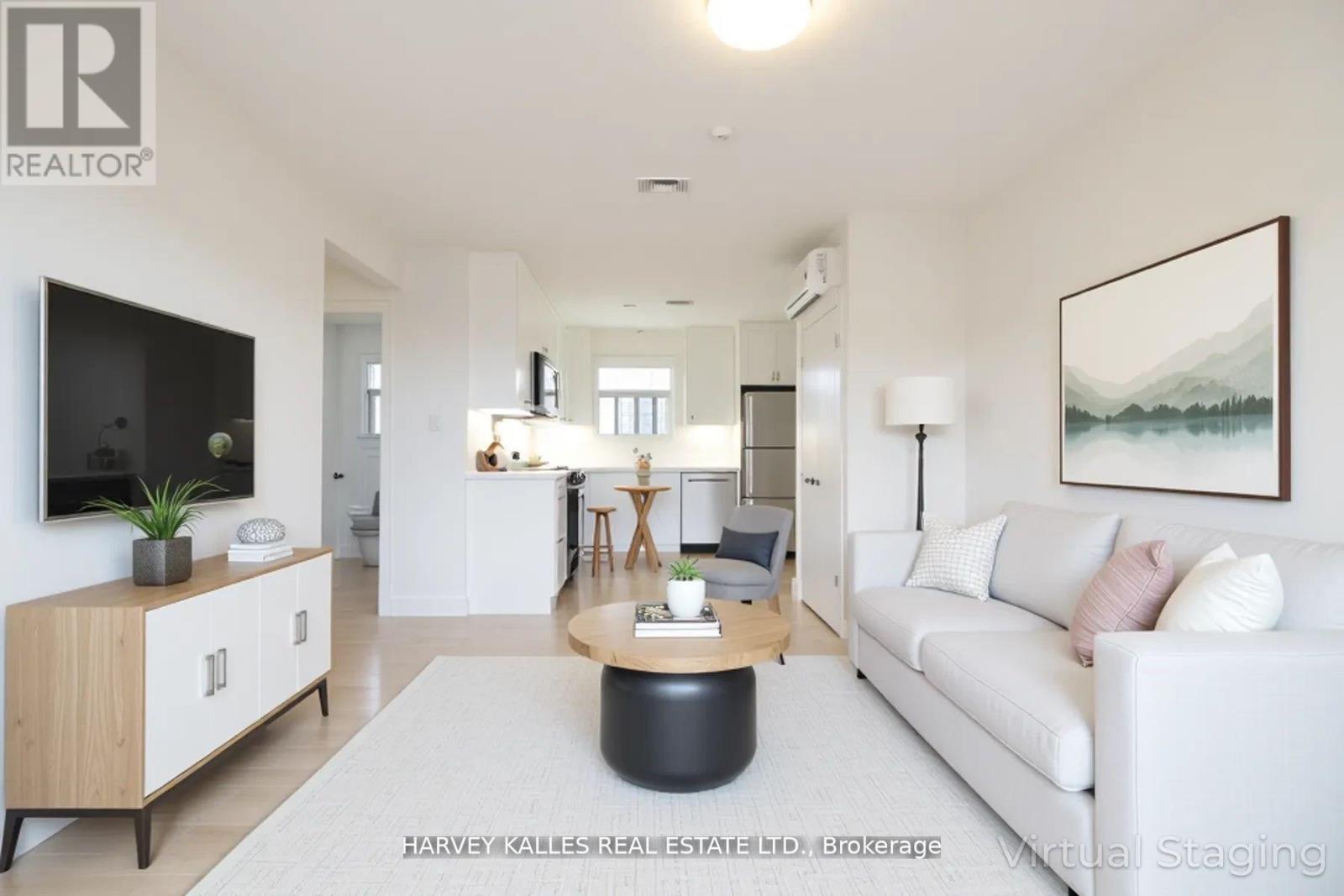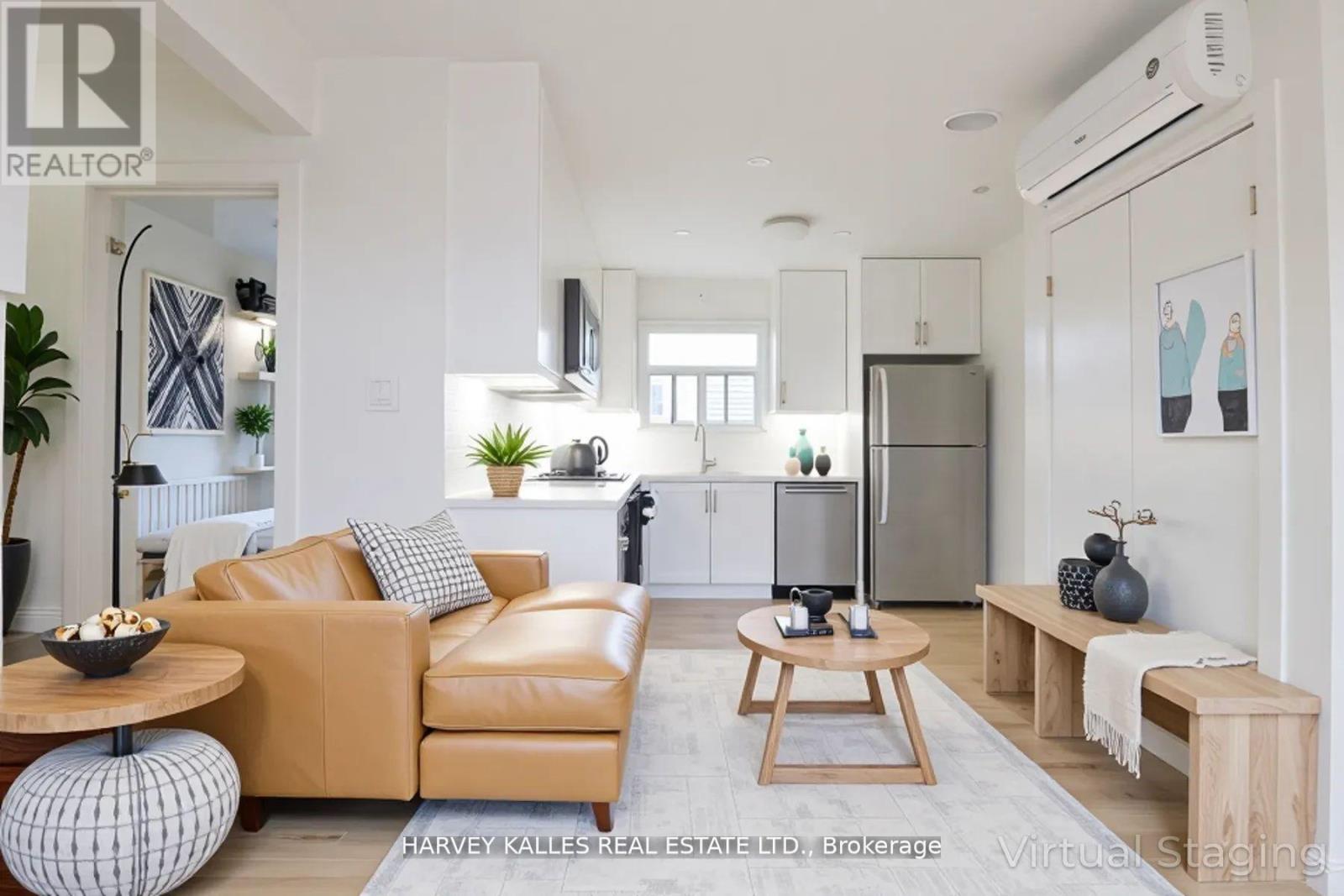 Bright and spacious 2-bedroom apartment in the heart of Port Credit, just steps from the lake, shops, and GO Station. Fully renovated about five years ago with new flooring, modern finishes, and a newer A/C unit. The kitchen features stainless-steel appliances - stove, fridge, dishwasher - plus an in-suite washer and dryer for added convenience. Enjoy open-concept living, abundant natural light, and the relaxed coastal feel of Port Credit's most desirable neighbourhood. A perfect home for professionals or couples seeking style, comfort, and walkable convenience. Parking $100/month extra. One small, harmless pet allowed. NOTE: Photos have been virtually staged. (id:64974)
