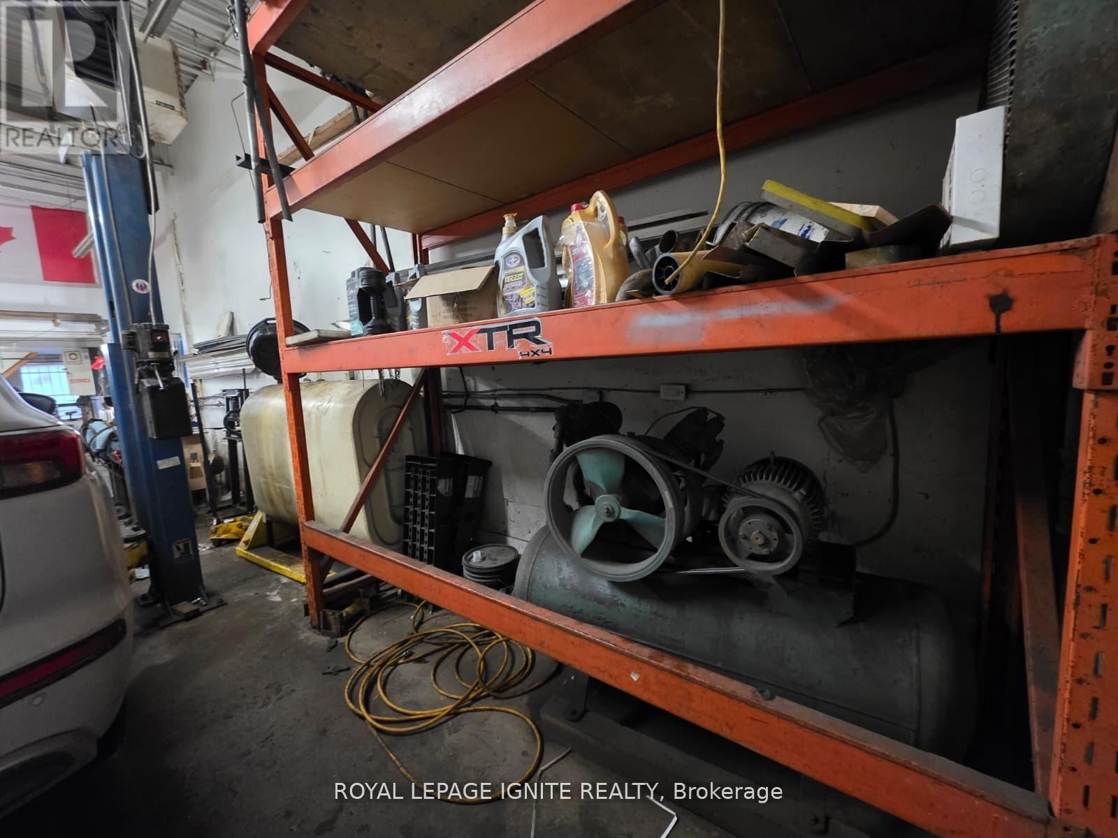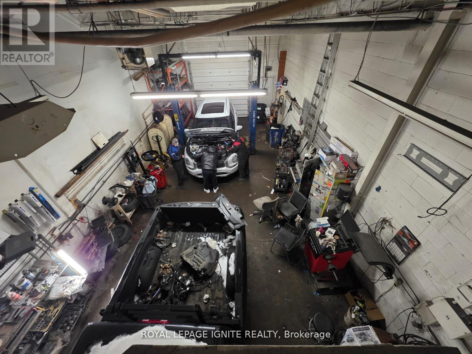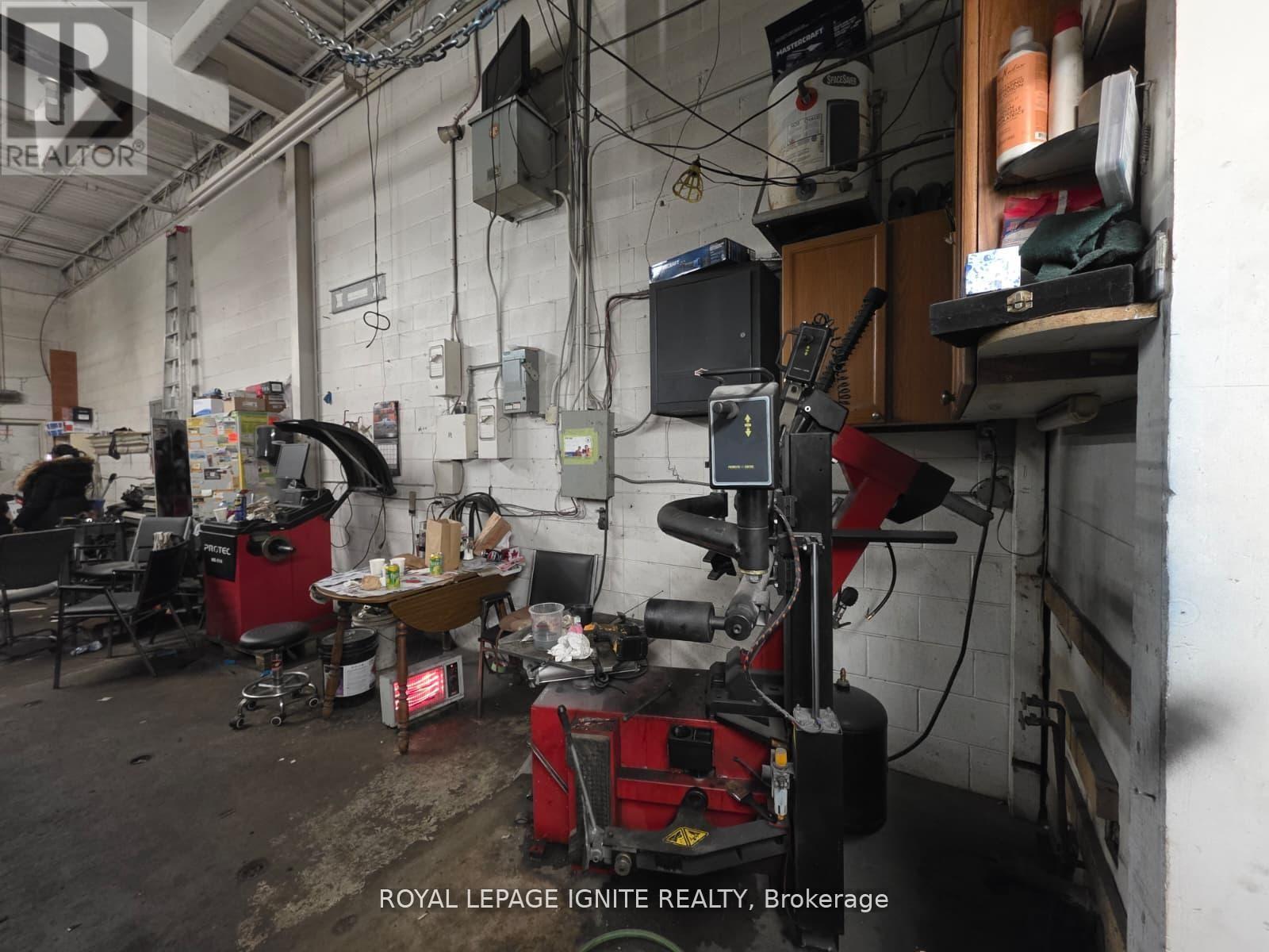 Spacious Auto Body/Auto Repair Shop in Prime Scarborough Location. Well-maintained industrial unit featuring large open workspace, upstairs office, customer waiting area, kitchenette, and private washroom. Located in a high-traffic automotive plaza with steady walk-in clientele. Low monthly rent makes this an excellent opportunity for owner-operators or investors. Unit comes equipped with a variety of tools and machinery, offering a turnkey setup for auto body, mechanical repair, or related uses. Ideal for those seeking a functional, ready-to-operate shop in a sought-after commercial area. (id:64974)