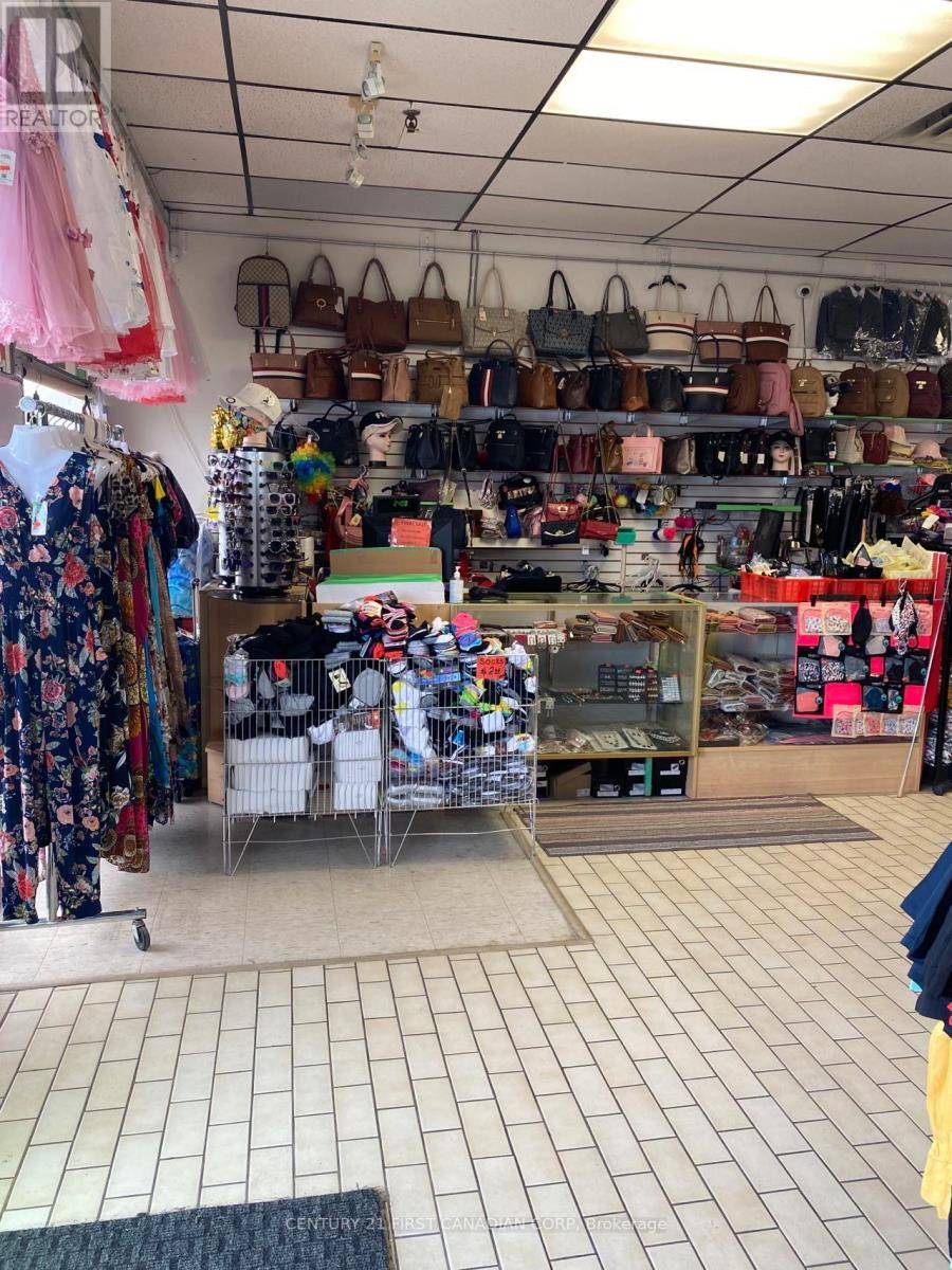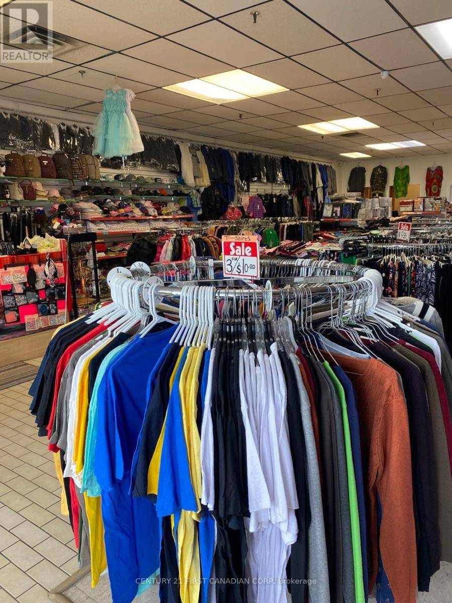 Great opportunity to run your own established retail business. Rainbow Discount Shop--This clothing and variety store serves both retail and wholesale customers and has built a steady customer base with repeat business throughout the year. Successfully operating for 8 years, the business is now offered at an attractive price , presenting excellent value for a new owner.Located in a high-traffic plaza on Hamilton Road between Highbury and Hale, directly across from McDonald's, next to a Shell gas station, and beside No Frills. Excellent visibility, a busy neighbourhood setting, and plenty of parking.The business offers lifestyle clothing and footwear for all ages, along with purses, totes, luggage, bedding, cookware, utensils, and other household items. The operation is well-suited for an owner-operator or family-run business, and is ideal for those looking to step into an established retail setup. Training will be provided to support a smooth transition.A solid turn-key opportunity for someone ready to take over and continue growing the business. (id:64974)