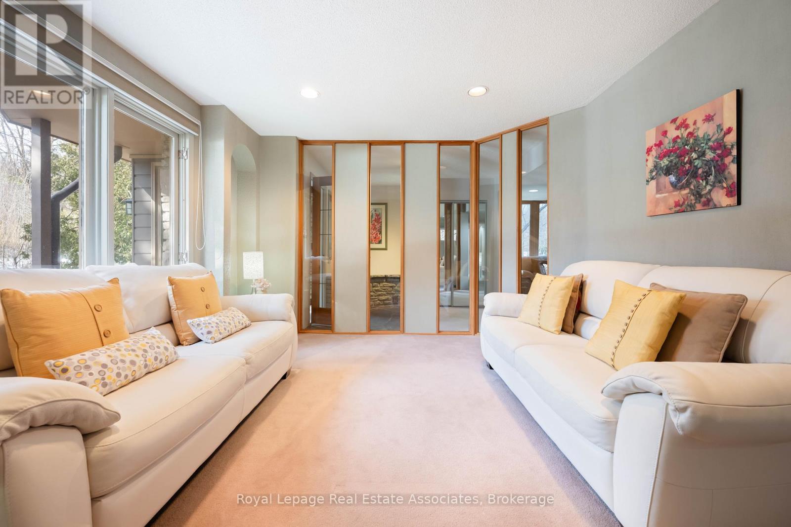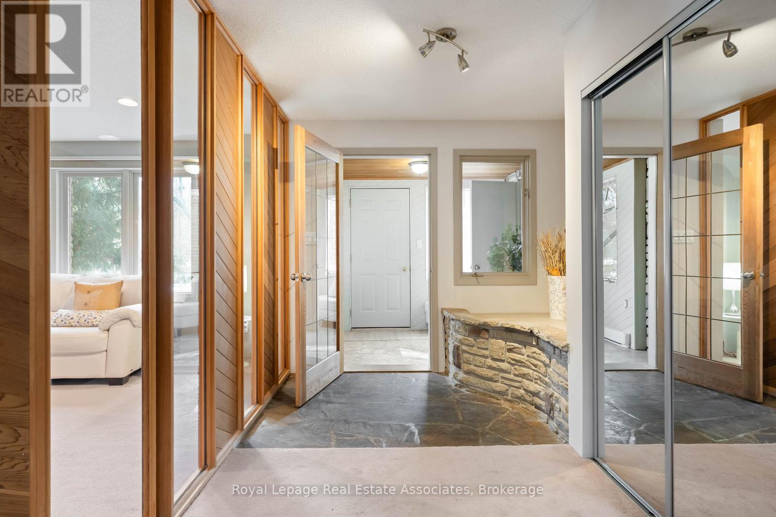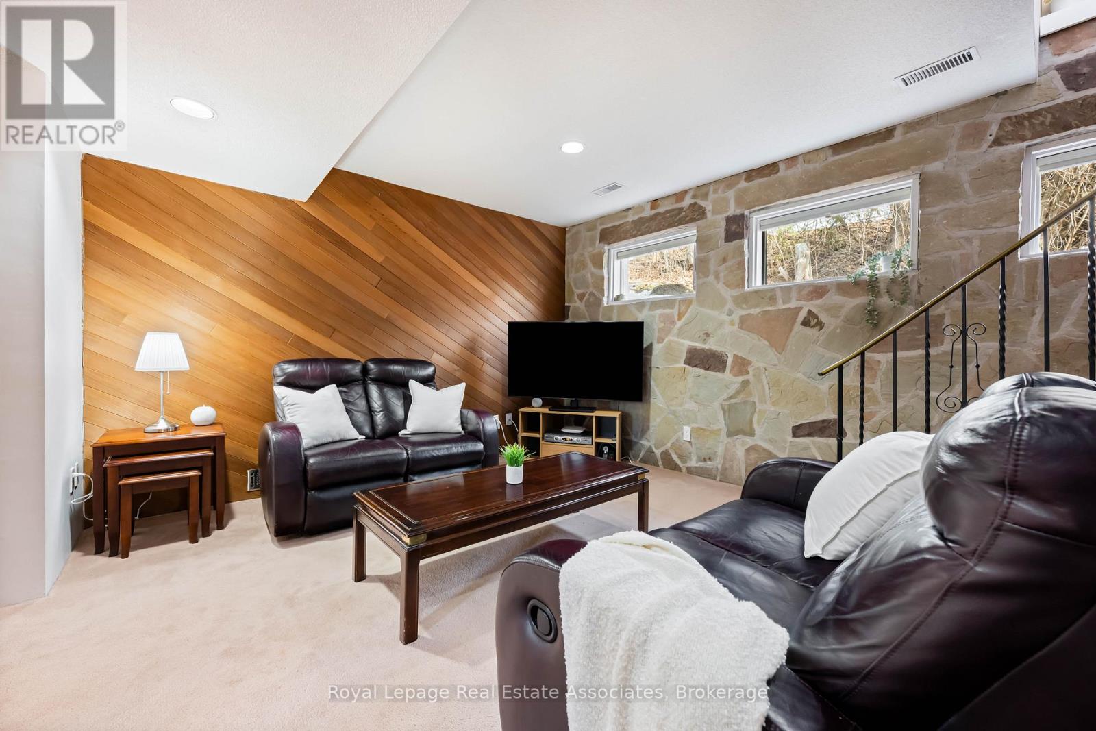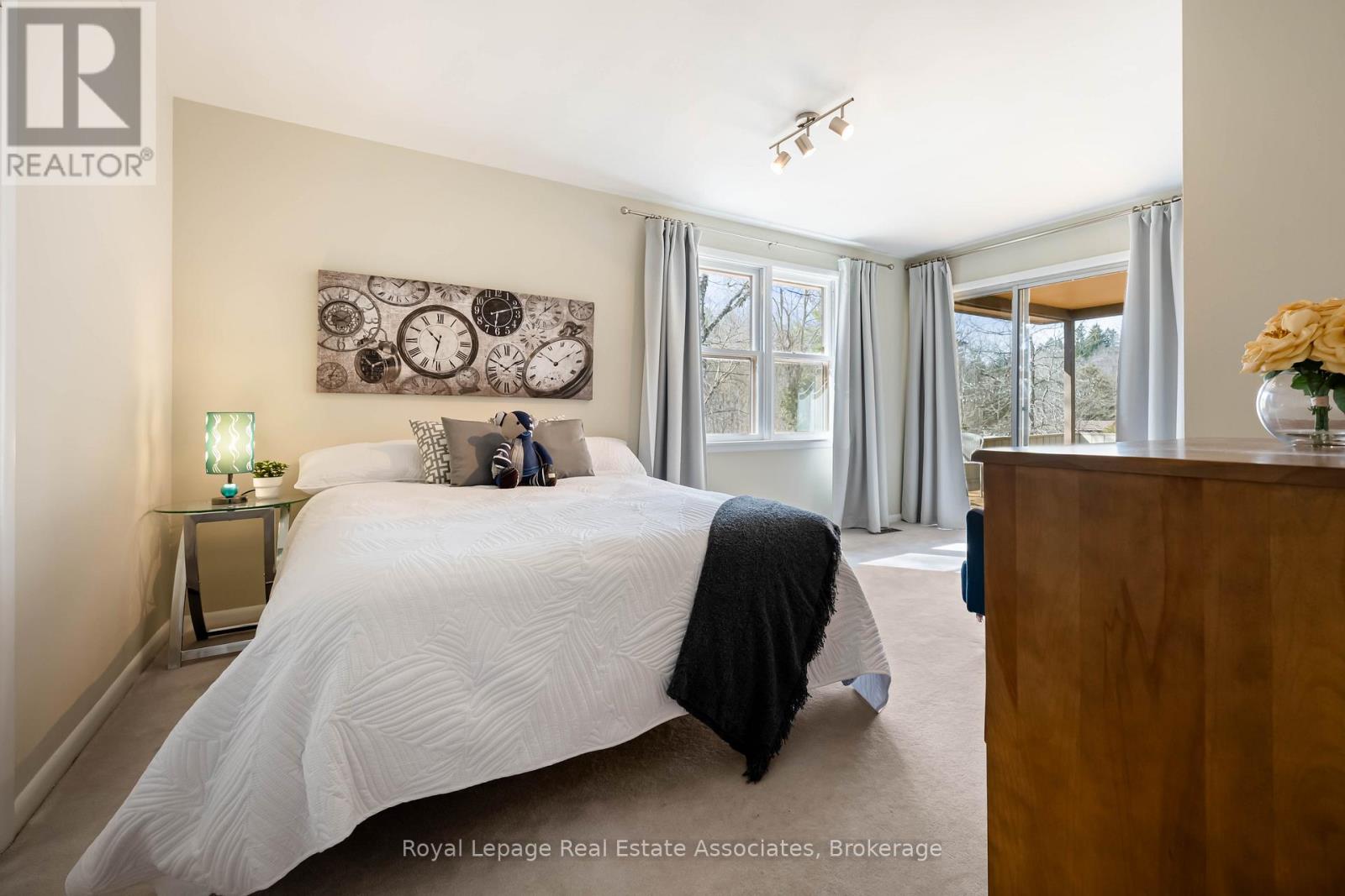 Tucked away on a private drive just minutes from the GO Station, Glen Williams, and Downtown Georgetown, this custom built 4-bedroom home provides 2137 sq ft of exceptional privacy, space, and a true connection to nature without sacrificing the convenience of town living. This is a rare opportunity to own a truly one-of-a-kind property with a beautifully treed .68-acre lot, shared ownership of a 1.096-acre parcel at the front, and breathtaking views of Silver Creek from every window. Designed with family life in mind, the home features four spacious, bright bedrooms, each with large windows showcasing beautiful views of the surrounding landscape. Both the primary and secondary bedrooms open directly onto the wraparound deck, creating seamless indoor-outdoor living. The cozy family room is highlighted by a stunning natural stone wall and gas stone fireplace, making it the perfect place to relax and unwind at the end of the day. The home also offers a large, bright eat-in kitchen with picturesque views of the creek, making it the perfect space for busy morning routines and evening family meals.Beyond the walls, the wraparound deck is the perfect place to start your day with a sunrise coffee and unwind in the evening while watching the sunset over the trees and creek. The expansive yard is perfect for families, giving kids plenty of room to play and explore. This is a place where your kids can truly be kids, spending afternoons exploring the woods, skipping rocks in the creek, or biking along quiet streets. This is more than a home; it's a sanctuary for family life offering a place to grow, play, and relax, all while enjoying the beauty of nature and the convenience of Georgetown just minutes away. (id:64974)