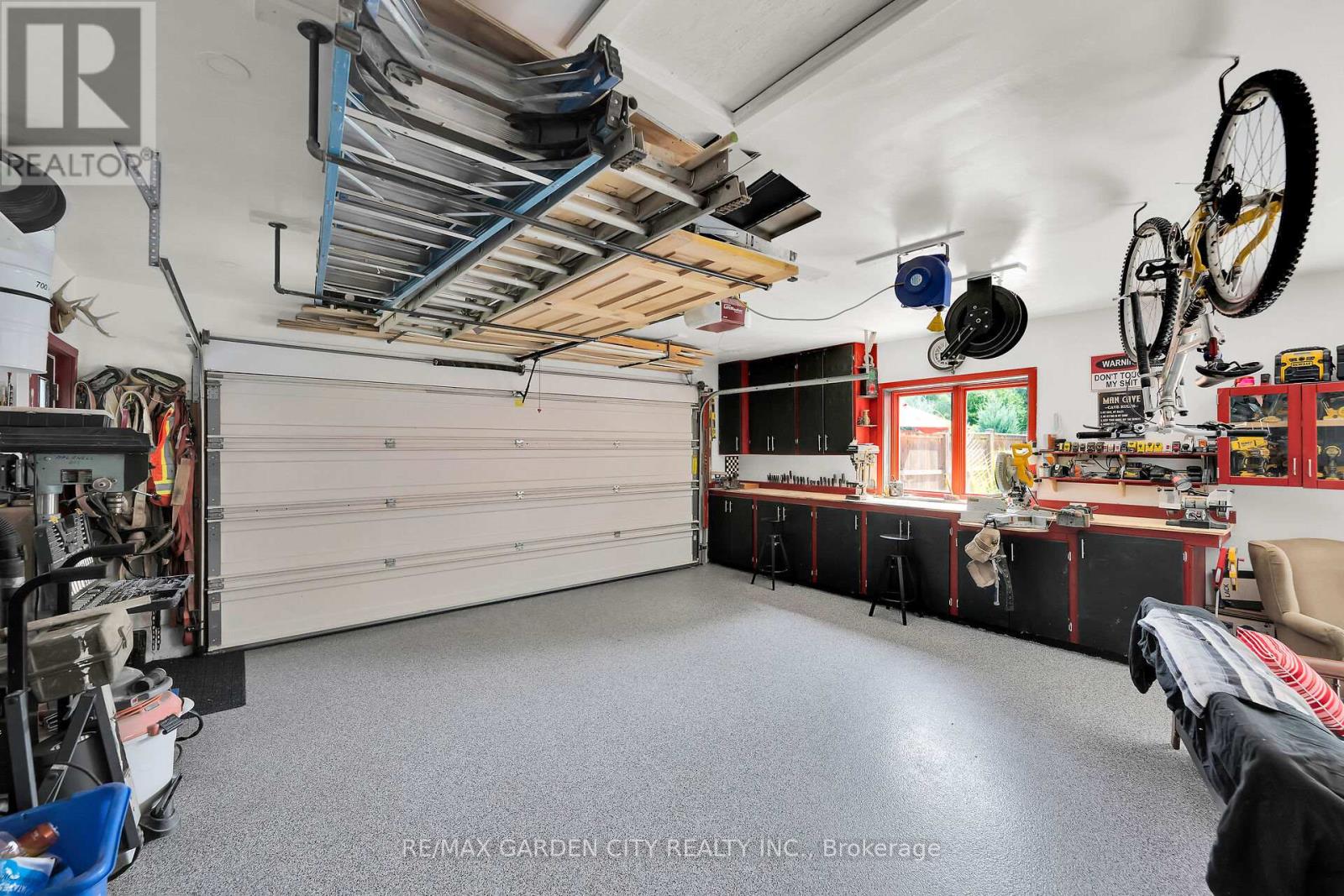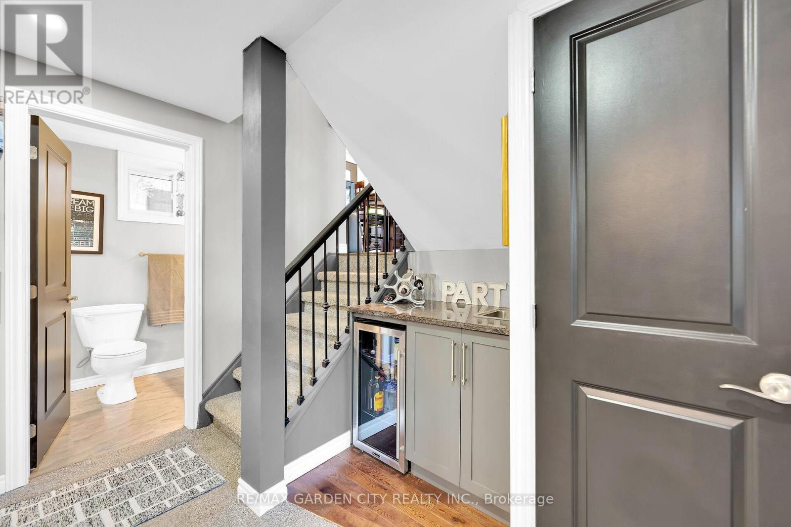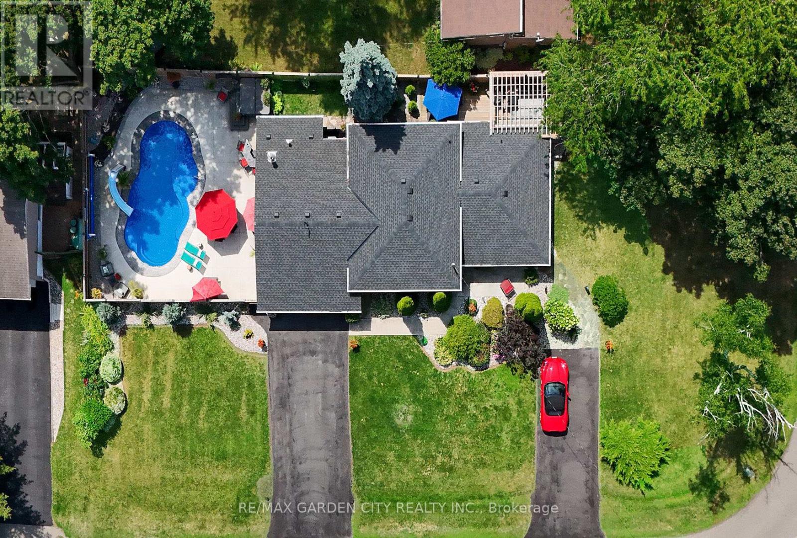 LAKESIDE LIVING! Just around the corner from the waterfront park. Beautifully updated throughout with open concept design. Set on large property with manicured grounds. Two large, paved driveways (2022), inground saltwater heated pool (new 2022), hot tub with resort style backyard Oasis! Chef's kitchen (new 2021) with island & appliances. Main floor family room open to kitchen with large bay window & glass doors leading to very private outdoor dining area. Primary bedroom with walk-in closet. 4PC ensuite bath (new 2020). Bright & spacious lower-level rec room with oversized windows, wet bar, additional bedroom & full bath, laundry room with washer/dryer (new 2020). Inside entry to fabulous 2.5 car garage/man cave with wood stove & epoxy floor. OTHER FEATURES INCLUDE: 200 amp service, new roof shingles (fall 2024), new windows 2021, BBQ hut with natural gas hookup. Hot water tank owned (new 2020), garage door opener, central air, central vac. This home is ideally suited for in-law accommodation. Short stroll to waterfront trails, schools & conveniences, 5 minutes from wineries & easy access to QEW. Nothing to do but move in & enjoy your very own resort lifestyle - at home! (id:64974)