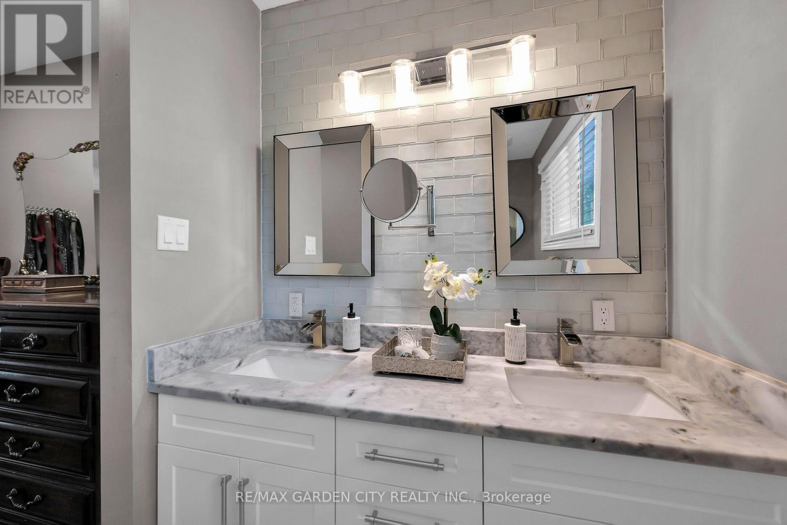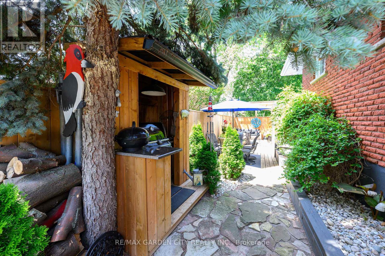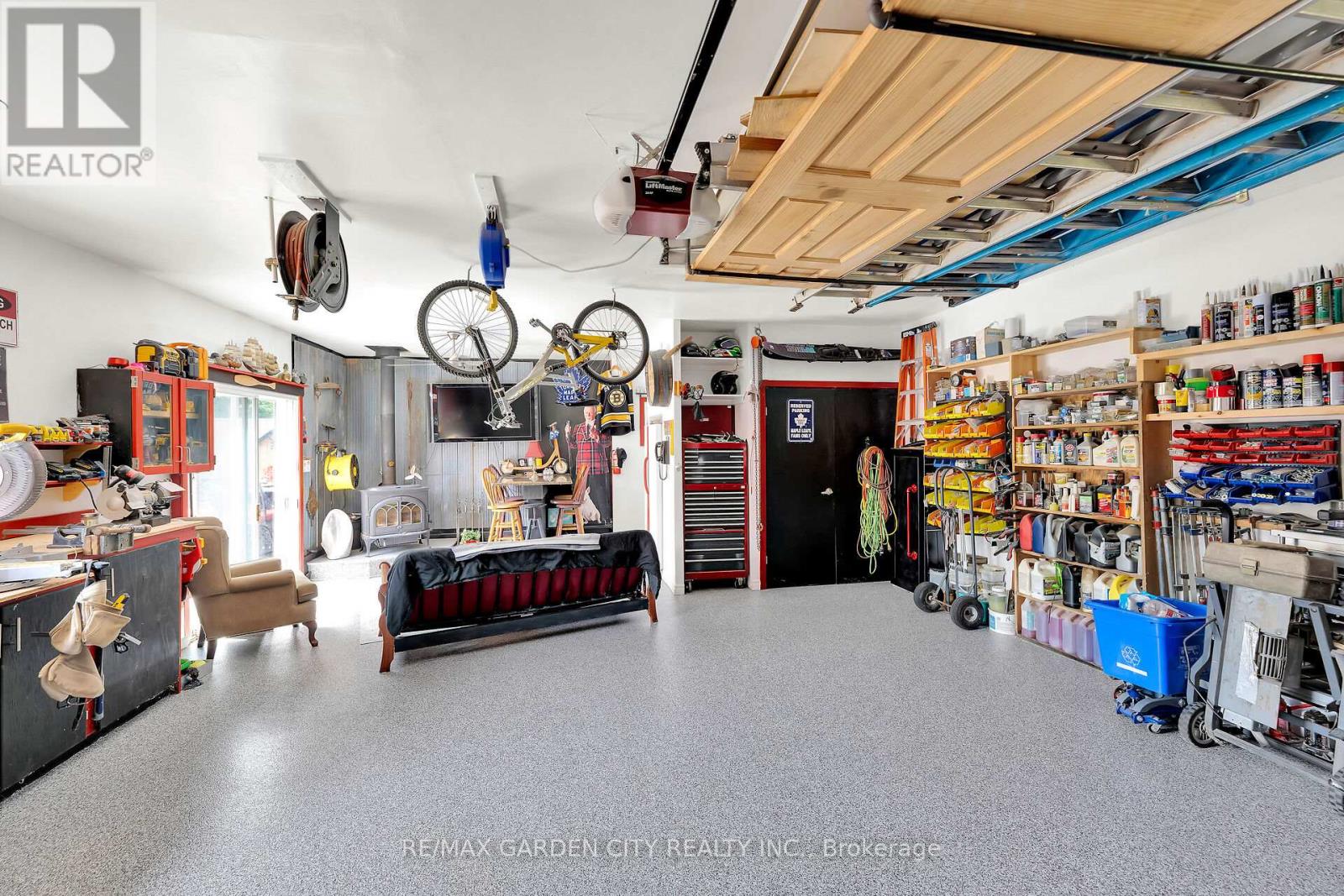 LAKESIDE LIVING! Just around the corner from the waterfront park. Beautifully updated throughout with open concept design. Set on large property with manicured grounds. Two large, paved driveways (2022), inground saltwater heated pool (new 2022), hot tub with resort style backyard Oasis! Chef's kitchen (new 2021) with island & appliances. Main floor family room open to kitchen with large bay window & glass doors leading to very private outdoor dining area. Primary bedroom with walk-in closet. 4PC ensuite bath (new 2020). Bright & spacious lower-level rec room with oversized windows, wet bar, additional bedroom & full bath, laundry room with washer/dryer (new 2020). Inside entry to fabulous 2.5 car garage/man cave with wood stove & epoxy floor. OTHER FEATURES INCLUDE: 200 amp service, new roof shingles (fall 2024), new windows 2021, BBQ hut with natural gas hookup. Hot water tank owned (new 2020), garage door opener, central air, central vac. This home is ideally suited for in-law accommodation. Short stroll to waterfront trails, schools & conveniences, 5 minutes from wineries & easy access to QEW. Nothing to do but move in & enjoy your very own resort lifestyle - at home! (id:64974)
