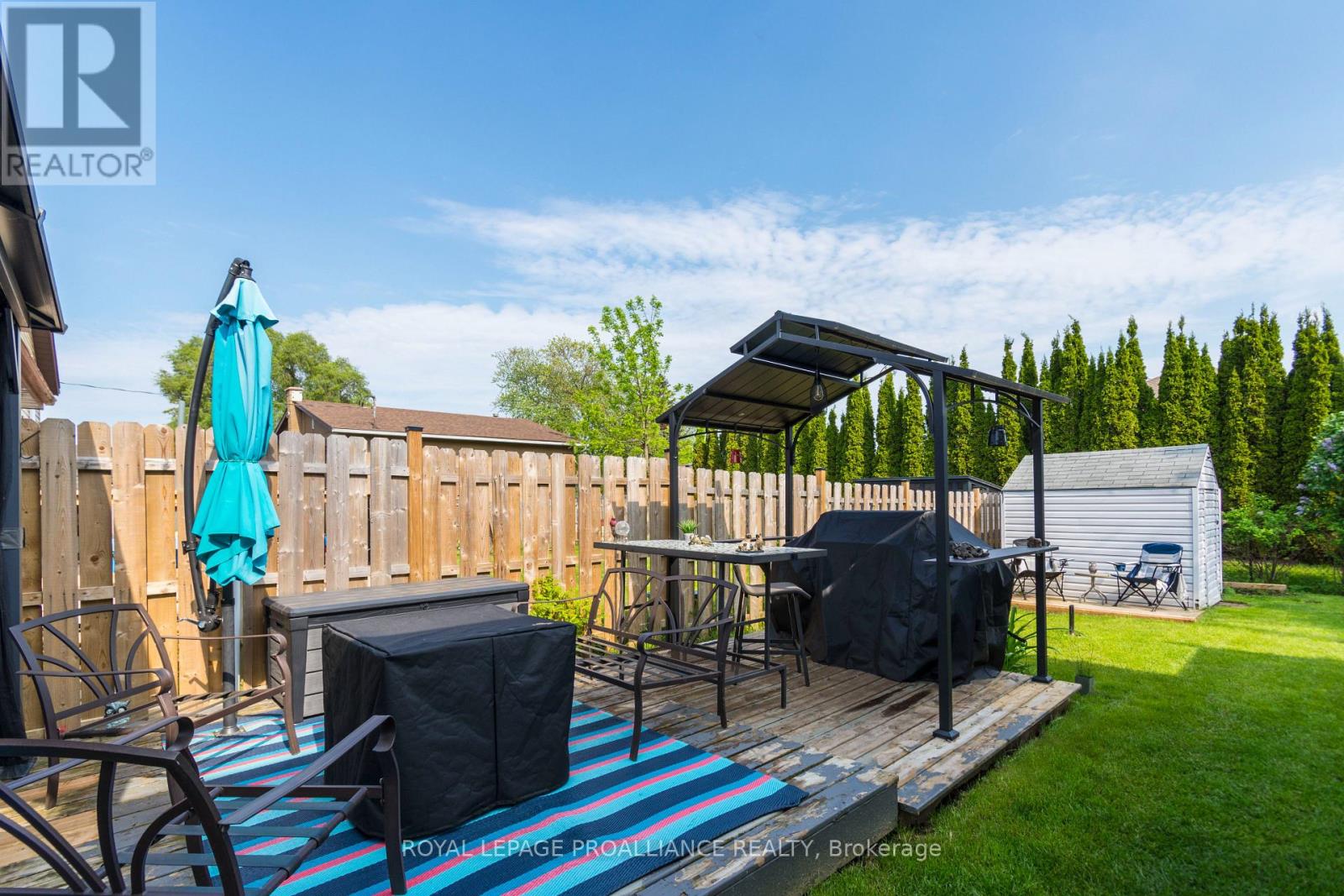 This well-maintained 3 bedroom, 2 bath backsplit offers the perfect blend of comfort and functionality in a fantastic location. The spacious eat-in kitchen features beautiful quartz countertops, providing both style and durability, along with plenty of room for cooking and casual dining. Large windows fill the space with natural light, creating a bright and welcoming atmosphere. The inviting living room boasts a cozy gas fireplace, perfect for relaxing evenings at home. Upstairs, you'll find a primary bedroom complete with a 3-piece ensuite and balcony to the backyard, along with two additional bedrooms and a 4-piece main bathroom, ideal for families or guests. The lower level offers even more living space, including a large finished rec room that can easily serve as an entertainment area, home office, or kids' playroom. You'll also find a convenient laundry room and utility room on this level. Situated on a mature lot, the fully fenced backyard is ready for summer enjoyment with an above-ground pool and a large storage shed. A new heat pump (2024) adds modern efficiency and comfort. Ideally located just minutes to CFB Trenton, downtown Trenton, and Highway 401, this home offers both convenience and lifestyle. A wonderful opportunity in a sought-after area! (id:64974)