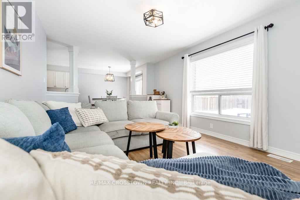 This well-appointed two-storey Devon leigh home is move-in ready and located in the desirable community of Angus, just minutes from Base Borden and close to all everyday amenities. With schools, parks, and shopping nearby, it offers the perfect blend of comfort and convenience for families. The home features three spacious bedrooms, providing comfortable living for families of all sizes. A bright second-floor loft filled with natural light creates the ideal space for a home office or reading nook. The updated kitchen showcases stylish cabinetry, a crisp white backsplash, newer countertops, and stainless steel appliances.Overlooking the dining room and large great room, the layout creates a bright open-concept space that isperfect for both everyday living and entertaining. Step outside to enjoy summer evenings on the patio or deck in the fully fenced backyard, complete with a resin garden shed, ideal for relaxing or hosting family and friends. The partially finished basement is already framed and includes a rough-in for an additional full bathroom, offering excellent potential to expand your living space. (id:64974)