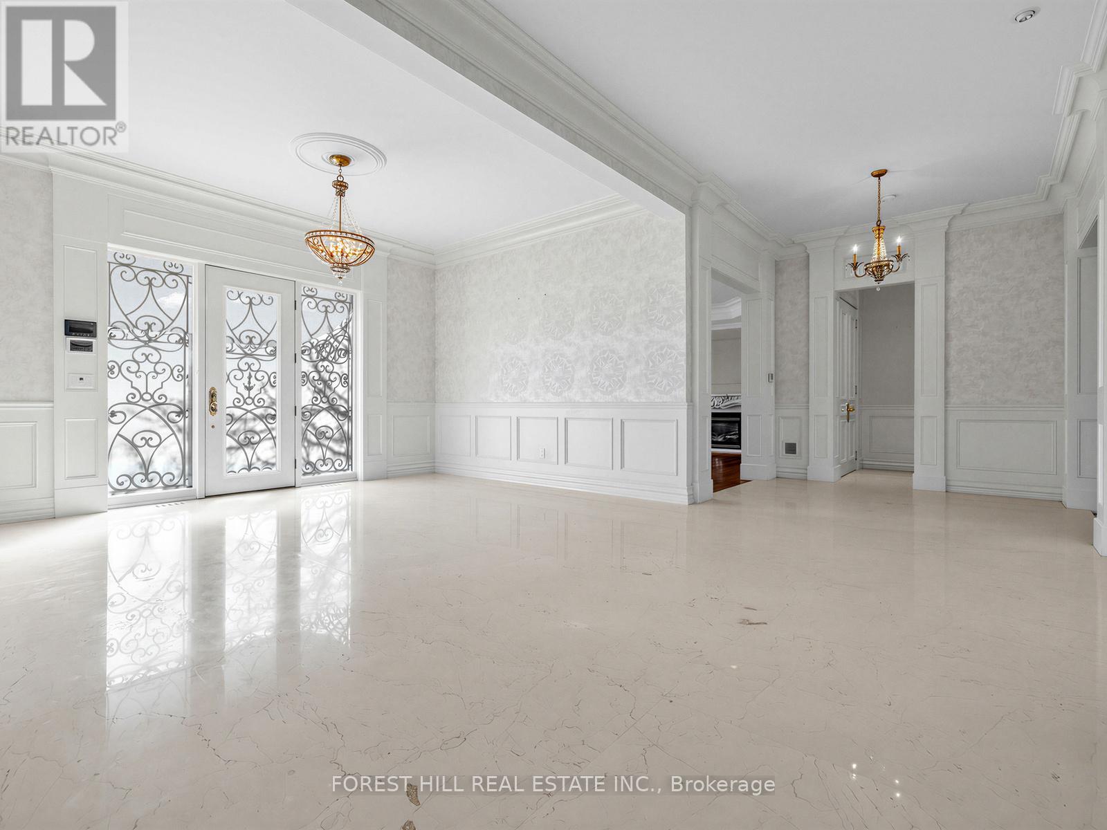 This is Truly A MASTERPIECE! Spectacular & Unique Automatic Gated Custom Luxurious Residence W/Magnificent Architect & Interior Design Nestled on Most Prestigious Finest Location in Toronto.Welcome to the highly sought-after St. Andrew-Windfields community, where this exceptional custom-built residence showcases timeless elegance and thoughtful design by renowned architect Glen Rubinoff. Tucked away on a quiet cul-de-sac, the home offers an impressive blend of luxury and comfort, featuring over 6,000 sq ft of above-grade living space plus a fully finished lower level of nearly 3,000 sq ft.Set on a premium lot with an expansive 112-foot frontage, this property provides a spacious and functional layout perfect for growing or multi-generational families. The interior is highlighted by a grand foyer, soaring ceilings, marble finishes, and beautifully proportioned principal rooms. A slate roof adds both durability and classic charm, while multiple fireplaces create a warm, inviting atmosphere throughout.The chef-inspired kitchen is outfitted with high-end appliances, custom cabinetry, a large center island, and a convenient butler's pantry. The family room impresses with its cathedral ceiling, oversized windows, and French doors that open to a private, landscaped backyard.Upstairs, the luxurious primary suite serves as a serene retreat with spa-like features, while four additional well-appointed bedrooms offer comfort and privacy for family and guests. A tandem 4-car garage provides ample parking and storage.The home's curb appeal is enhanced by a striking entrance framed by mature Japanese maple trees, while the backyard offers beautifully landscaped grounds ideal for entertaining or relaxing. Located close to top-tier amenities including the Granite Club, Rosedale Golf Club, excellent schools, and fine dining, this home delivers an exceptional lifestyle in one of Toronto's most prestigious neighborhoods. (id:64974)