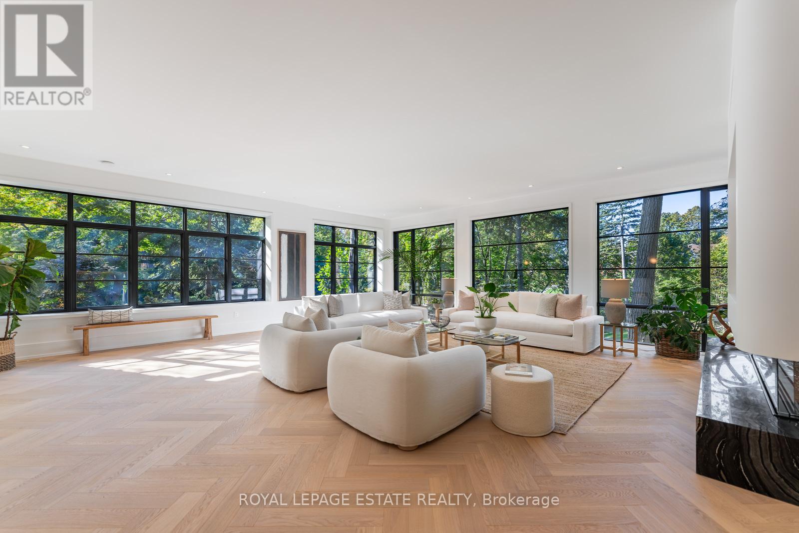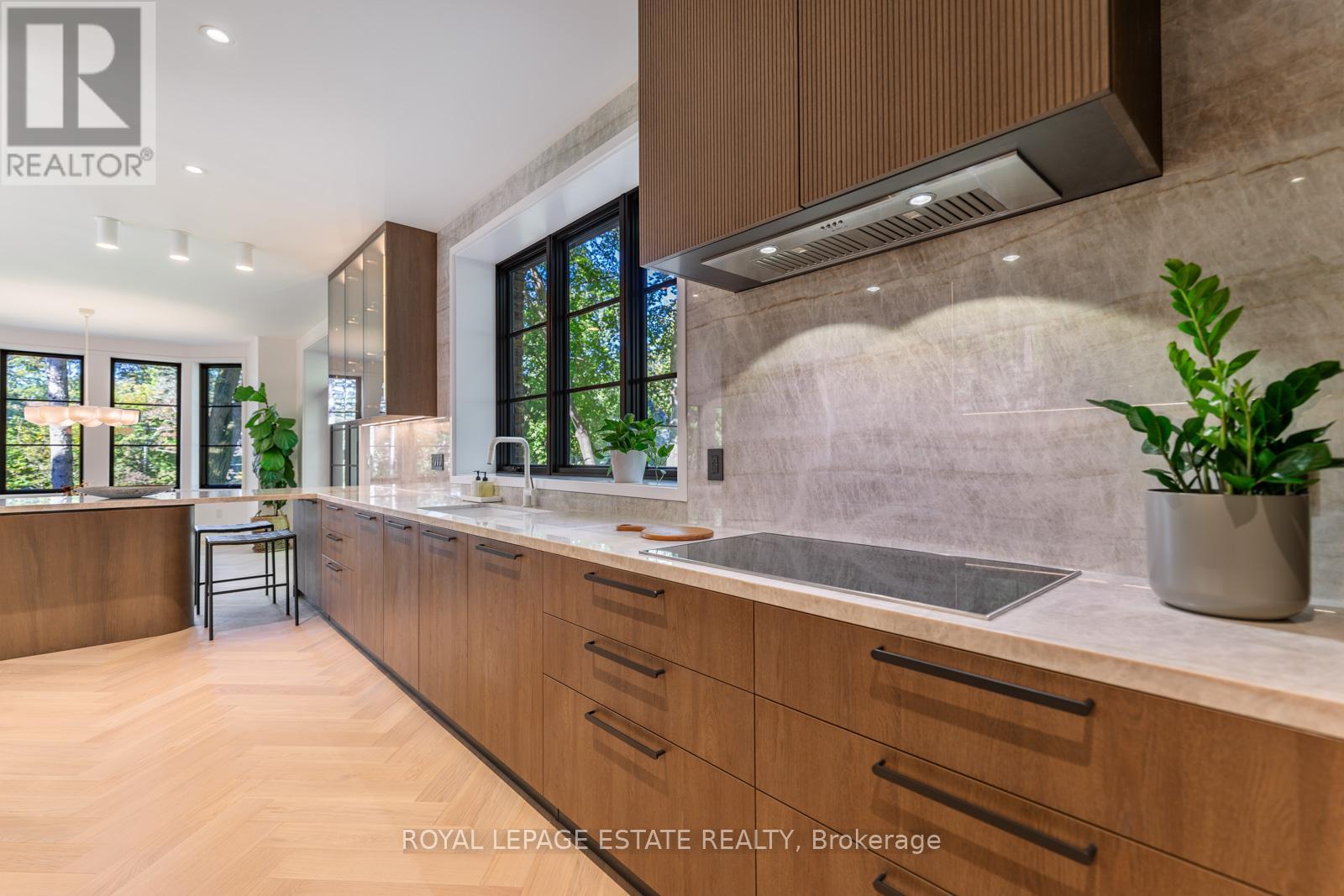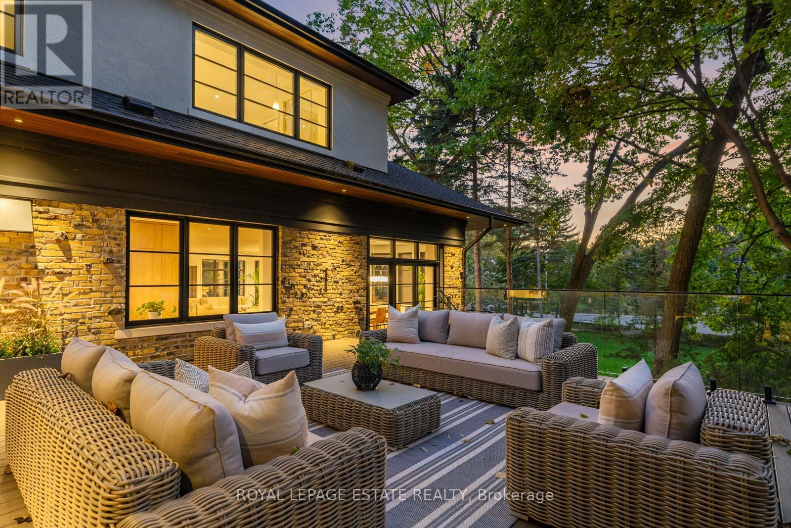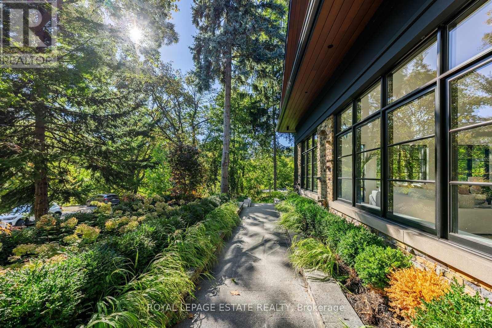 Completely restored and reimagined, Longwood House is a landmark estate in a coveted, private pocket of The Beach. Once the summer retreat of a 19th-century lumber baron, this iconic residence now stands as a masterful blend of historic grandeur and art-deco sophistication. Commanding nearly half an acre across two lots, 8 Crown Park Road sits privately perched at the end of a quiet cul-de-sac, surrounded by the lush beauty of Ivan Forrest Gardens and overlooking Glen Manor Drive and the Glen Stewart Ravine. Inside, the scale is breathtaking with three full levels, seven walkouts, and over 8,000 sq. ft. of living space (Main: 2,871 sq. ft. | 2nd: 2,425 sq. ft. | Lower: 3,074 sq. ft.). Every inch has been meticulously rebuilt with timeless craftsmanship and curated materials sourced from around the world: imported tile from Spain and South America, alabaster lighting in the living room, pantry, and bar, and three custom gas fireplaces wrapped in bespoke marble. The grounds are a private oasis. Over $1M in landscaping includes restored original brick (including rare clinker brick), solid wood soffits, a hydronic heated driveway, walkway, entry, and garage floor, a full-property irrigation system, Ebel stone retaining walls with granite caps, and an expansive rear terrace finished in black granite. Elegant, versatile spaces throughout offer both light and warmth from the stately foyer, sunlit dining room, and Scavolini millwork home office, to the gym, games' room, two wet bars, wine cellar, and in-law suite potential. With wall-to-wall windows framing lush ravine and garden views from every angle, Longwood House truly is The Crown of the Beach, your own private park in the heart of the city. (id:64974)