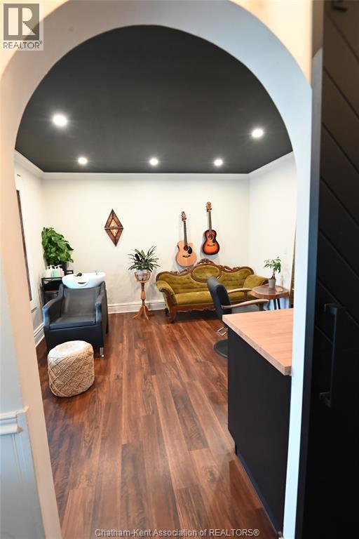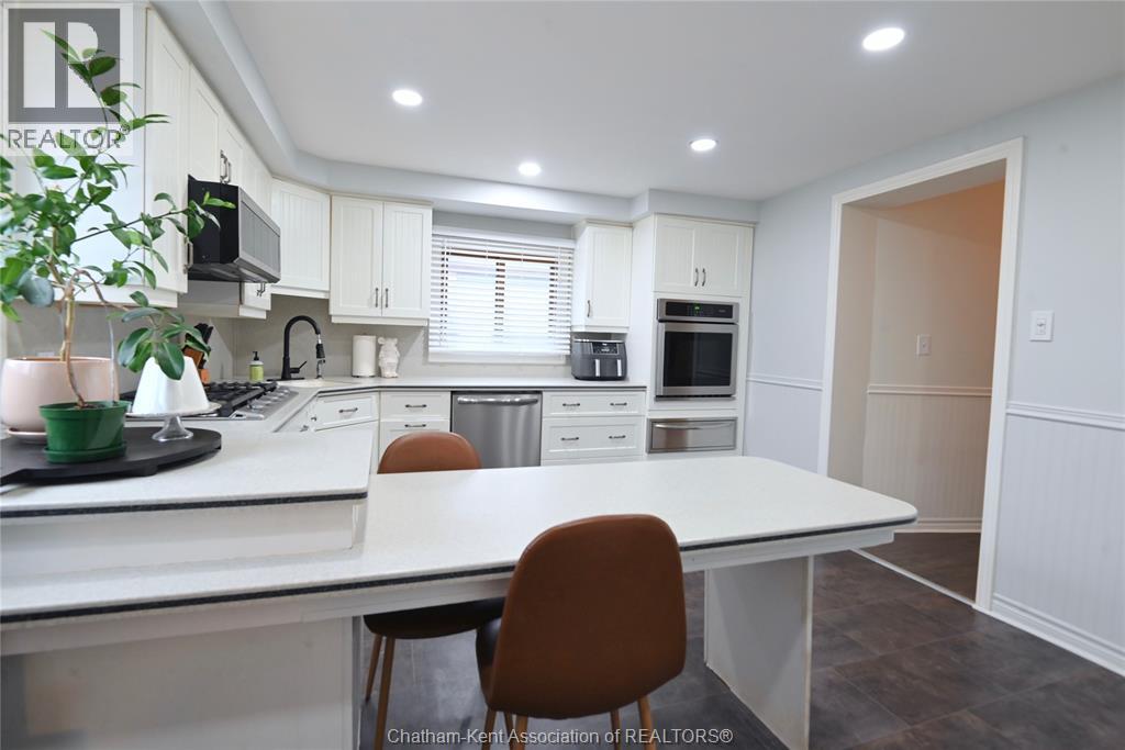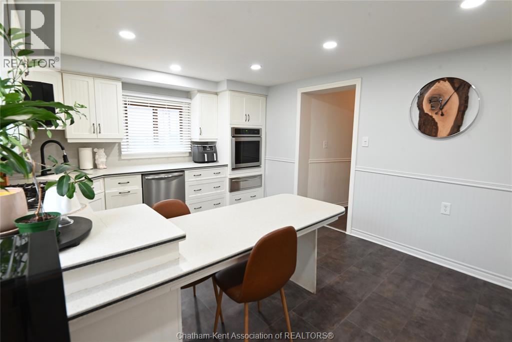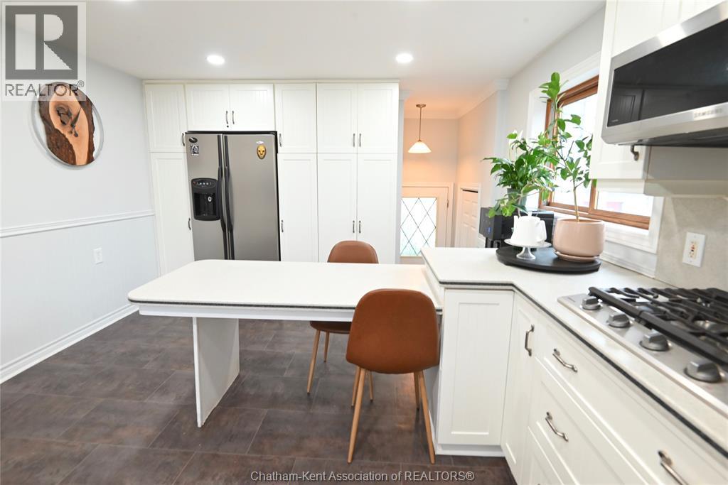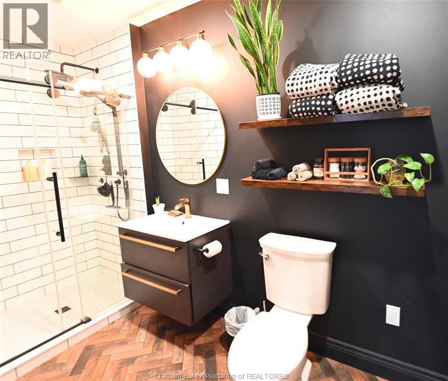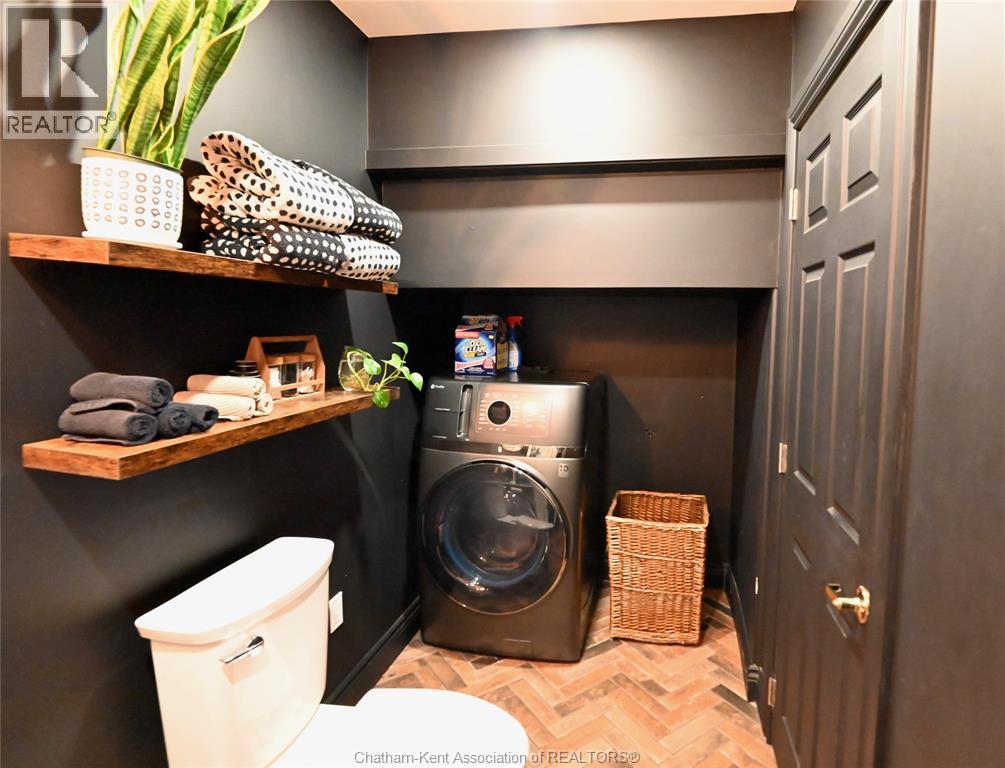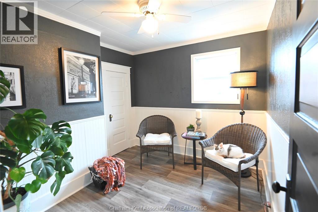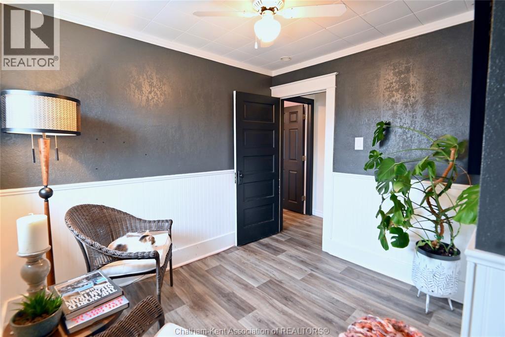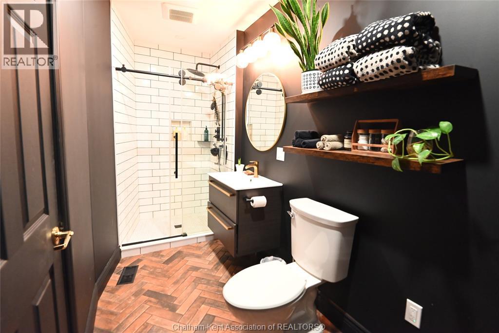 This 3 bedroom, 2 bathroom beauty in the heart of beautiful Ridgetown is an absolute classic with the gambrel roof and perfect front sitting porch, and still contemporary with stylish renovations that give it some edge. Perfect setup for those who need a front office or accessible pop-in space to work from home, or open the living room back up for more space or formal dining. Gorgeous bright kitchen with tons of cabinet space including a whole pantry wall, and an ideal breakfast bar plus stainless steel built in appliances. Main floor laundry in the new main floor full bathroom with custom tile shower is amazing, and the finished basement is a great spot for a hideaway lounge. Upstairs are three bedrooms where the character continues and another full bathroom with huge jet tub too. The back patio and fully privacy fenced yard make a great summer spot and the shed/garage offers storage or shop space all year round. The central side street location offers convenient walkability without being too busy, and all the updates allow you to move right in! (id:64974)