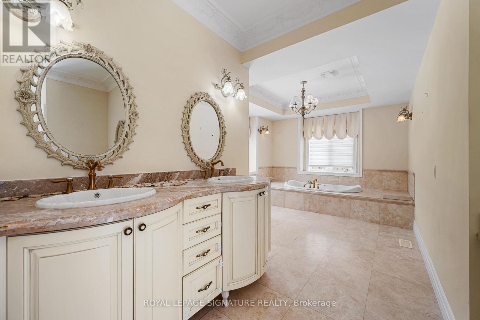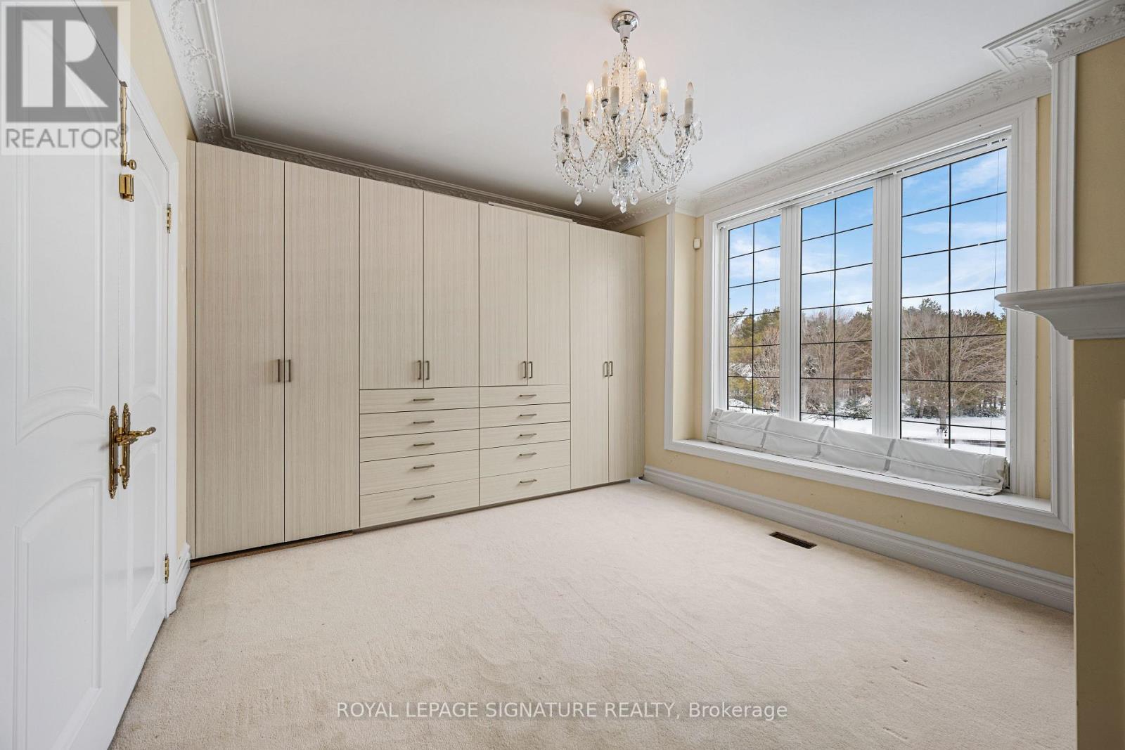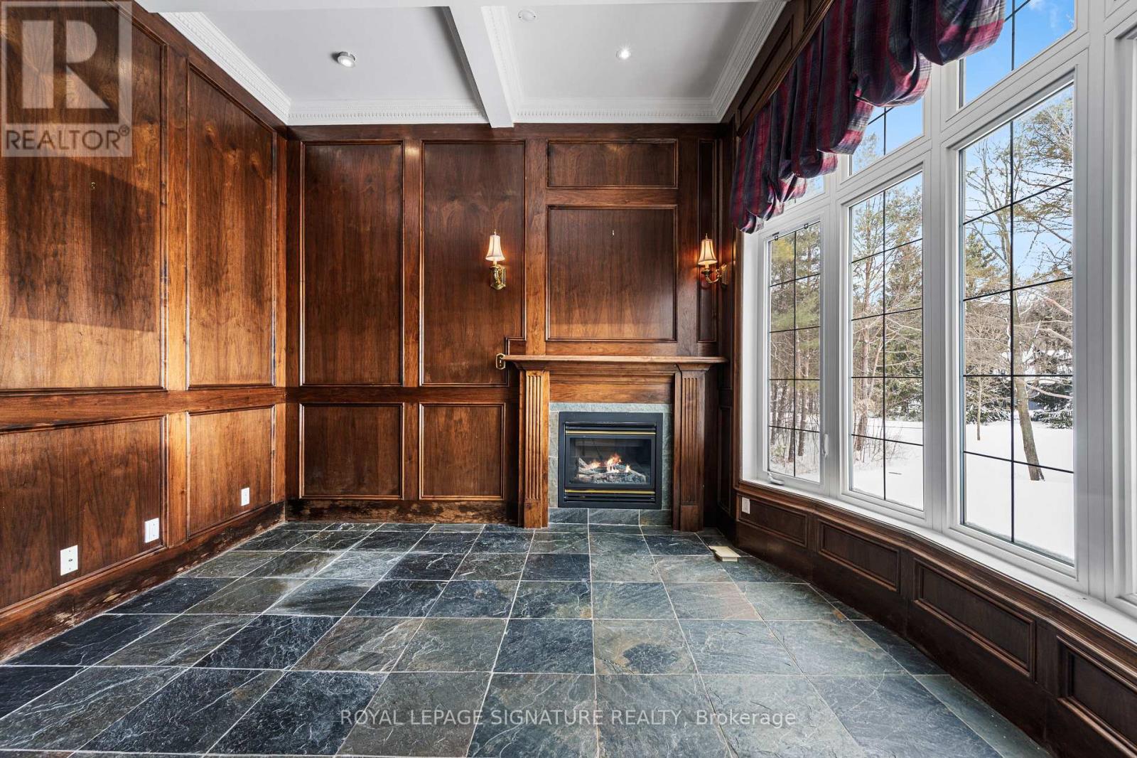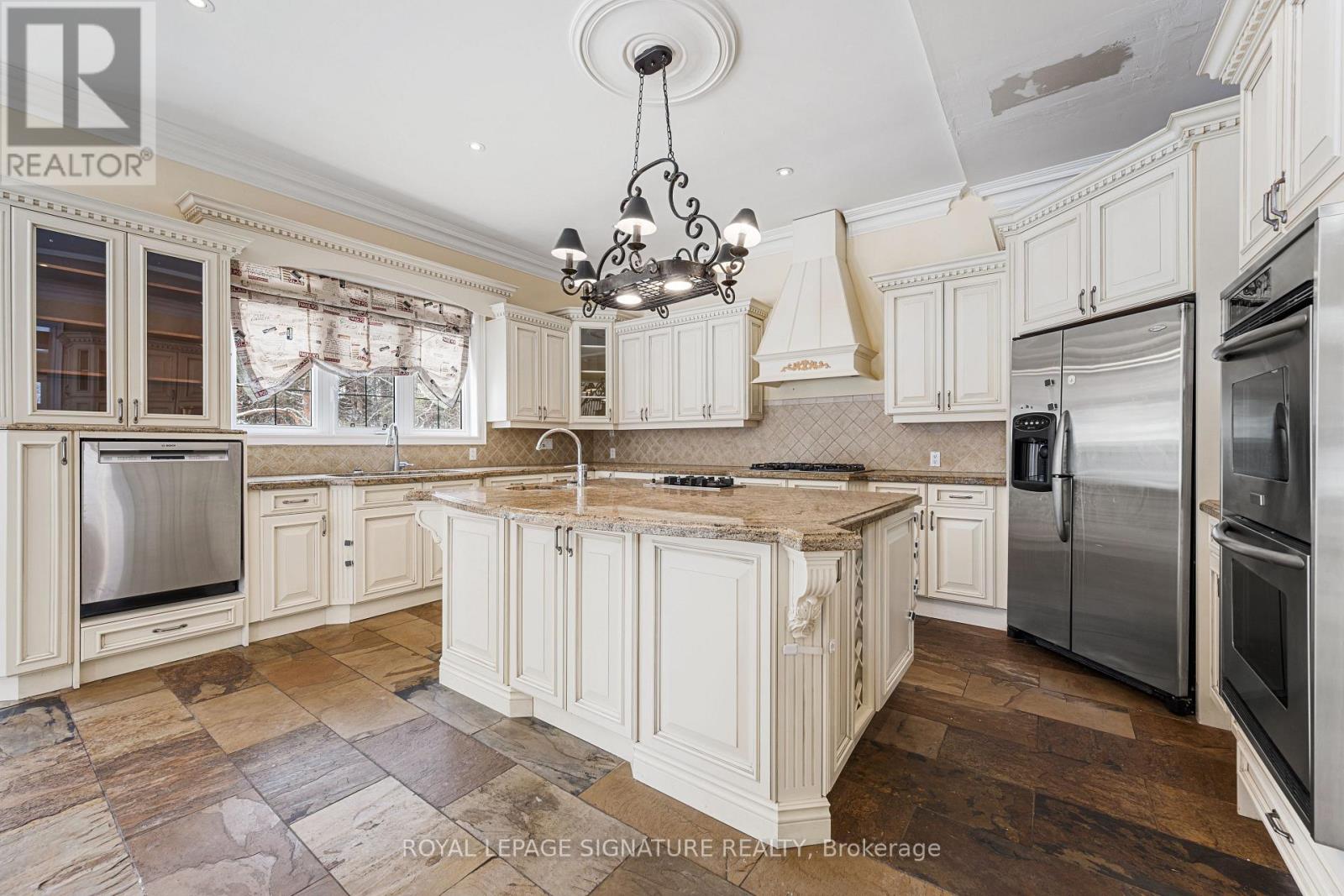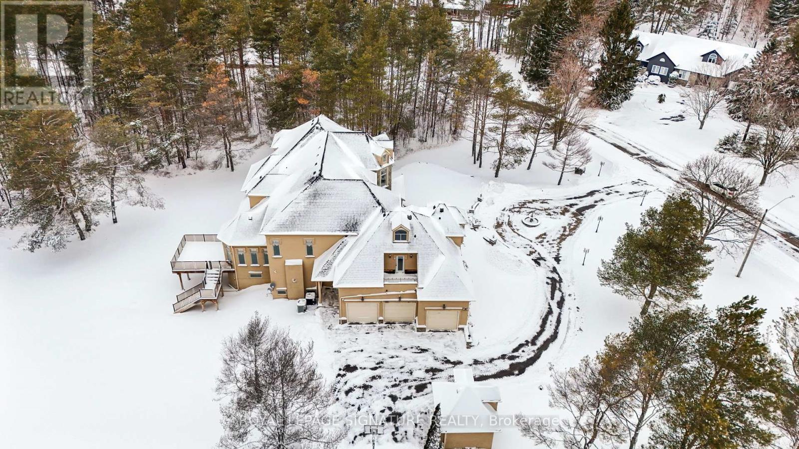 Welcome to this rare offering combining over 8500 sq ft of total living space, thoughtful design, and a prestigious setting in an exclusive enclave. Nestled on a quiet private cul-de-sac and surrounded by prestigious multi-million-dollar estates, this exceptional residence sits on a sprawling two-acre lot offering privacy, space, and refined living. A grand main floor welcomes you with soaring ceilings and elegant tile flooring throughout, creating a bright and open atmosphere ideal for both everyday living and entertaining. A thoughtfully tucked-away office with warm natural wood accents provides ample work-from-home space, while the bright formal dining room showcases crown moulding and timeless charm. Chef's kitchen featuring stone countertops, a stone centre island, and a breakfast area with walkout to the deck-perfect for seamless indoor-outdoor living. Multiple gas fireplaces add warmth and character throughout the home. The upper level features four spacious bedrooms, each with its own private ensuite. The expansive primary retreat offers a luxurious five-piece spa-like ensuite and plenty of room to relax. The above-grade lower level provides exceptional versatility with two additional bedrooms, a kitchen, comfortable sitting area, and flexible space ideal for a gym, recreation area, or playroom. Multiple walkouts lead directly to the expansive backyard, creating endless opportunities for outdoor enjoyment. Walk to Hanson's Chinese + Pizza, Whitchurch Conservation Area, and a quick drive to Highway 404, golf courses, Longo's, Farm Boy, Walmart, Pharmacies and more. (id:64974)