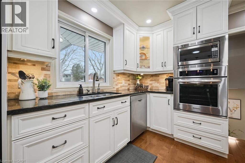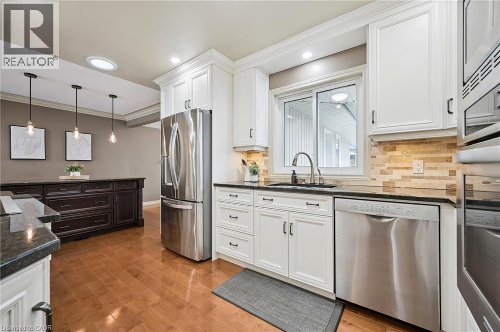 Welcome to this wonderful family home located in Elmira’s highly desirable Birdland neighbourhood, just minutes from Waterloo. Set on a generous 80 x 145 ft lot (approximately a quarter acre), this property offers space, privacy, and a fantastic location close to parks, schools, and everyday amenities. This well-maintained side-split home features 5 beds and 2 bath, providing plenty of room for growing families, guests, or a home office setup. A thoughtfully designed addition creates a bright and inviting family room, perfect for relaxing or gathering with loved ones. The kitchen was beautifully updated in 2010, offering both style and function, and the home includes custom built-ins that add character and practical storage throughout. Cozy evenings are easy to enjoy with two gas fireplaces adding warmth and charm. The lower level offers a separate entrance, creating excellent potential for an in-law setup, multigenerational living, or future income possibilities. Comfort and efficiency are enhanced with a modern heat pump system, providing both heating and air conditioning while offering an energy-conscious alternative. With its large mature lot, great layout, and sought-after neighbourhood, this Birdland property is a rare opportunity to enjoy space, comfort, and convenience in one of Elmira’s most loved communities. Upgrades include Heat pump (12) Gas fireplace (17) water heater and softener (20) Kitchen (2010) (id:64974)