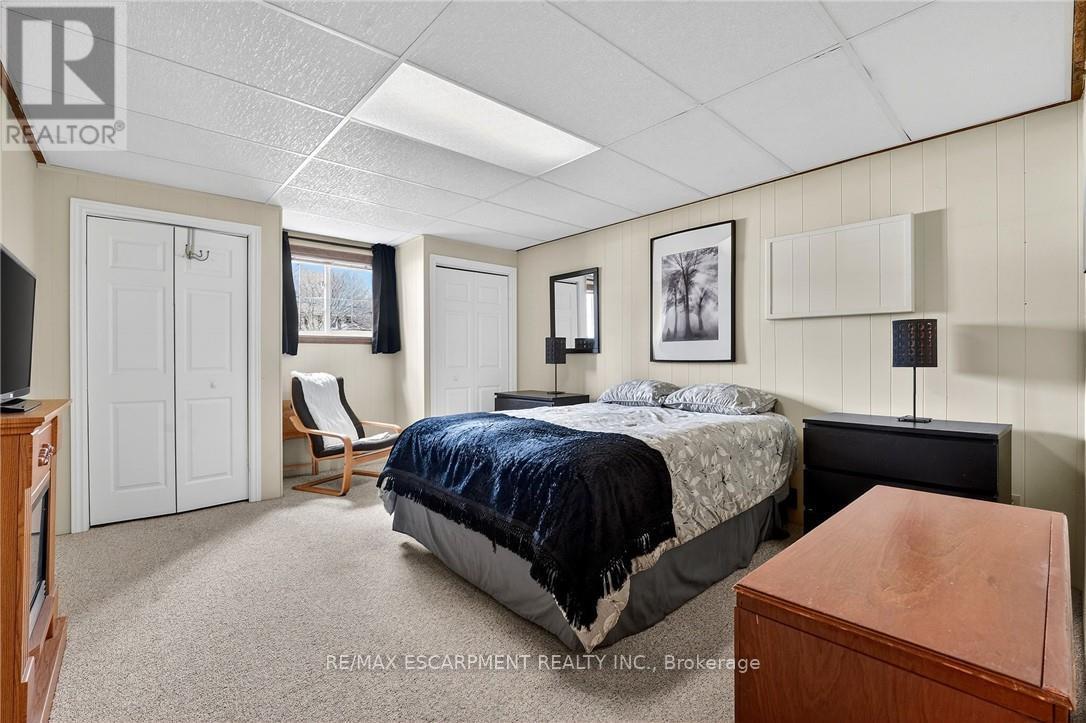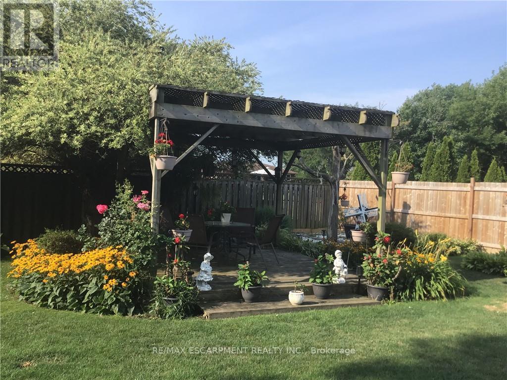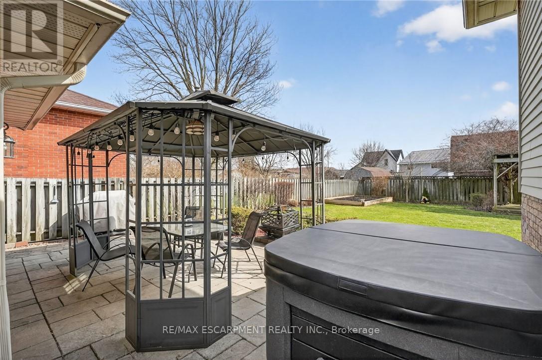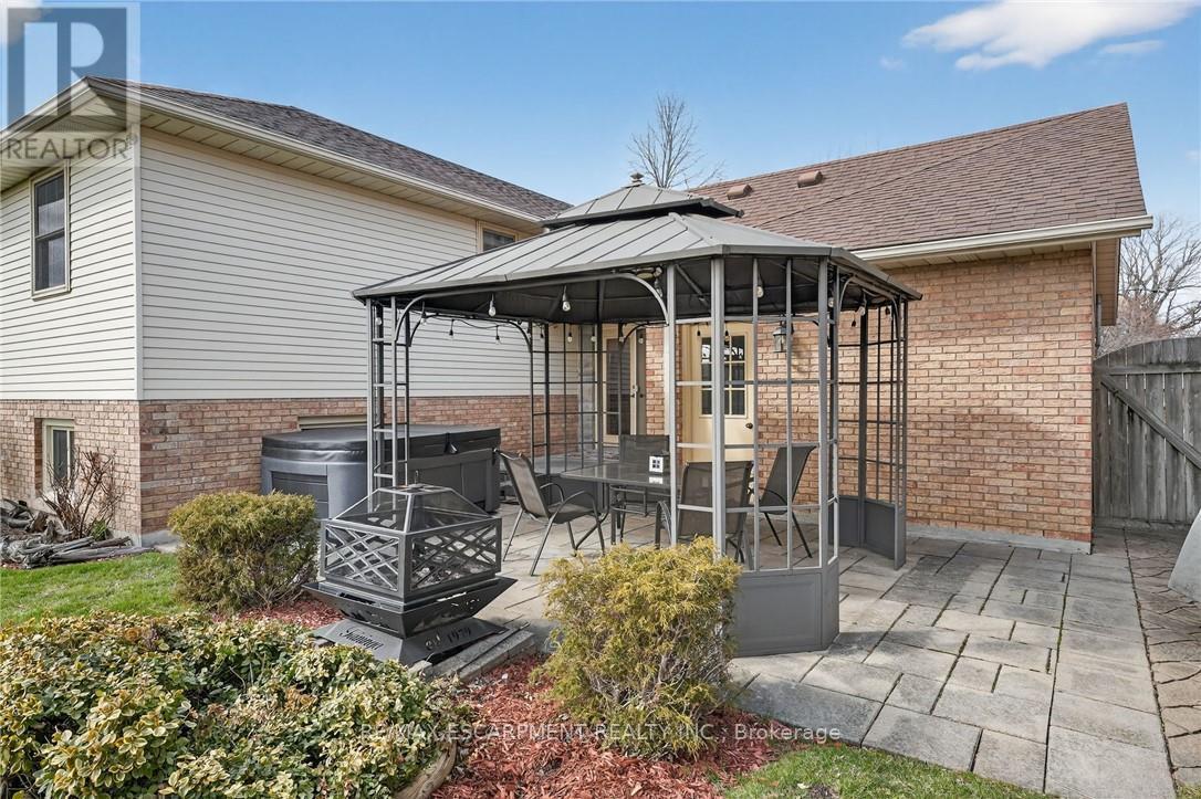 Welcome to this meticulously maintained 3+1 bedroom, 2 full bathroom raised bungalow on a quiet, family-friendly street in Smithville. Arriving at the property, you'll notice the excellent curb appeal with well manicured gardens, an all-brick front, and driveway parking for four vehicles plus an additional parking spot in the attached garage. The fully fenced backyard with fantastic privacy is a great spot to host family and friends - featuring a professionally landscaped patio, two gazebo structures, a soothing water feature, a shed with hydro, and vibrant gardens. Inside, a bright and spacious foyer with a double closet and loads of natural light welcomes you. The main floor showcases hardwood flooring and a professionally renovated kitchen (2021) with granite countertops, stainless steel appliances, soft-close cabinetry, and under-cabinet lighting. Updated vinyl thermal windows throughout enhance comfort and efficiency. Down the hall you'll find three main floor bedrooms and a spacious 4-piece bathroom with a shower/tub combination. The fully finished basement features large above-grade windows for loads of natural light. The basement includes a spacious rec room with a natural gas fireplace, a fourth bedroom, an additional full bathroom, and a laundry area. This immaculate home is ideally located within walking distance to schools and parks, minutes to downtown Smithville, and a 10 minute commute to the QEW! (id:64974)