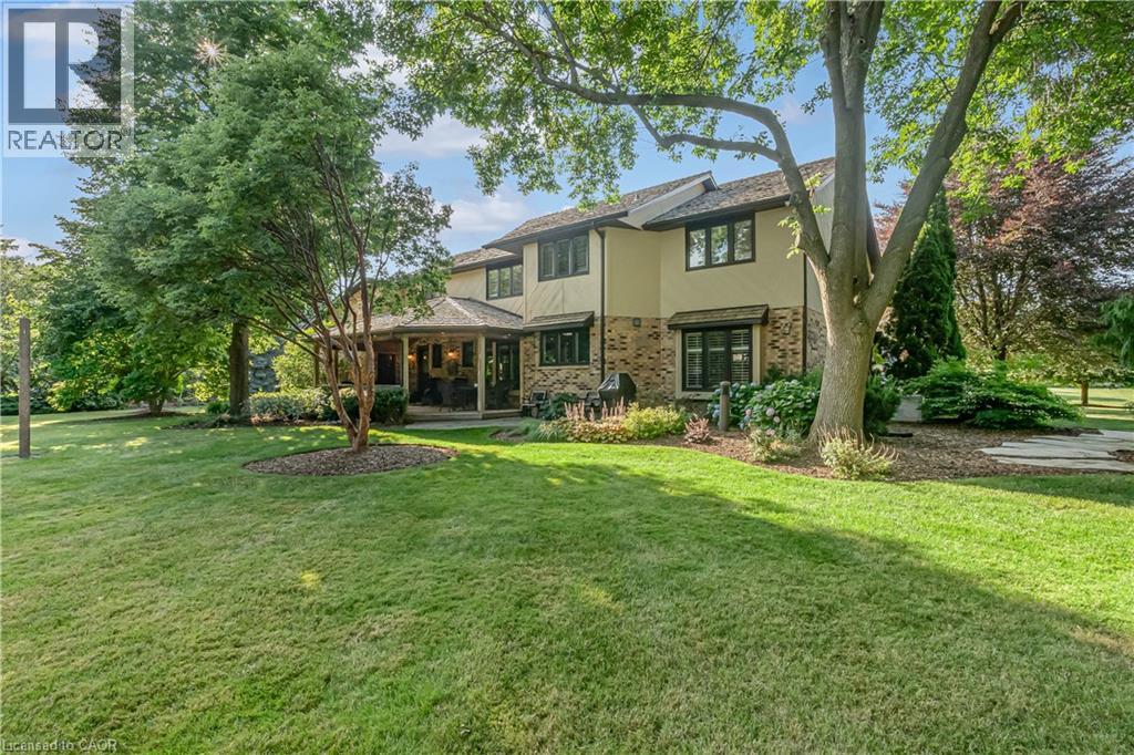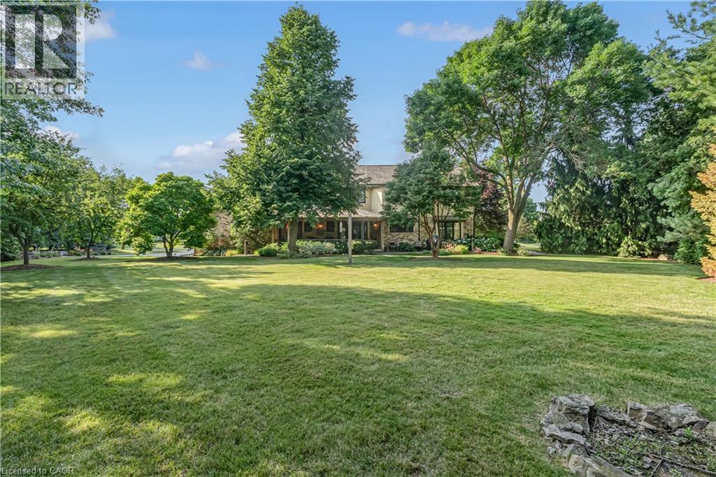 Rare One-Acre Lake Ontario Lifestyle Estate | Steps to Fifty Point Marina Discover a rare opportunity to own a 1-acre estate property across from Lake Ontario & steps to Fifty Point Marina in Stoney Creek’s sought-after Winona lakeside community. Offering over 5,400 sq ft of living space, this executive residence provides the privacy, scale, and waterfront lifestyle rarely available along the Hamilton–Niagara shoreline. Set on a beautifully landscaped 1-acre lot with municipal services, the property offers exceptional space and flexibility with room to add a pool, recreation area, or guest/tiny home. Inside, the home features four spacious bedrooms, vaulted ceilings, skylights, and expansive principal rooms filled with natural light. A brick wood-burning fireplace framed by built-in bookshelves creates a warm focal point for entertaining and family gatherings. The chef’s kitchen features granite countertops, generous storage, and an eat-in area opening to a covered outdoor portico, perfect for enjoying peaceful lake breezes and the beautifully landscaped grounds. Located steps from Fifty Point Marina and Conservation Area, the home offers easy access to boating, waterfront trails, conservation lands, and nearby Niagara wineries. Enjoy estate-scale living by Lake Ontario, ideally positioned between Hamilton and Niagara wine country. (id:64974)