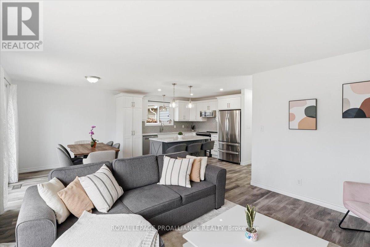 Welcome to 8 Loraine Ave in Quinte West, a spacious and well-maintained raised bungalow tucked away on a quiet, family-friendly street. This 4 bedroom, 2 bath home offers a functional layout with room for everyone. Step into the large, welcoming foyer with convenient access to the attached single car garage. The updated kitchen features an open-concept design, perfect for everyday living and entertaining. The dining room flows seamlessly onto a generous upper deck and steps down to a lower covered deck, offering additional outdoor living space rain or shine. The main level includes three comfortable bedrooms and a full 4-piece bathroom. Downstairs, the fully finished basement boasts a spacious rec room with a cozy gas fireplace, a fourth bedroom and a versatile den or home office. You'll also find a 3-piece bathroom, ideal for guests, teens, or working from home. A great opportunity to own a move-in ready home in a desirable location, close to amenities, schools and all that Quinte West has to offer. (id:64974)