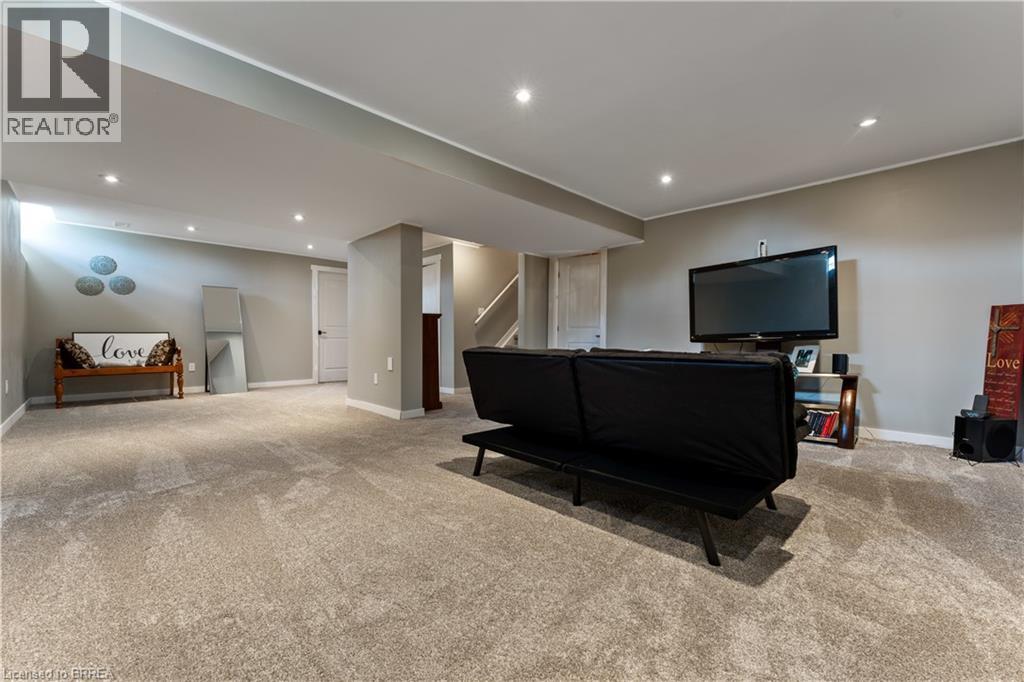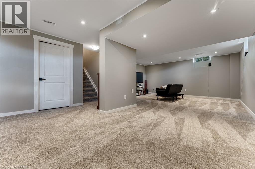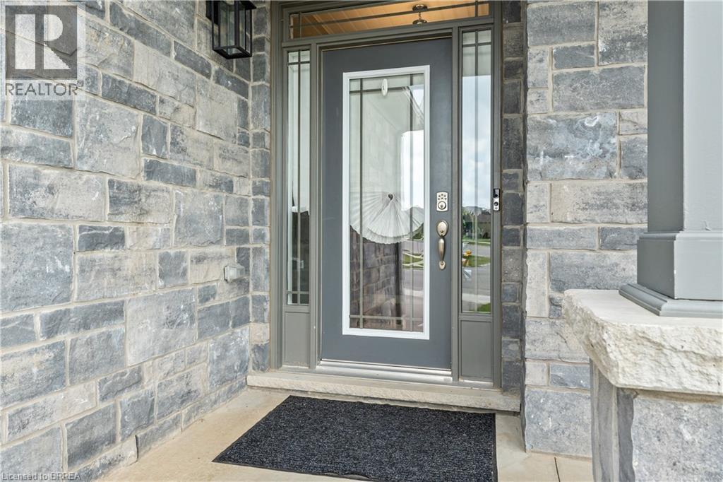 Desirable executive home on a private premium lot with no rear neighbours. This 4 bedroom 2 and a half bathroom Losani home features include carpet free main floor area, open concept main floor area, a large porch and a 4 car driveway to name a few of the highlights. Main level has a separate formal dining room at the front of the home, an office, a 2pc bath, kitchen with large island and walk in pantry and quartz counter top with backsplash, 9 ft ceilings a large great room with plenty of natural light and hardwood flooring throughout. Sliding patio doors lead you to your private rear yard over looking the treed forest behind you, a patio to sit and relax and a fully fenced yard with storage shed. The solid oak staircase leads you to the Second level which has 4 bedrooms with a spacious master having a walk in closet, 5 piece ensuite with glass door shower, soaker tub, double sink in the vanity, and a walk out to the balcony to enjoy your morning coffee. The Laundry room is also located on the second floor and 4 piece bathroom also. The lower level is partially finished with a large recreation room, a storage room, a utility room, a rough in for 3pc bathroom and also can finish another bedroom to bring the total to 5 bedrooms. Newly built park beside the home, mins from the 403 highway, downtown Paris and shopping and recreation center/skate rink within a minute walk. Must be seen to be appreciated! (id:64974)