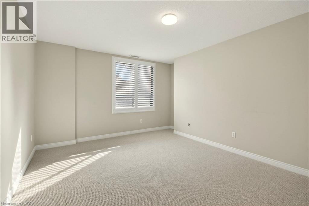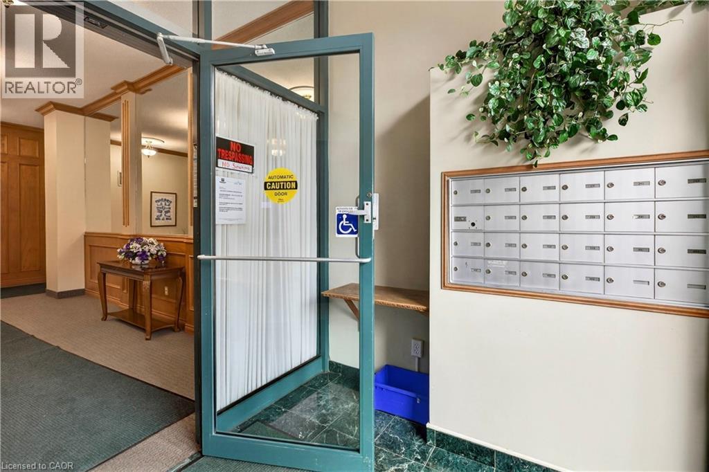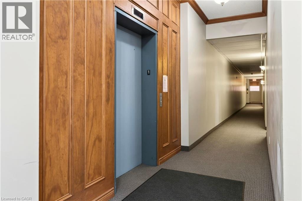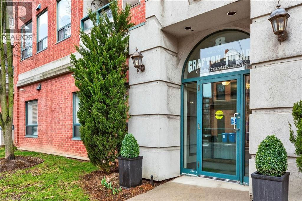 Welcome to Grafton Square in the heart of downtown Dundas. This main floor end unit provides accessible, walkable living just steps to shops, restaurants, parks, churches, the library, public transit and more. Bright and open, this condo is a blank canvas ready for your finishing touches. New carpet in both bedrooms(2026). The primary bedroom features his and hers closets and a 3 piece ensuite. Ensuite laundry. Enjoy your private balcony and the added light that comes with being an end unit. California shutters throughout. Includes one underground parking space and a large locker. Quiet well managed building with great amenities including a community room, exercise room, car wash, guest suite and plenty of visitor parking. (id:64974)