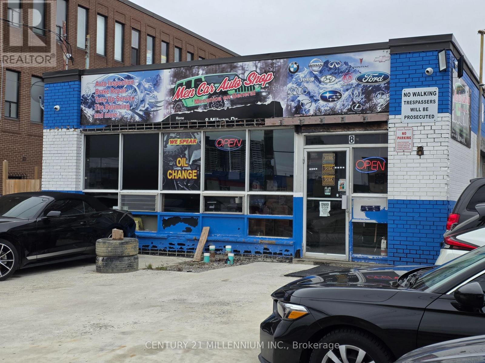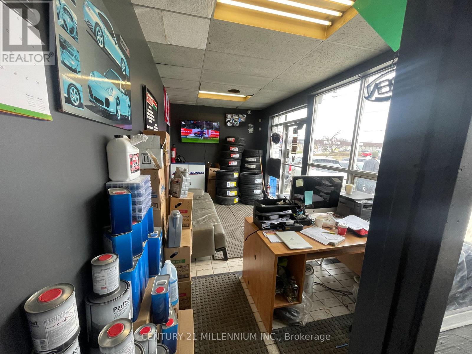 Repair and Sales! Owner Operator selling their running business with all equipment and tools. Great location with high amounts of drive by traffic. 4 Bays, 3 Drive in doors 2-8'x8', 1-8'x10', 3 hoists, (9,000lbs), tire machine, 60 Gallon compressor, 1 Shipping Container, 1 tire machine, 1 tire balancer. Parking or display for 15 cars ++. Fully operational with mechanic shop sold with mechanics tools, welding machines, torches/cart/tanks, press, engine hoists, racking, jacks, security cameras and alarm system, battery charger, office furniture. Running OMVIC Dealership, automotive repair. Business is operating, do not go direct, do not speak with employees or customers. RENT: $6850/M; INSURANCE: $500/M; HYDRO/GAS: $400/M; PHONE/INTERNET: $100/M; GARBAGE PICK UP: $60/M. Leased until Feb 2030 (id:64974)