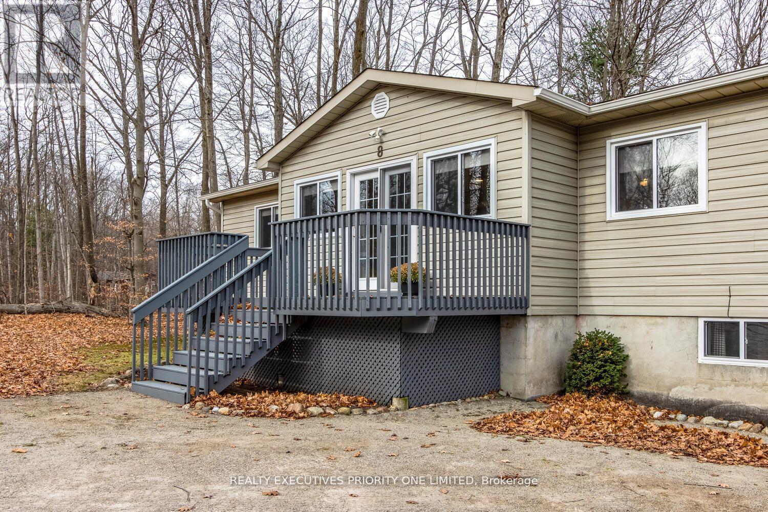 Welcome to 8 Musquake Court! This detached 3-bedroom bungalow is nestled in the heart of Tiny, just steps from beautiful Sawlog Bay and located on a quiet, family-friendly court. Move-in ready and well maintained, the home features a modern galley-style kitchen, a spacious open-concept living area, and laminate flooring throughout. Enjoy a walkout from the main level to a generous two-tiered deck, perfect for relaxing or entertaining. The fully finished basement provides excellent additional living space ideal for a recreation room, home office, or entertaining area. Situated on a large lot, there's plenty of outdoor space to enjoy. All light fixtures and window coverings are included, along with the fridge, stove, washer, and dryer for your convenience. Lease price is $2,550 per month plus utilities. Please allow 24 hours' notice for showings. (id:64974)